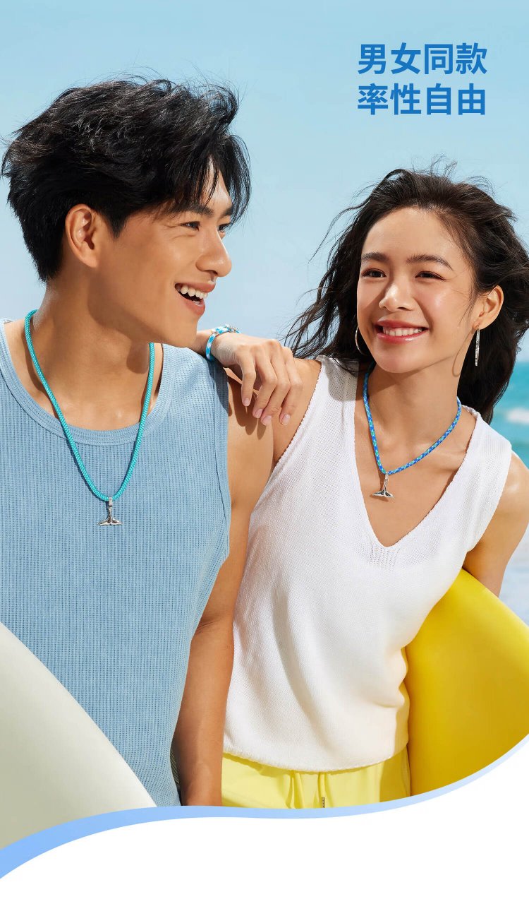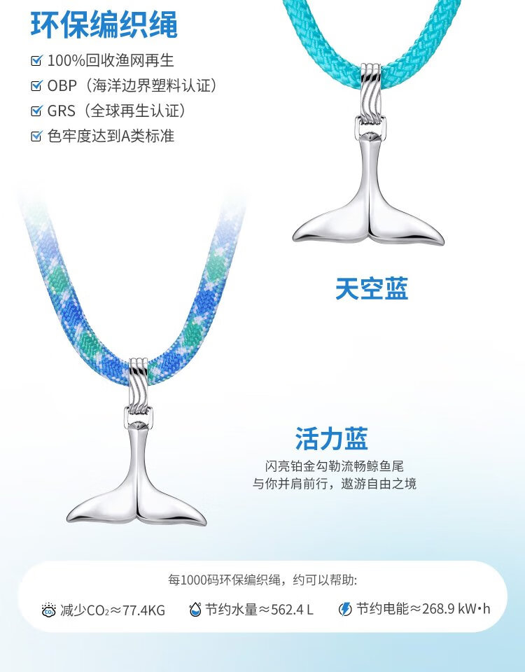 Lukfook Jewelry Platinum Pendant Ocean Whale Tail Platinum 950 Men's and Women's Color Rope Pendant Couple Gift Gold Weight Approximately 6.05 Grams
