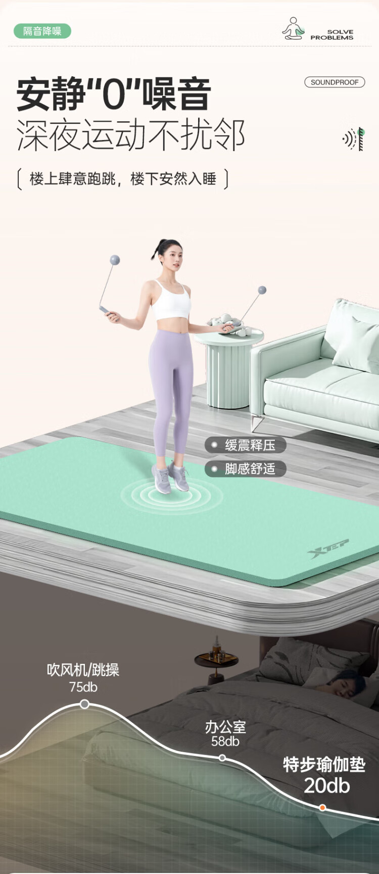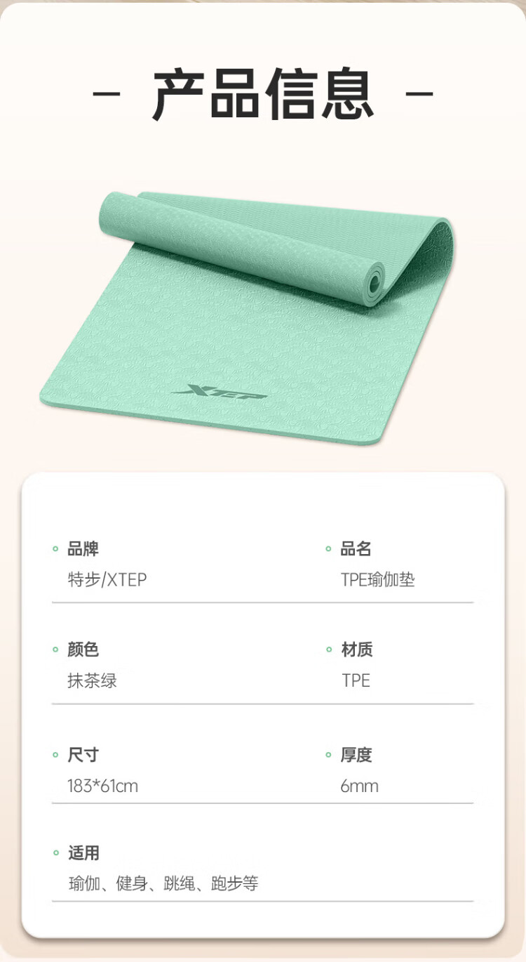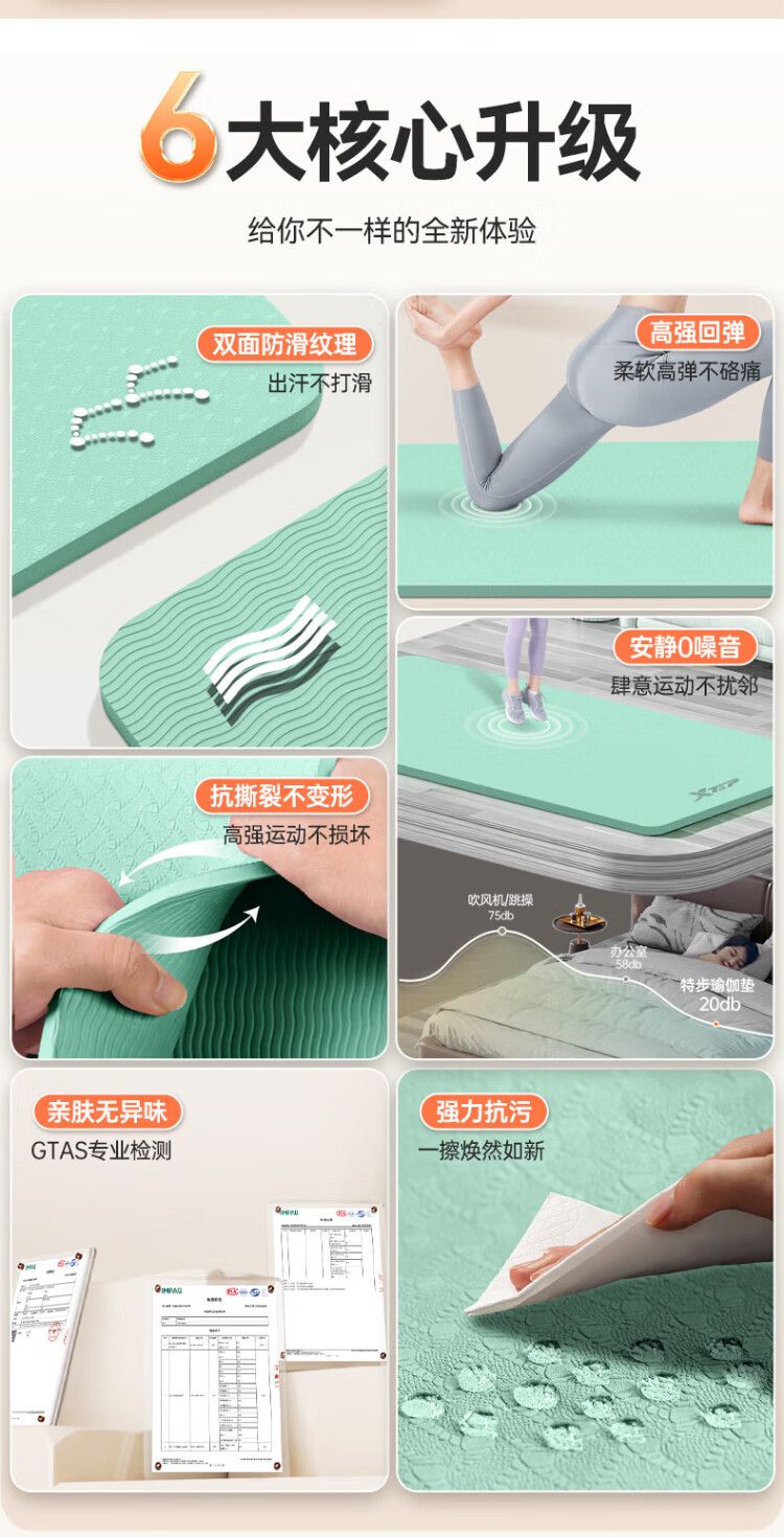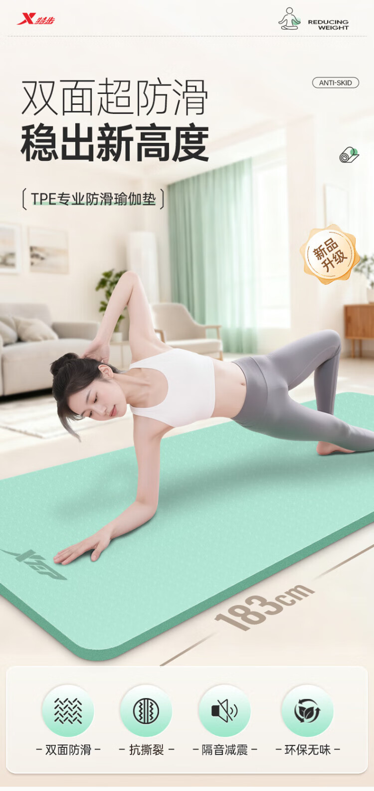 XTEP yoga mat TPE men's and women's fitness mat professional non-slip shock-absorbing aerobics soundproofing thickened general purpose sports mat