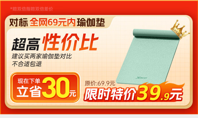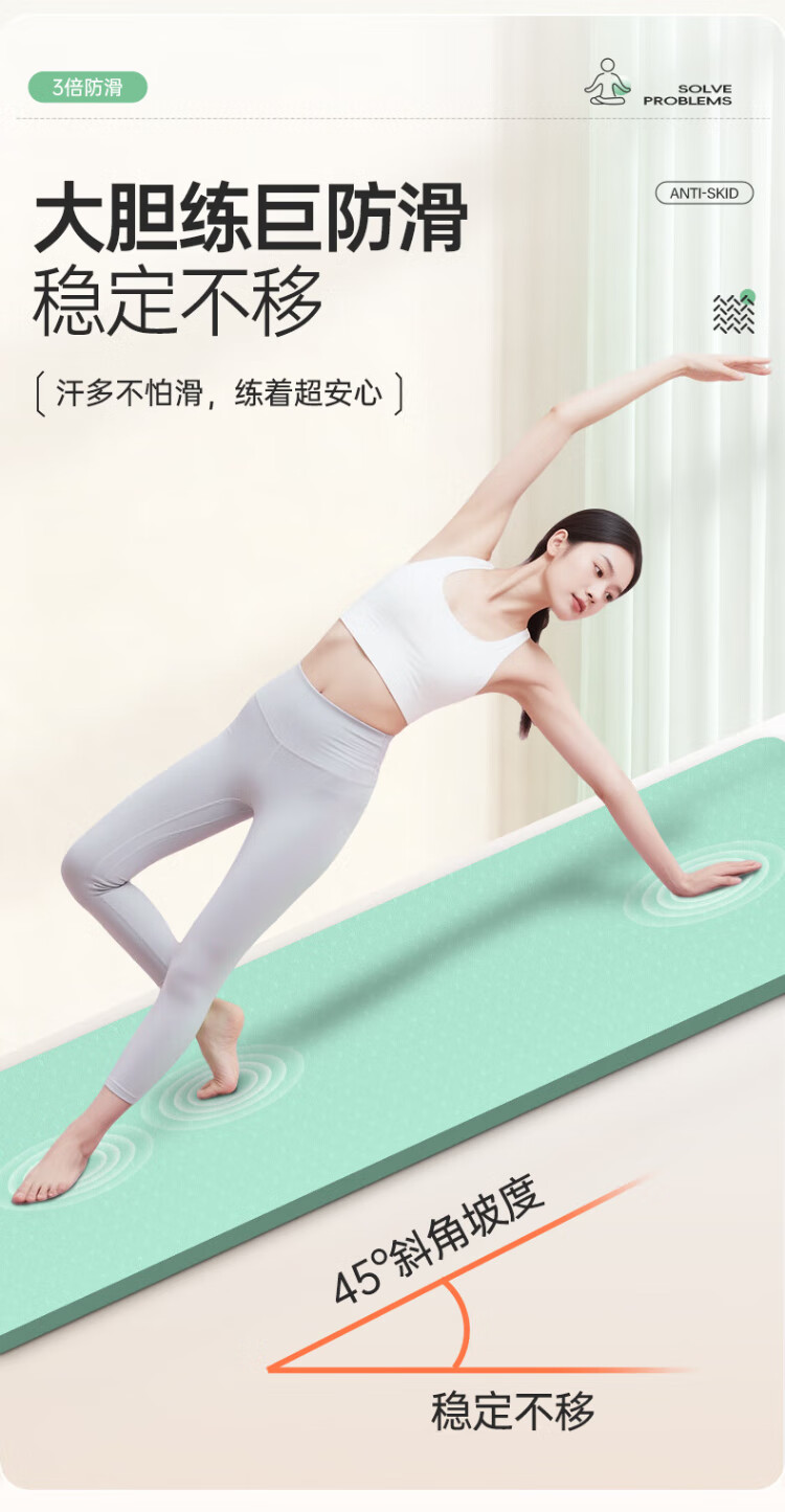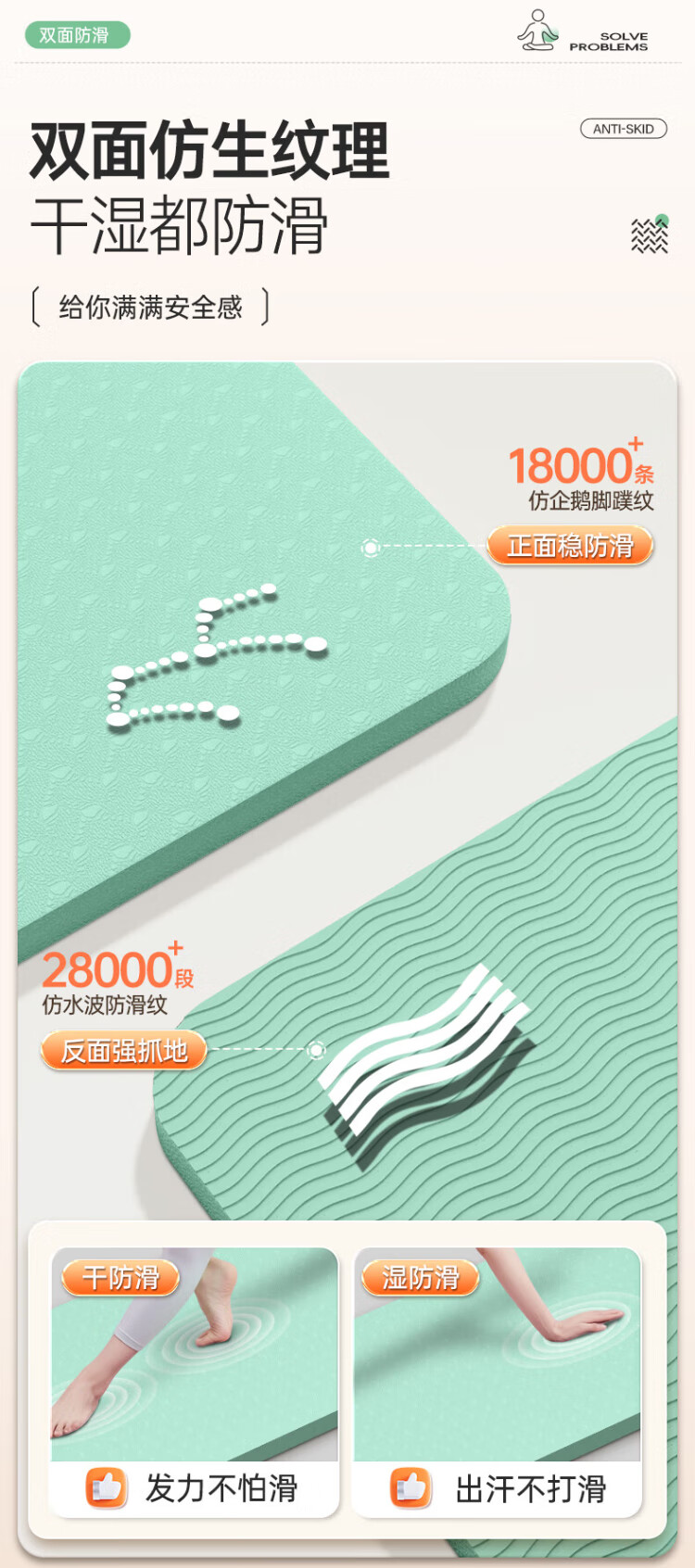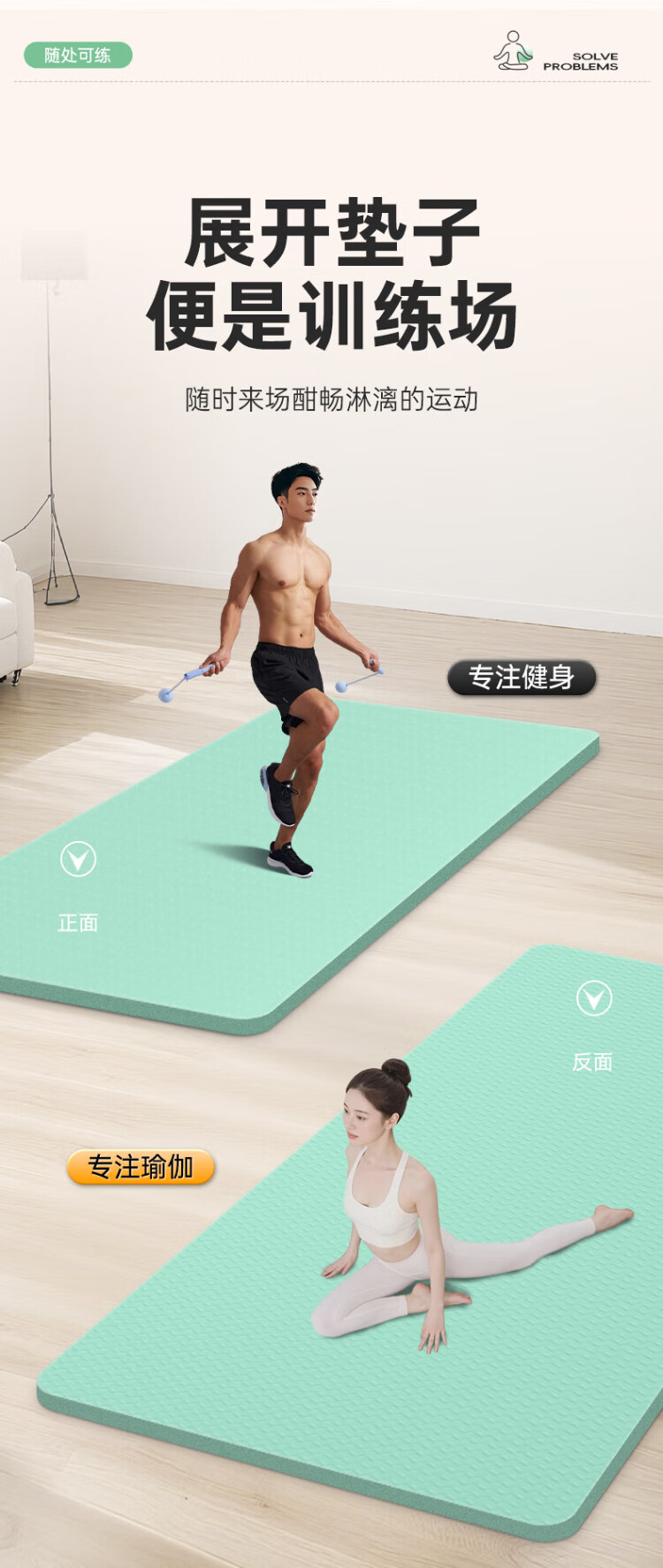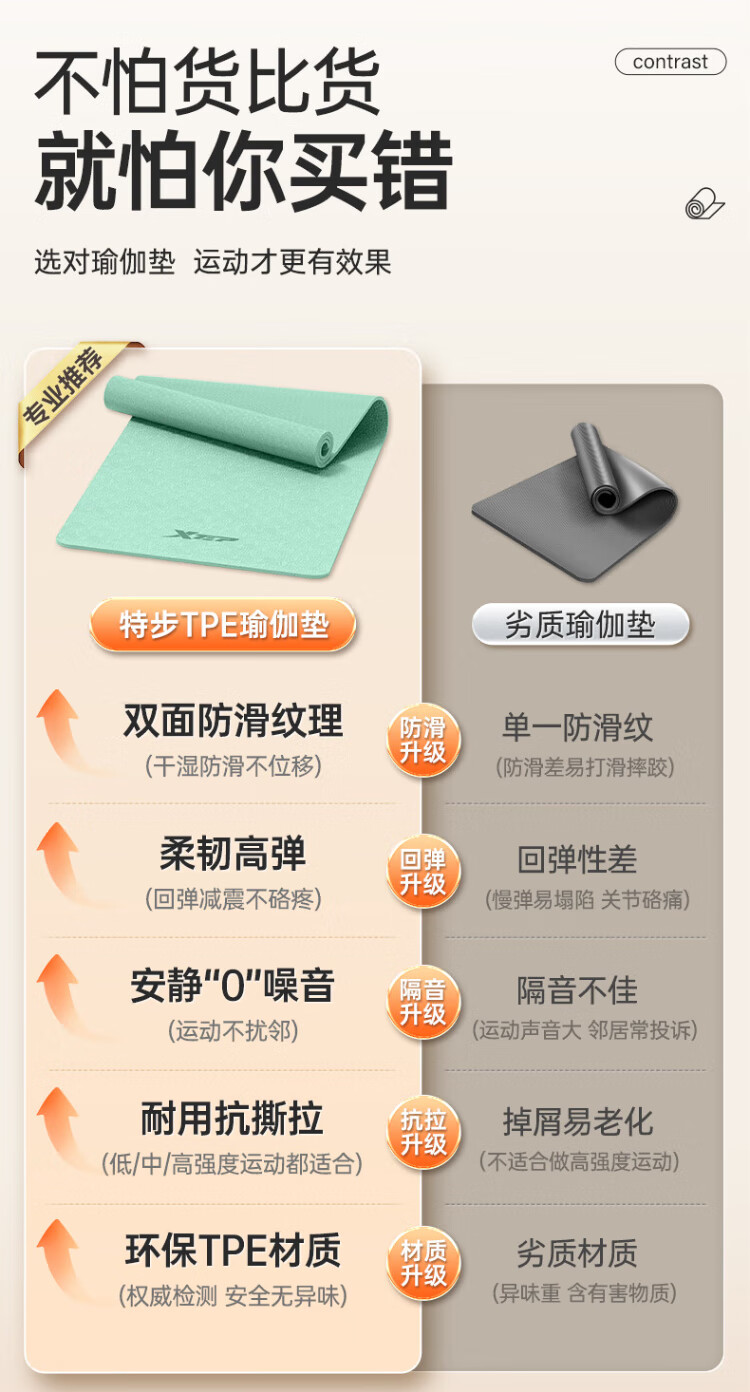 XTEP yoga mat TPE men's and women's fitness mat professional non-slip shock-absorbing aerobics soundproofing thickened general purpose sports mat