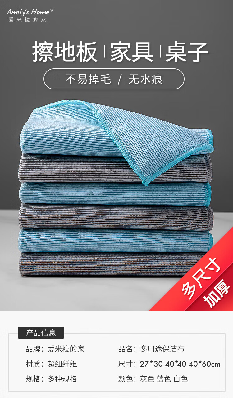 Aimili's home cleaning towel, floor rag, cleaning cloth, absorbent, mopping floor, wiping tablecloth, wiping furniture, linen cloth, large size, 2 mixed colors, 40*60cm
