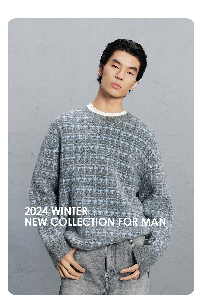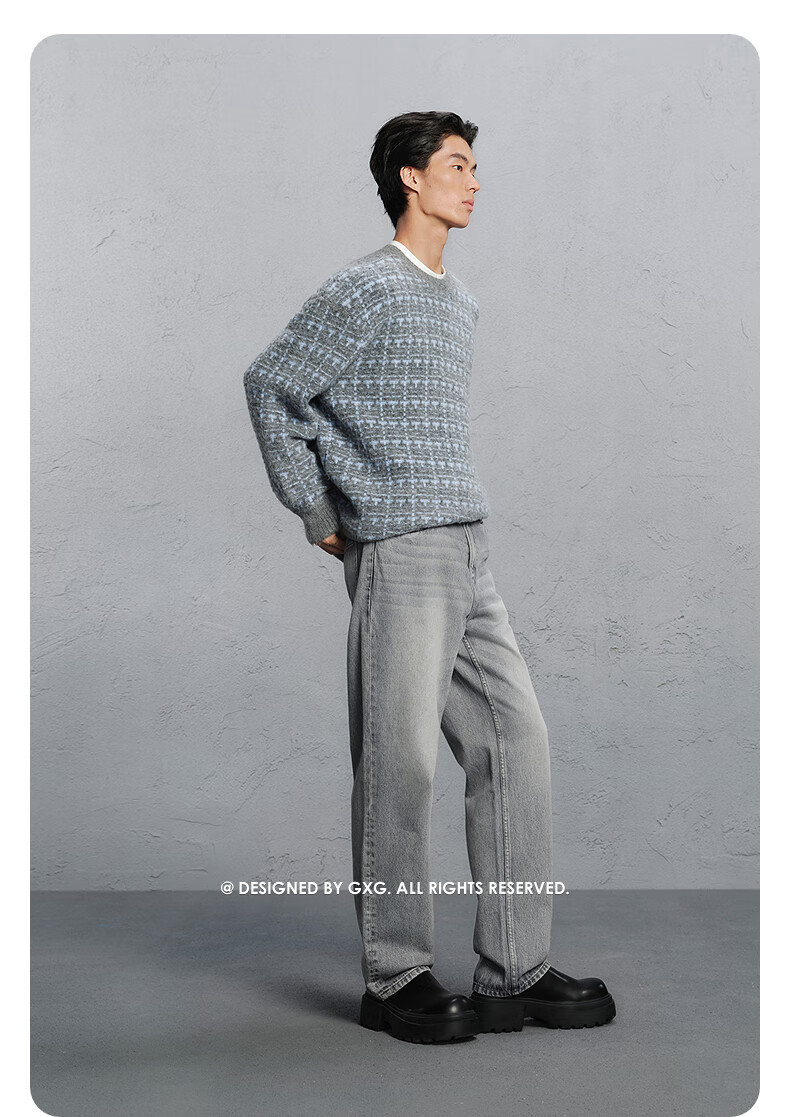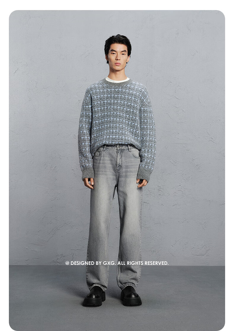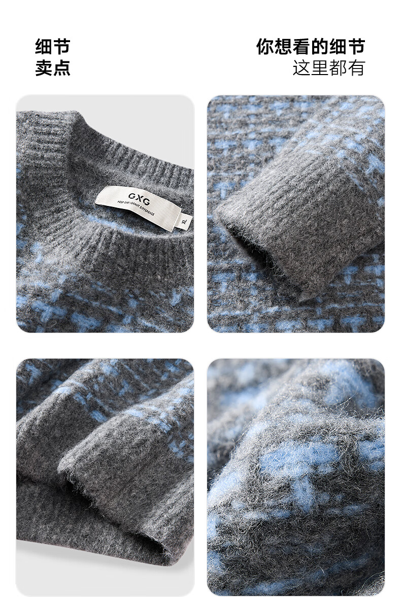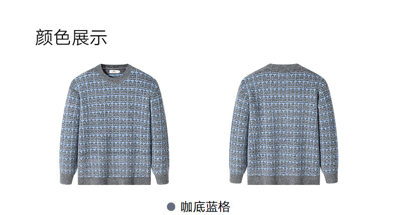 GXG Men's Wear Shopping Mall Checked Sweater Men's Loose Commuting Sweater, Coffee Bottom Blue Plaid 175/L