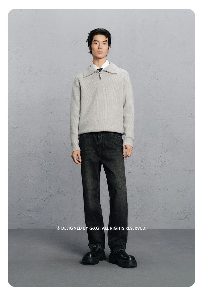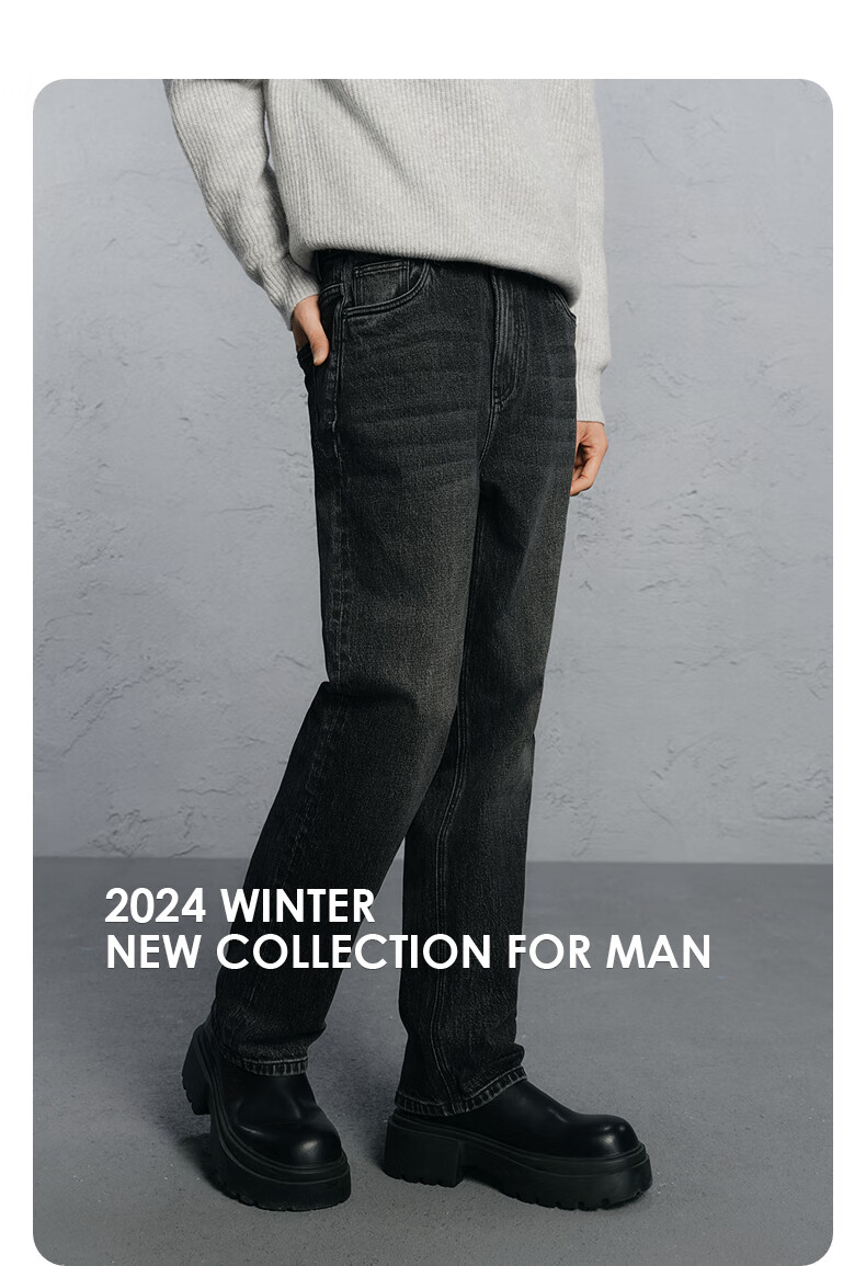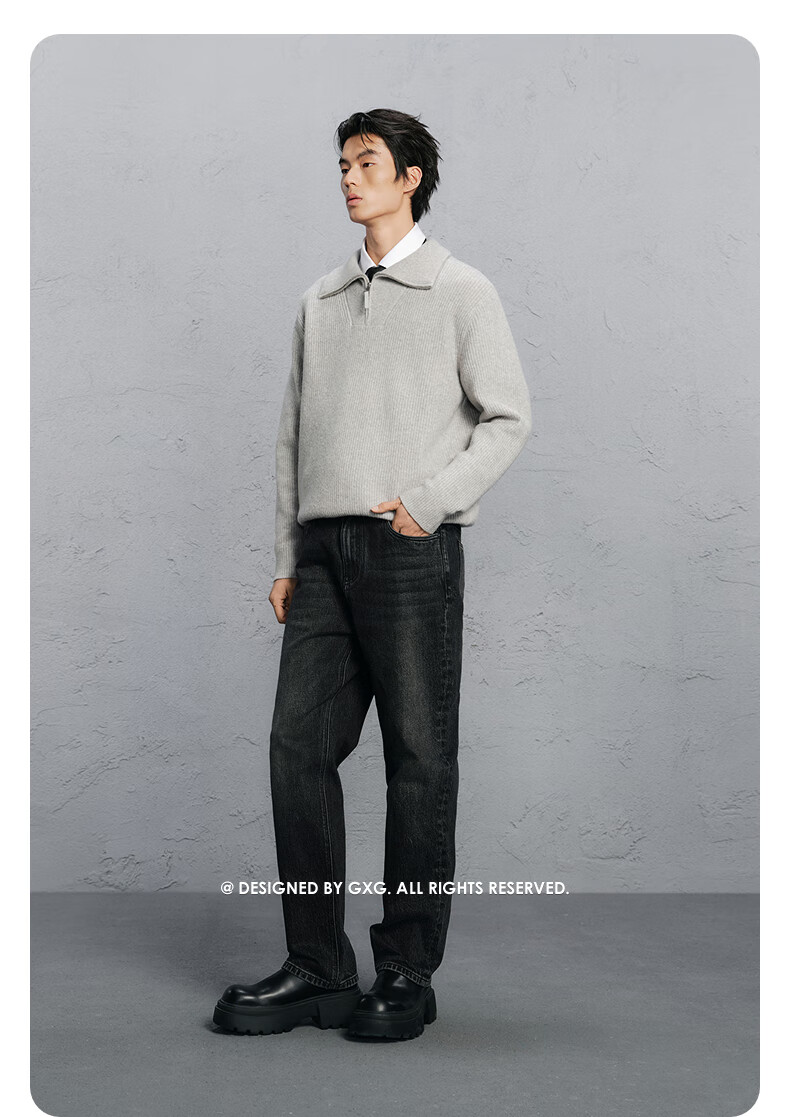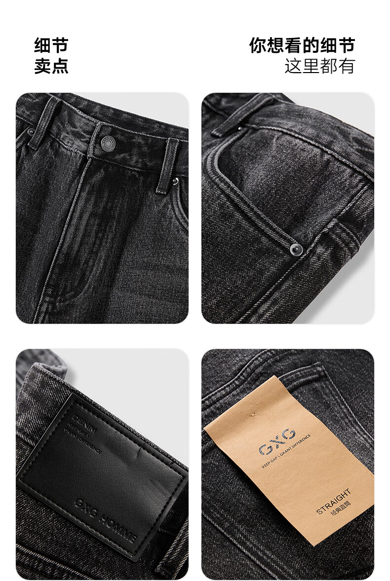 GXG Men's Wear Shopping Mall Same Style Washed Gray Jeans Men's Straight Commuting Trousers Dark Gray 175/L