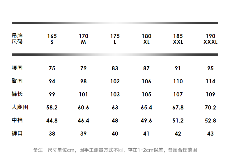 Outseam (cm) 99 cm 101.5 cm 104 cm 106.5 cm 109 cm