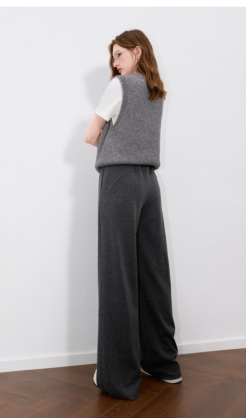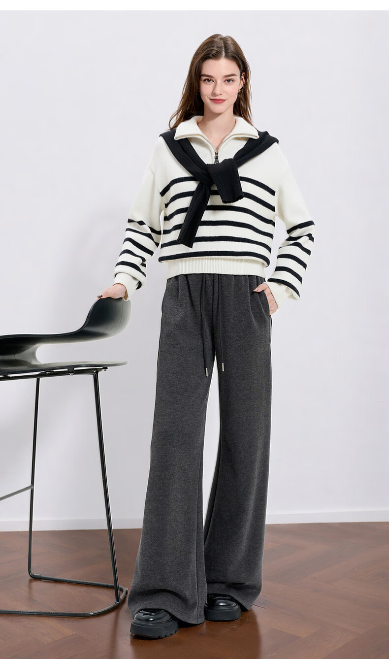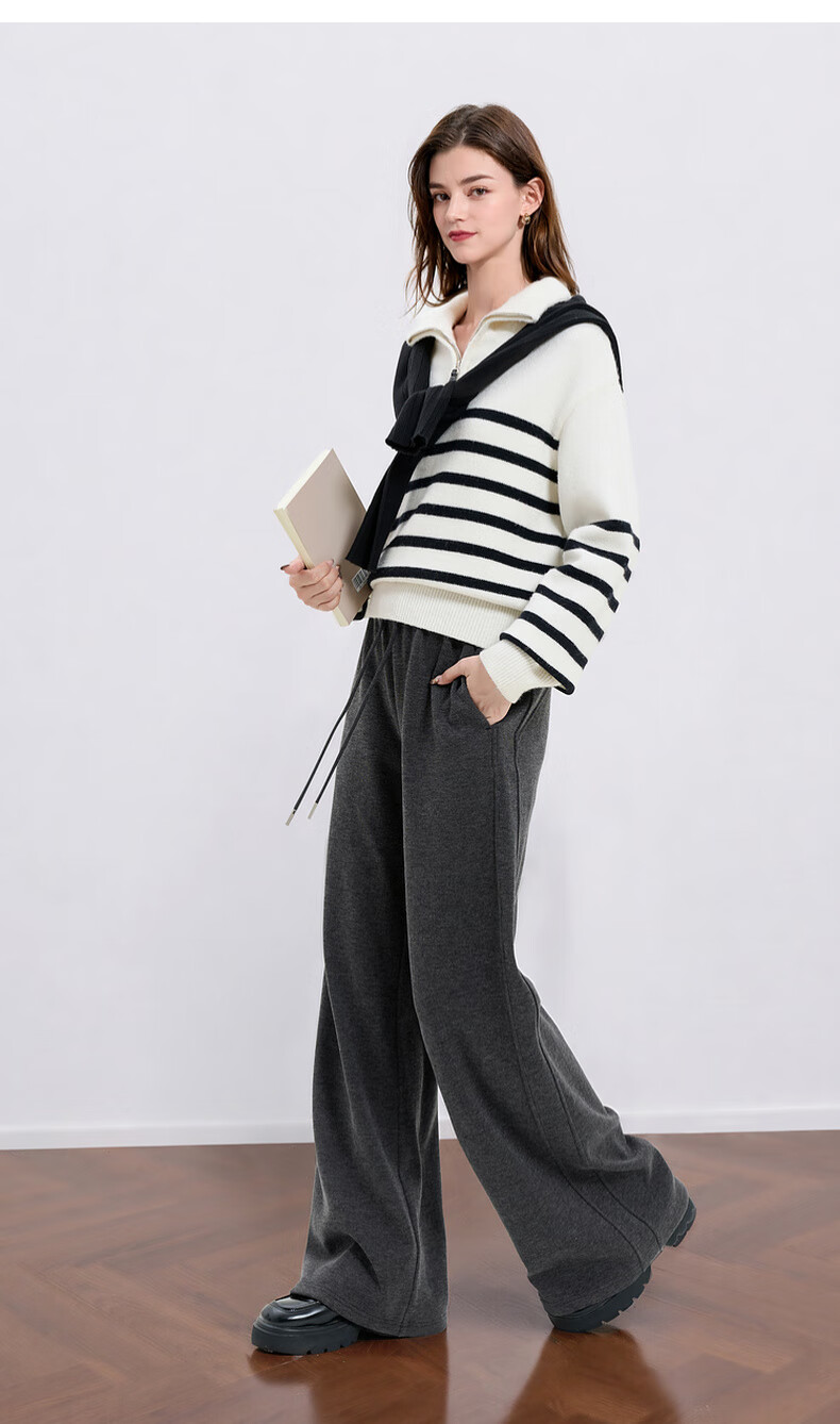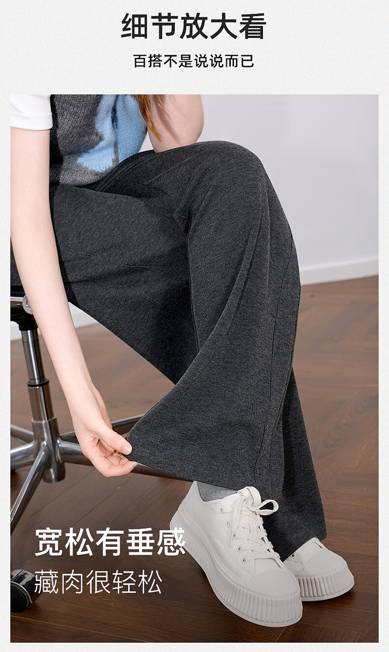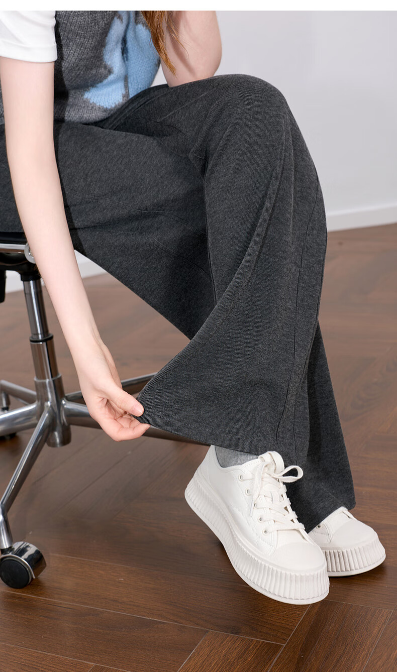 Sancai 2025 new winter high-waisted casual pants, glutinous rice velvet straight pants and velvet warm trousers M