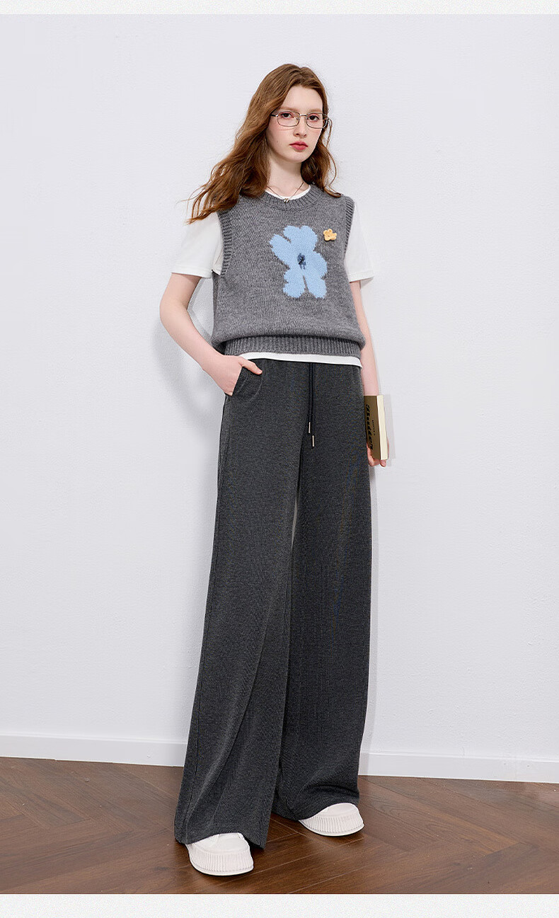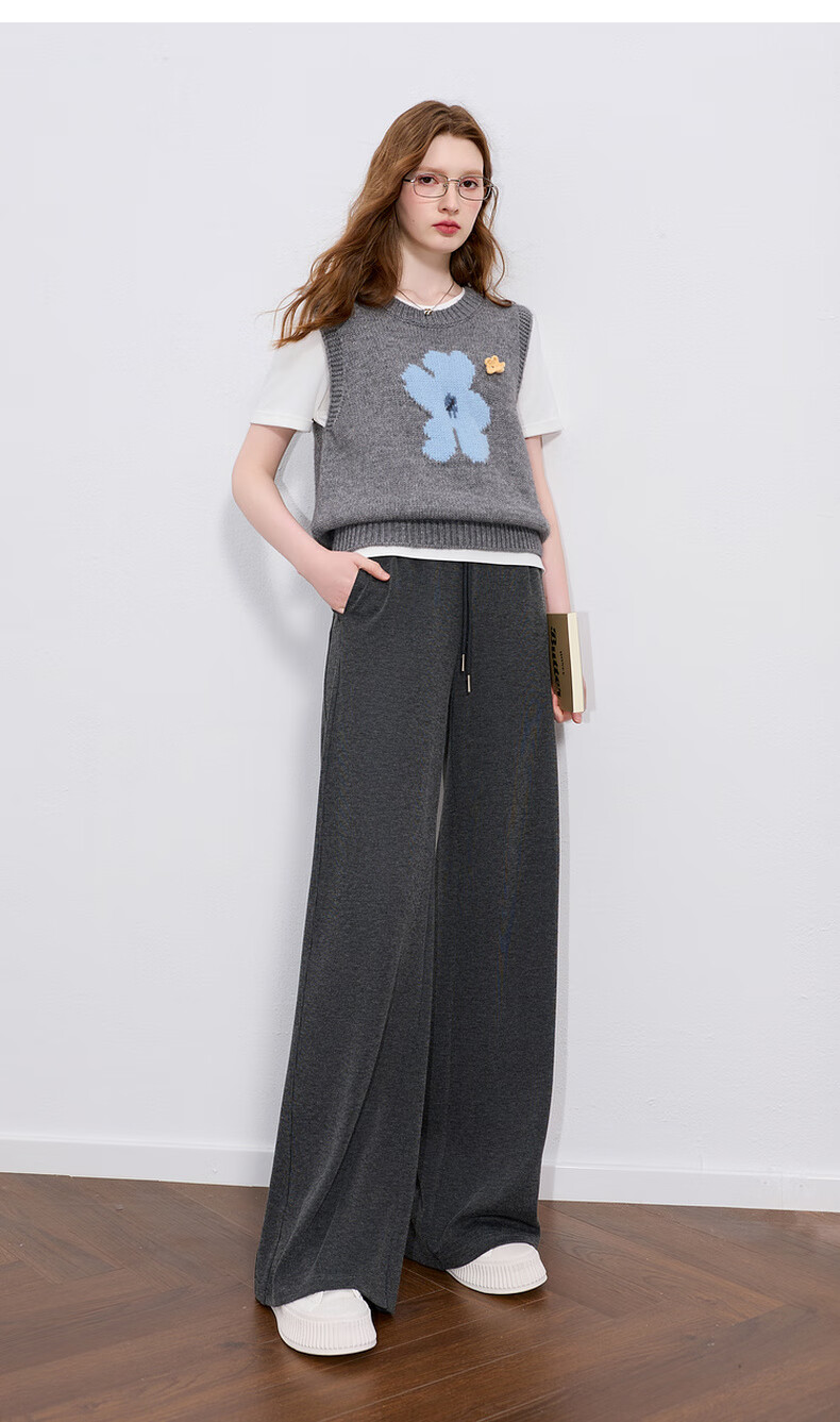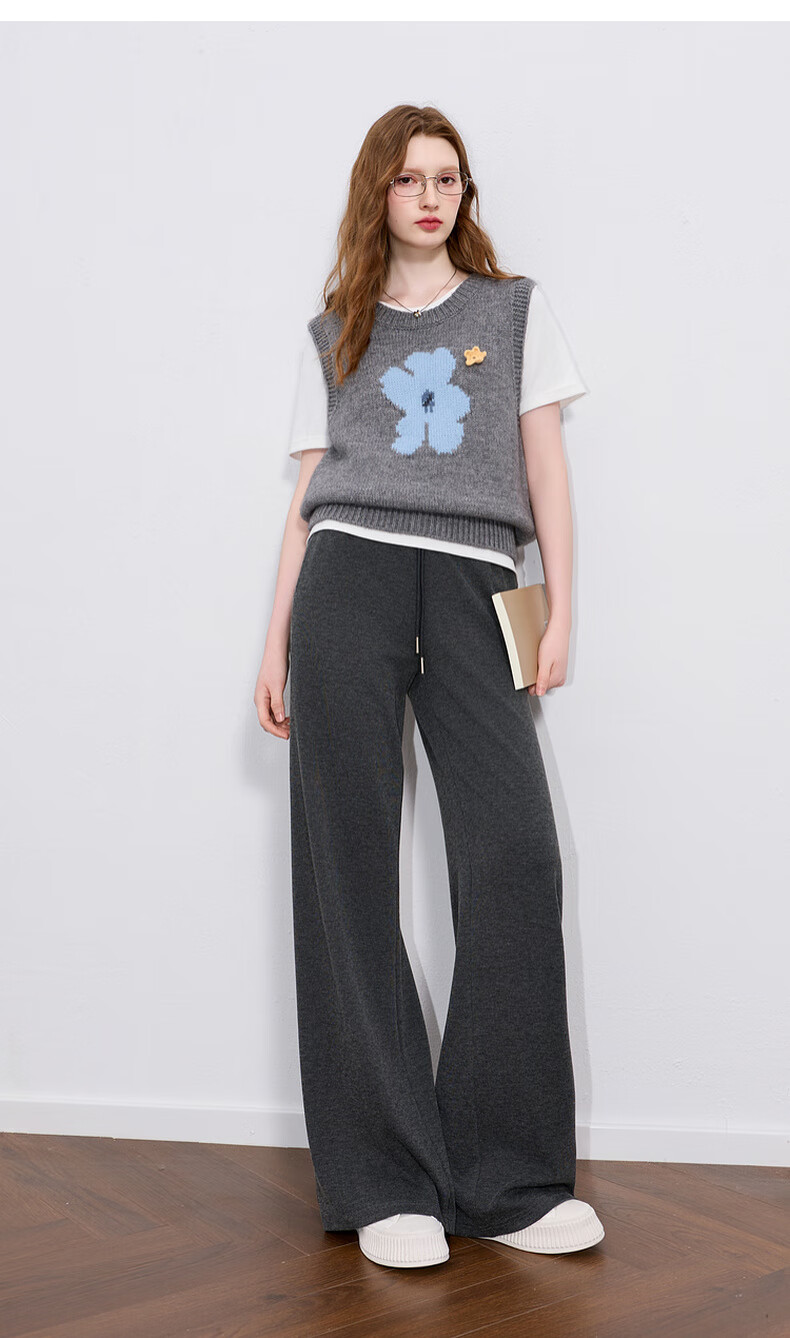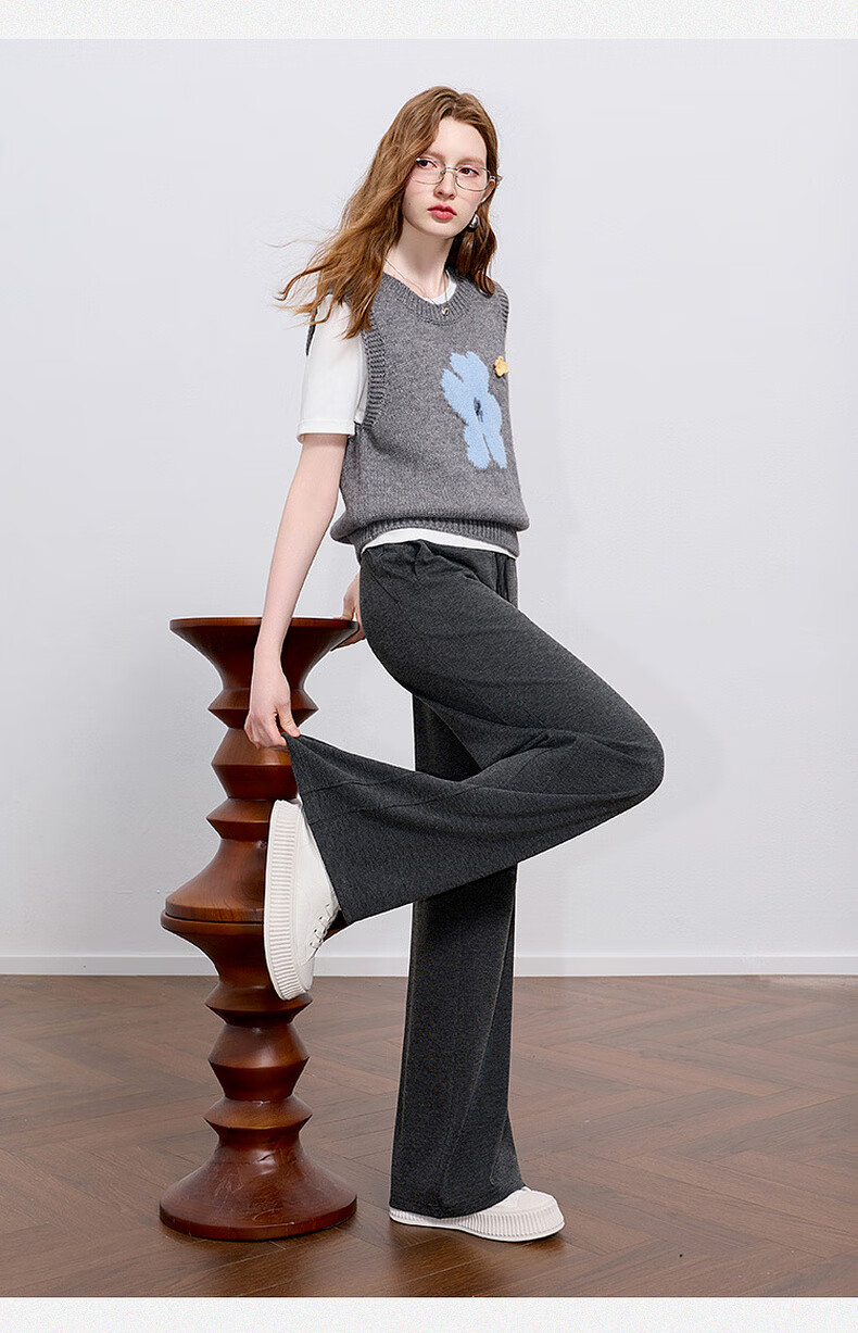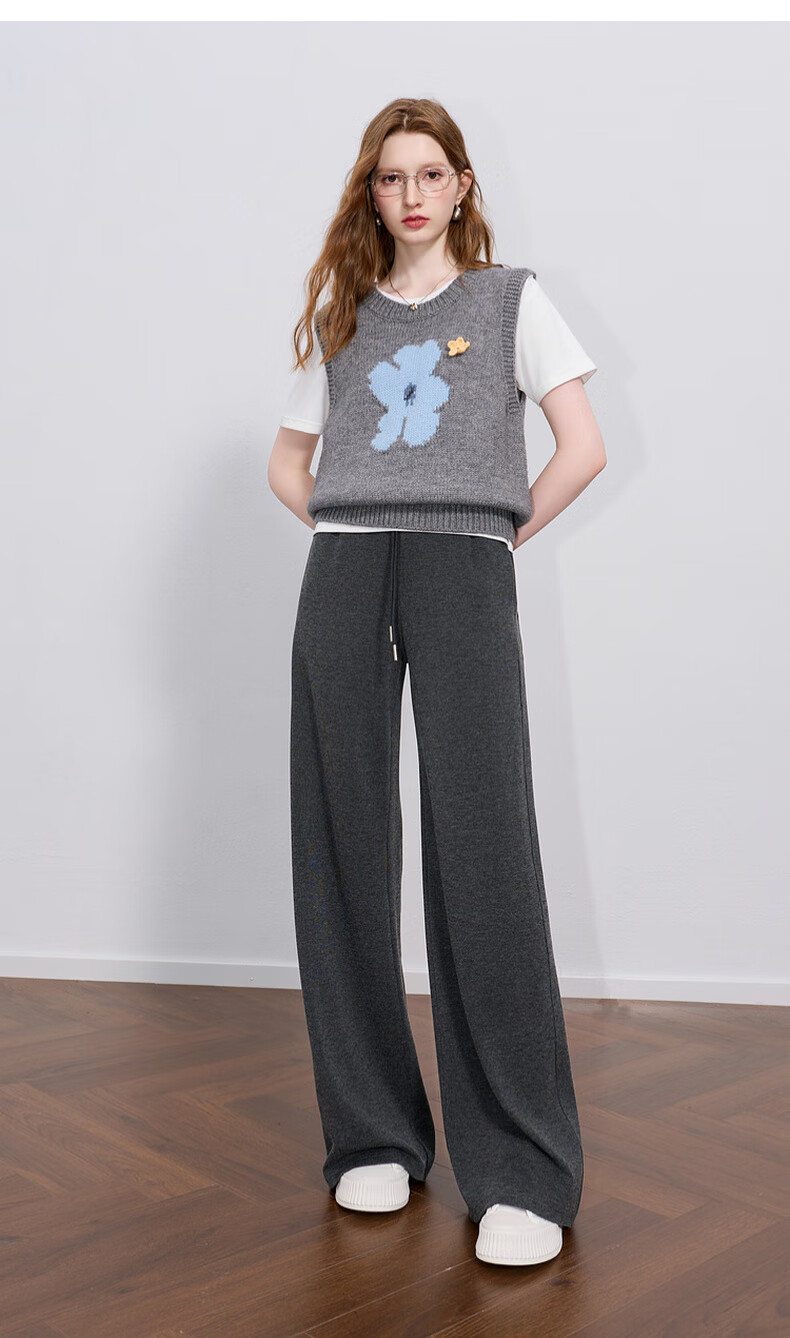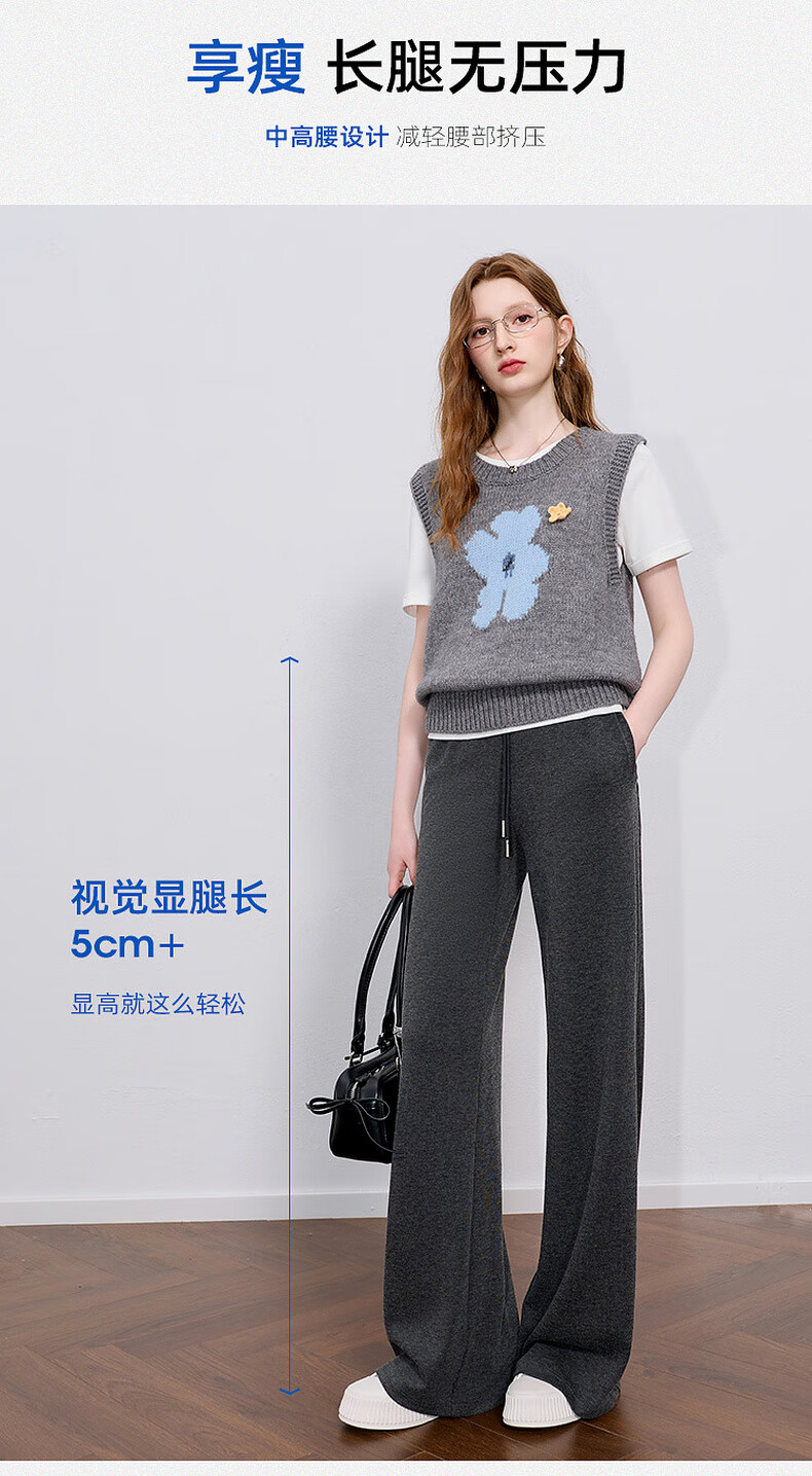 Sancai 2025 new winter high-waisted casual pants, glutinous rice velvet straight pants and velvet warm trousers M