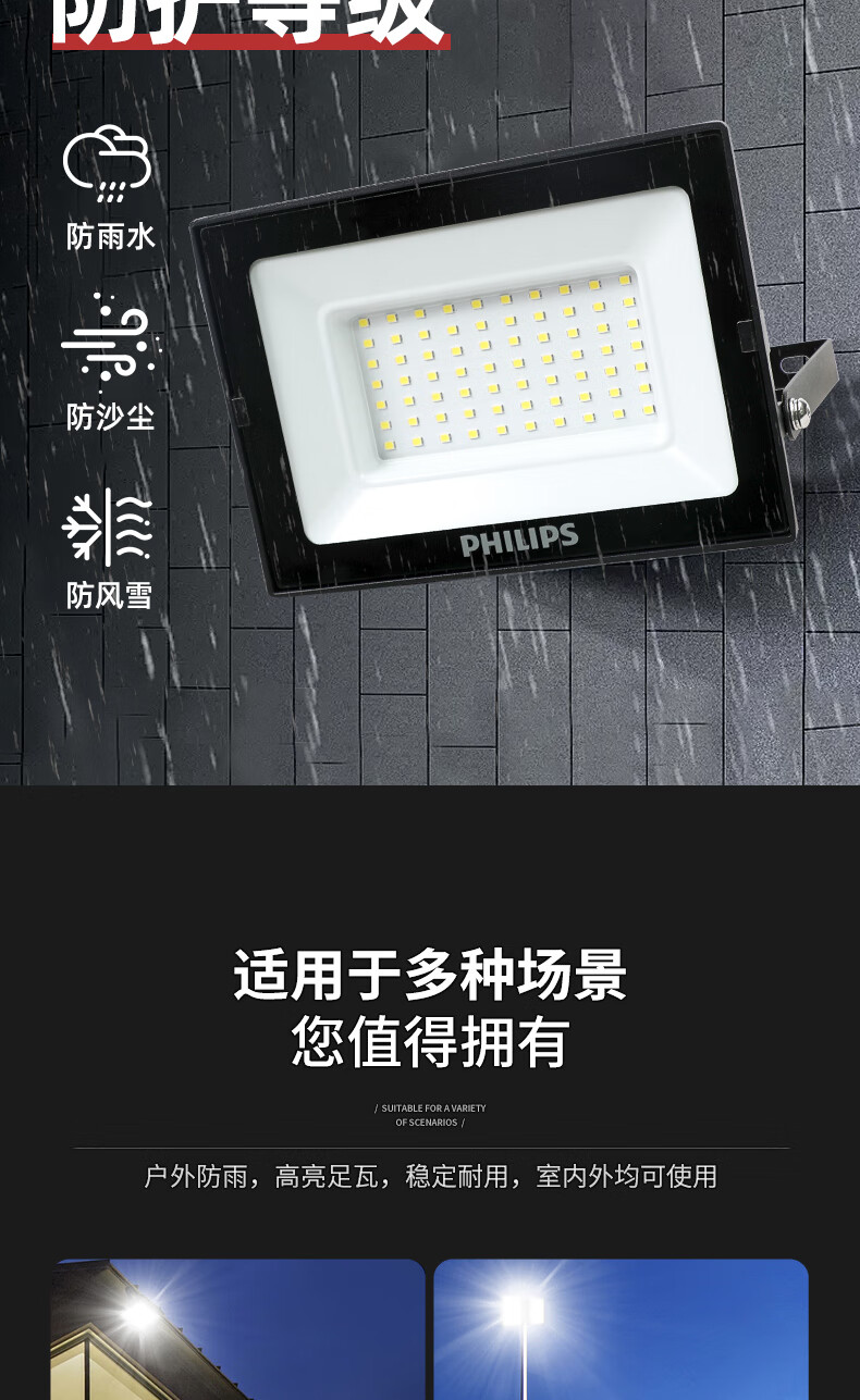 Philips (PHILIPS) high power LED floodlight 100W waterproof IP65 outdoor outdoor floodlight factory factory courtyard lighting billboard projection light white light 6500K