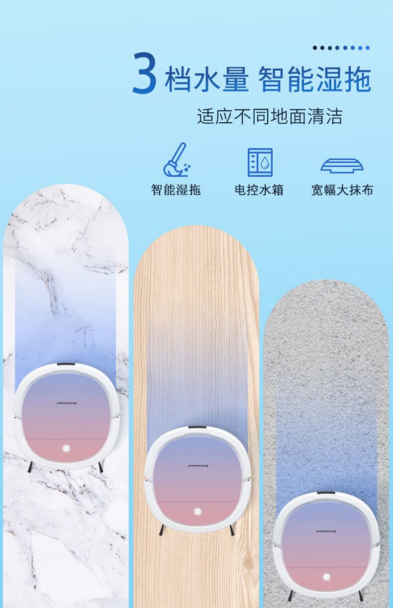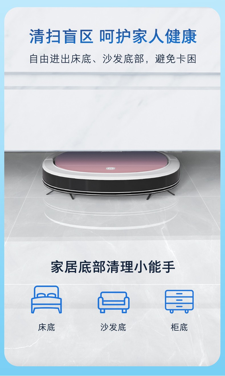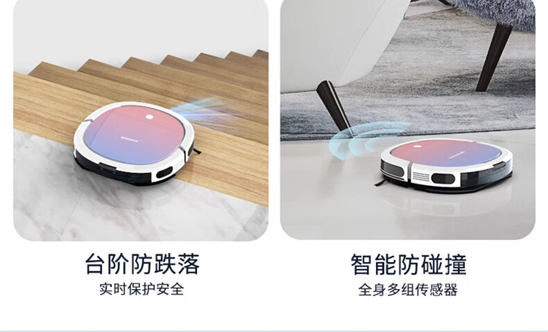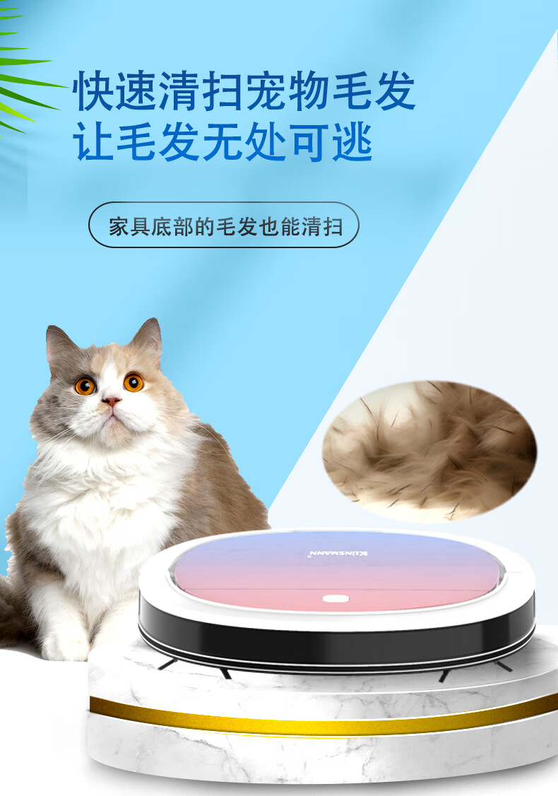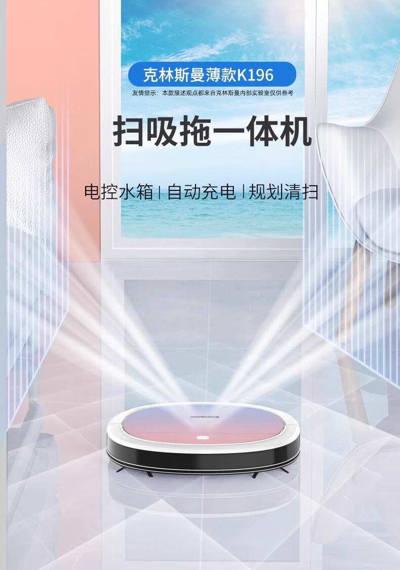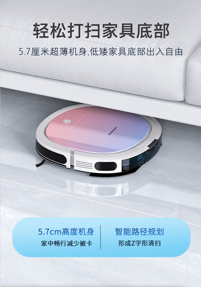 Klinsmann Klinsmann sweeping robot ultra-thin intelligent fully automatic household vacuum cleaner sweeping, suction and mopping all-in-one floor wiping robot K196 pink body height 5.7CM (suitable for families with pets)