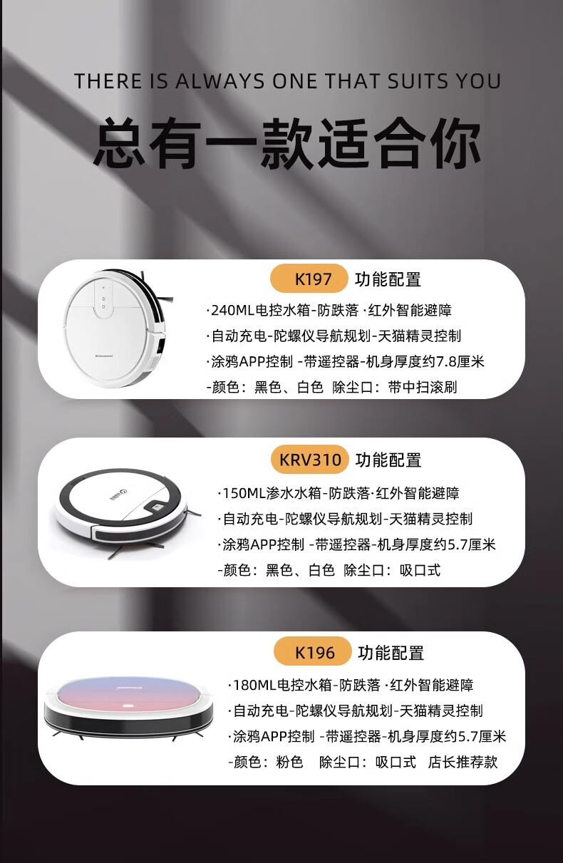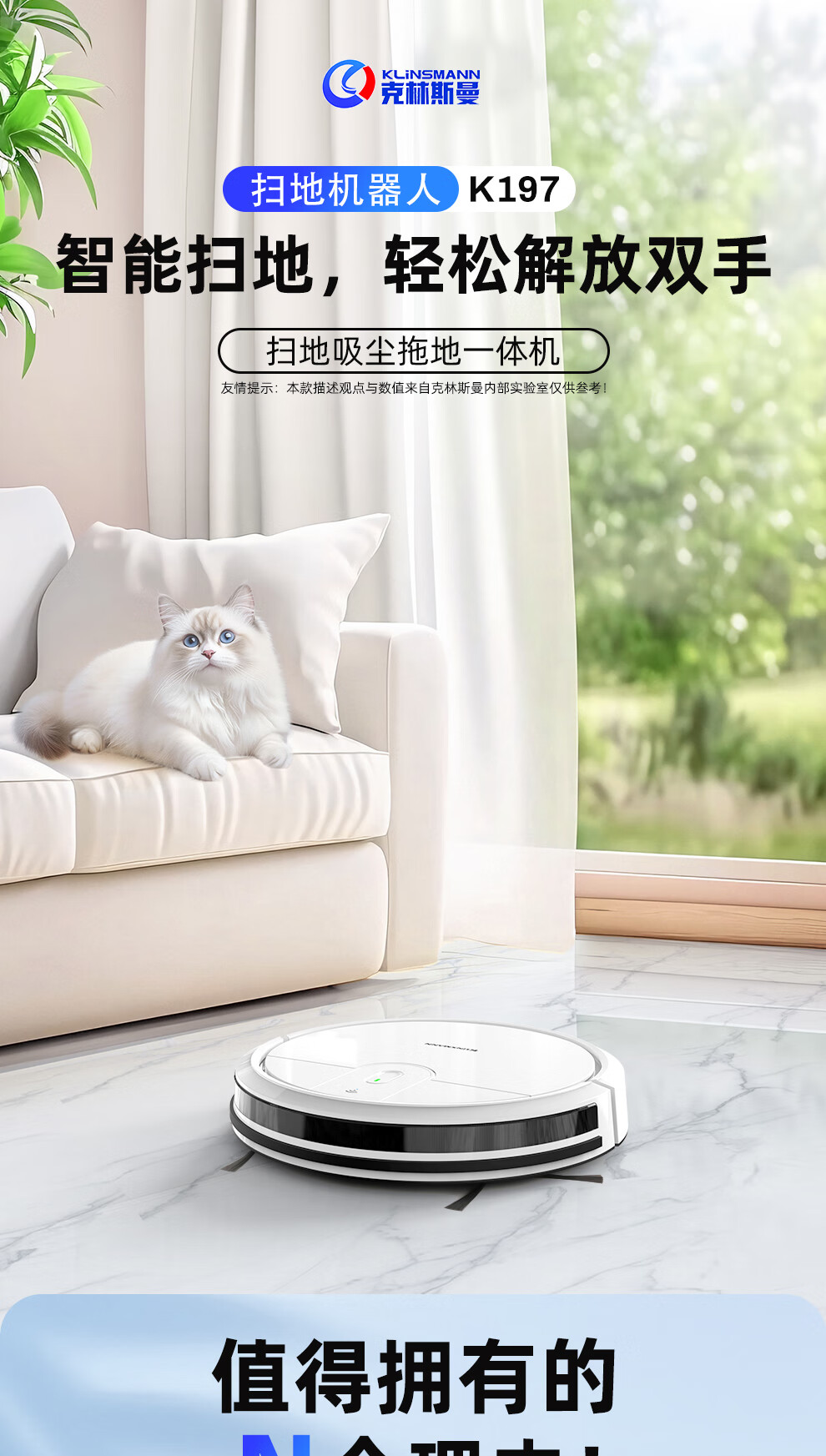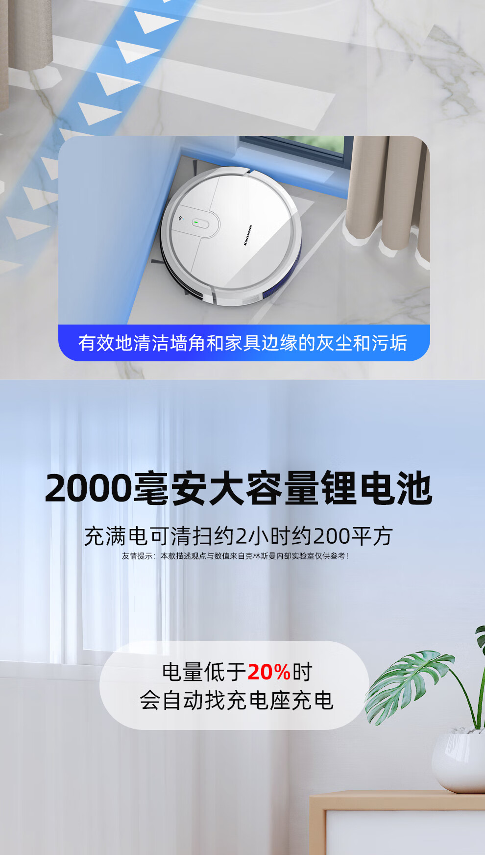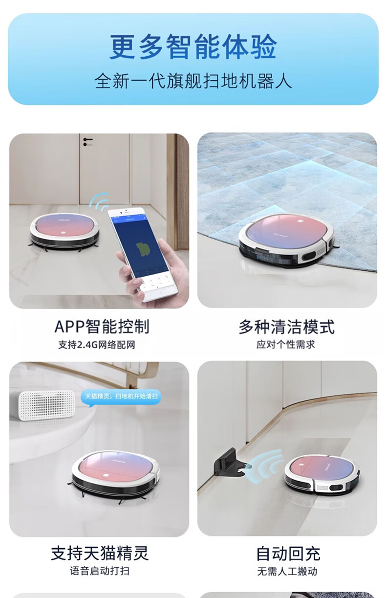 Klinsmann Klinsmann sweeping robot ultra-thin intelligent fully automatic household vacuum cleaner sweeping, suction and mopping all-in-one floor wiping robot K196 pink body height 5.7CM (suitable for families with pets)