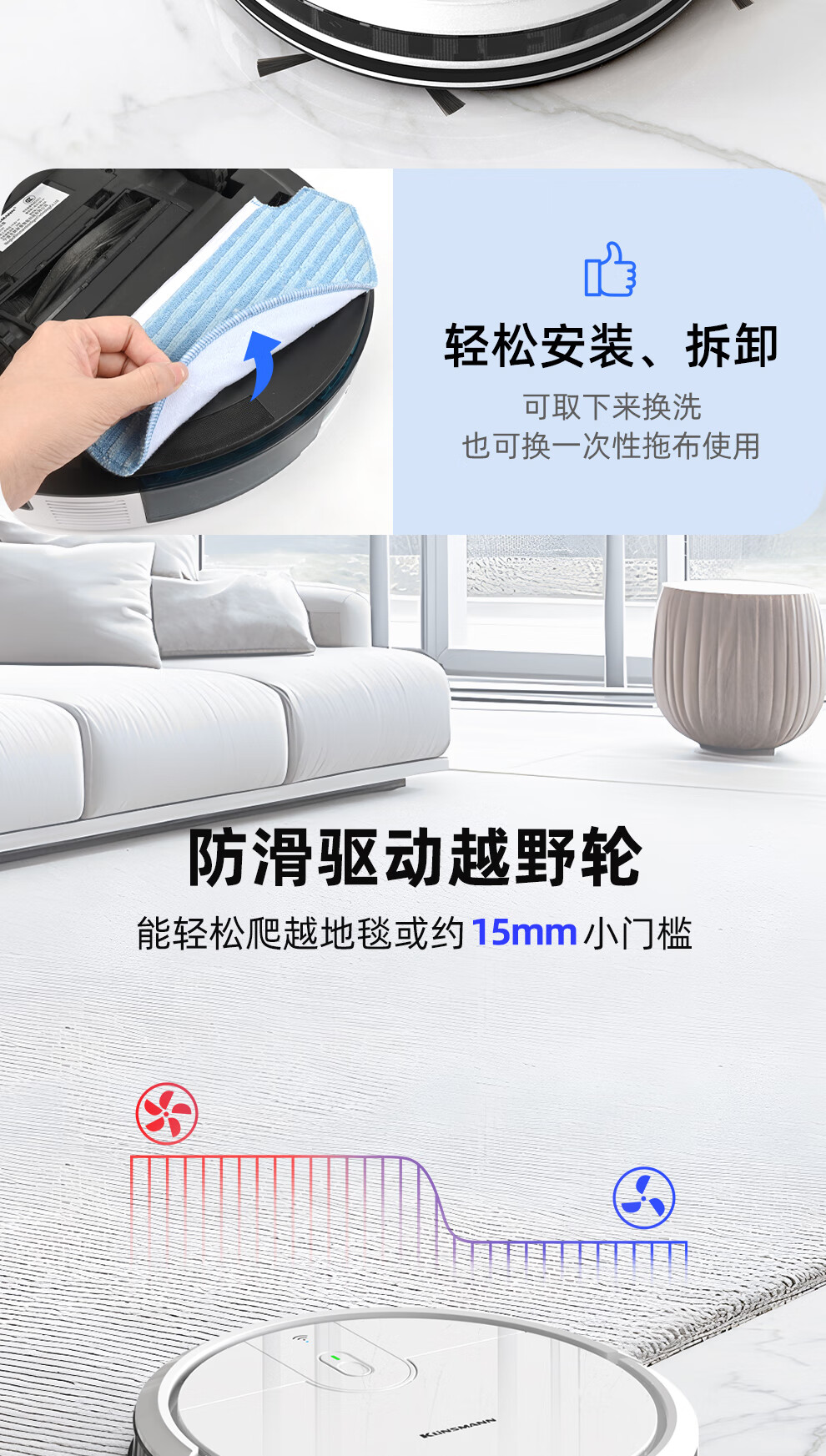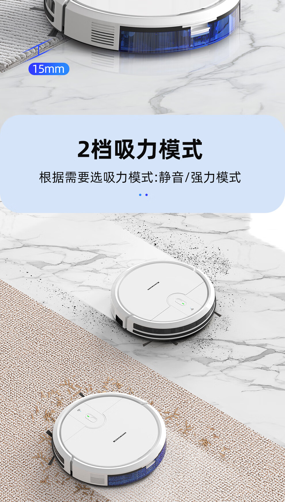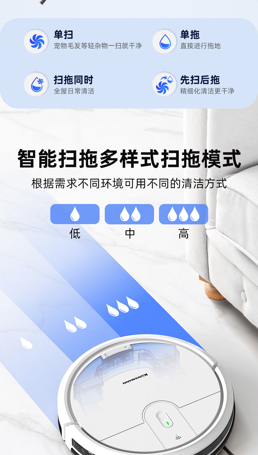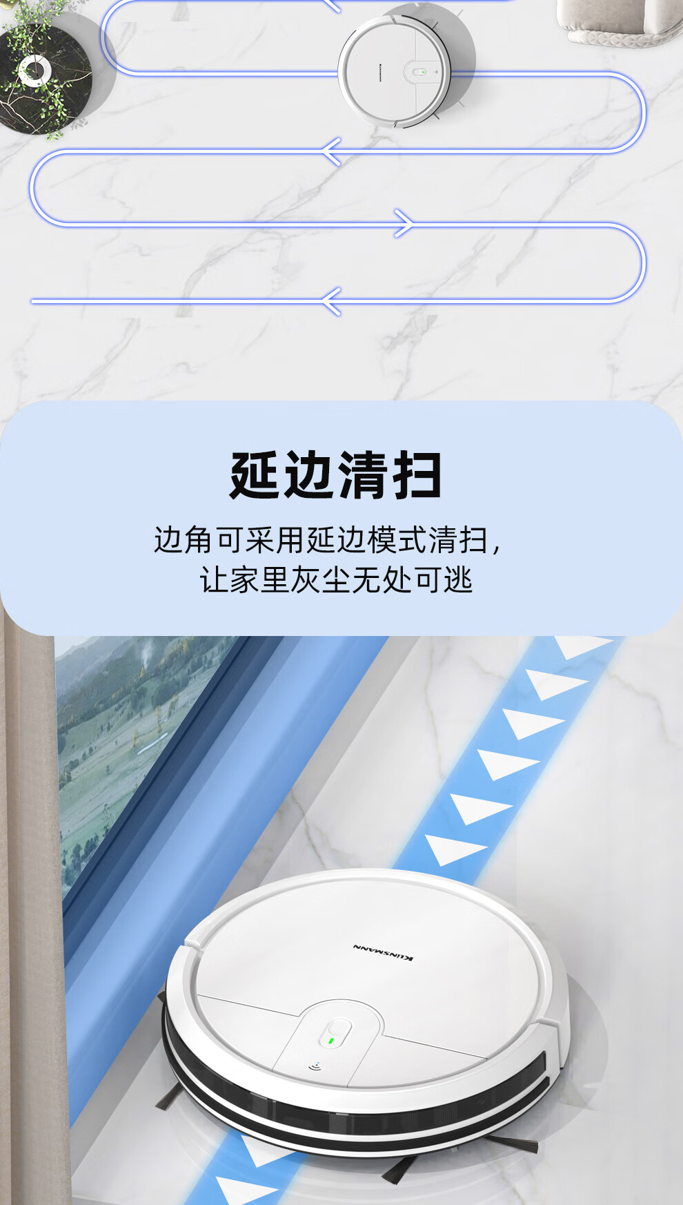 Klinsmann Klinsmann sweeping robot ultra-thin intelligent fully automatic household vacuum cleaner sweeping, suction and mopping all-in-one floor wiping robot K196 pink body height 5.7CM (suitable for families with pets)