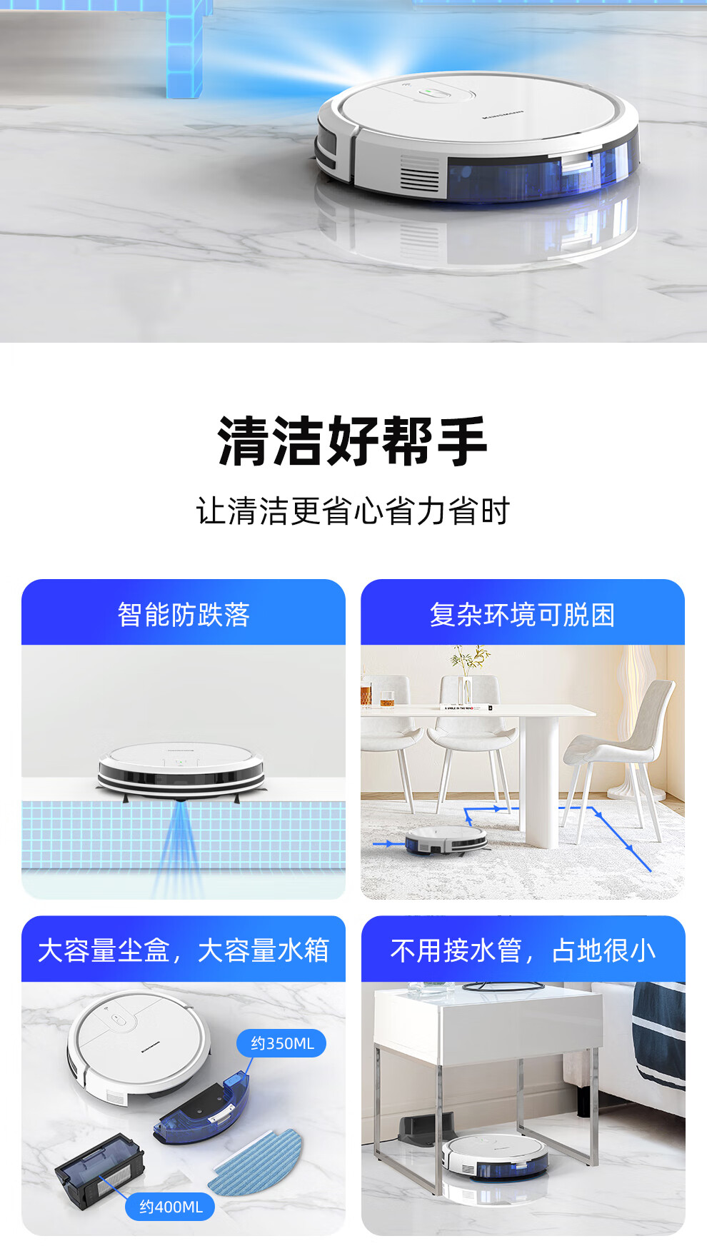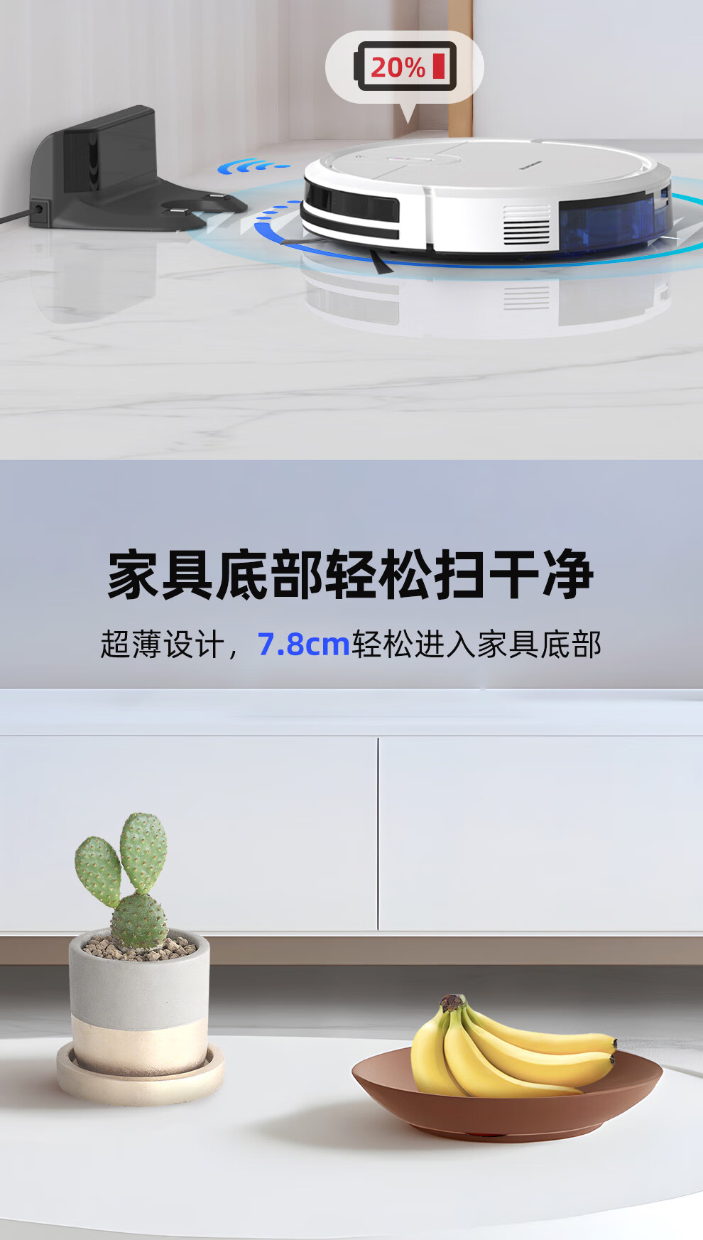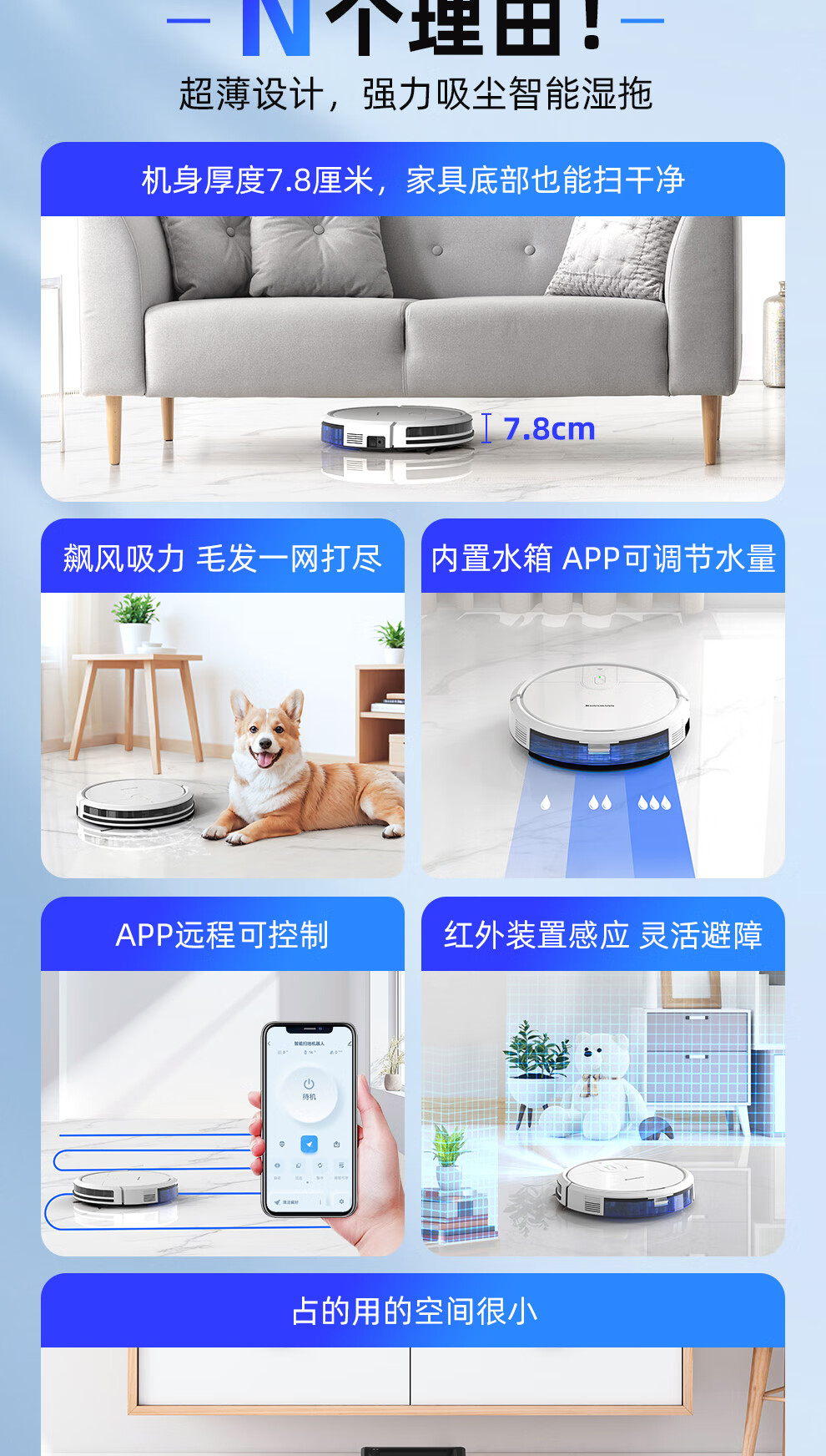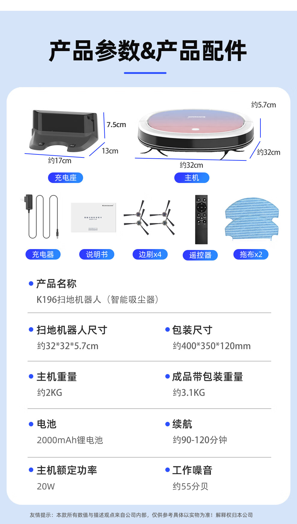 Klinsmann Klinsmann sweeping robot ultra-thin intelligent fully automatic household vacuum cleaner sweeping, suction and mopping all-in-one floor wiping robot K196 pink body height 5.7CM (suitable for families with pets)