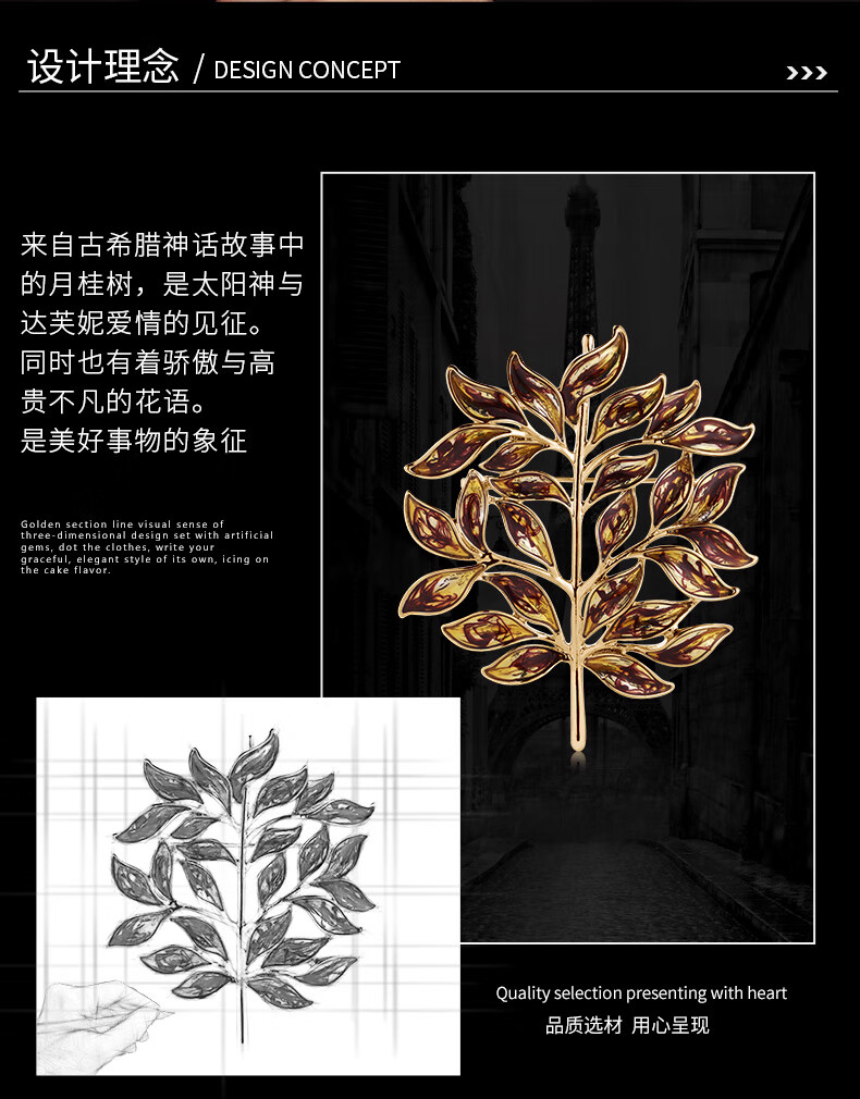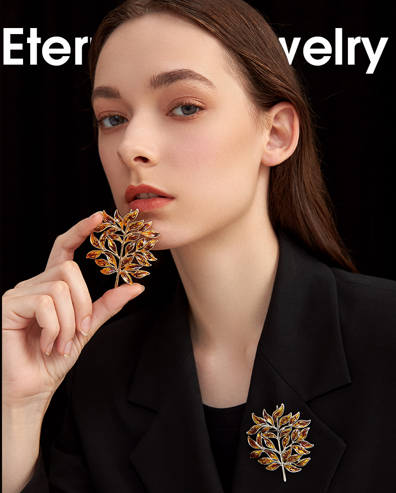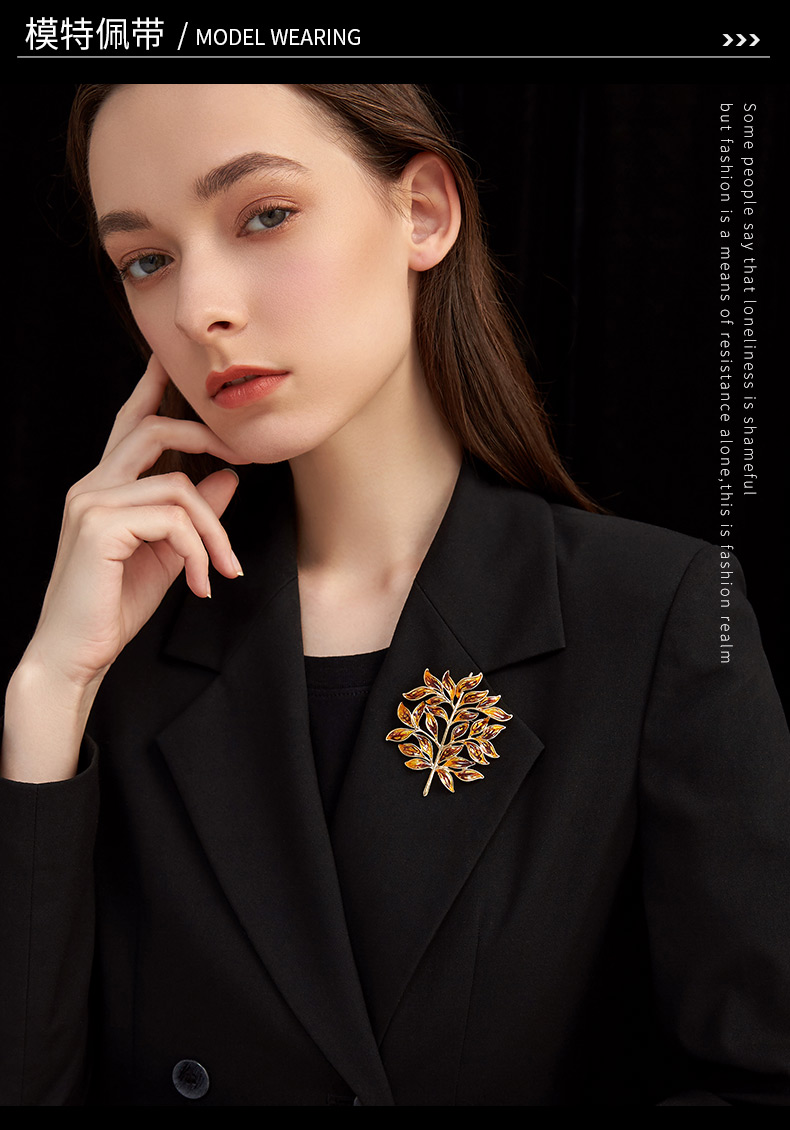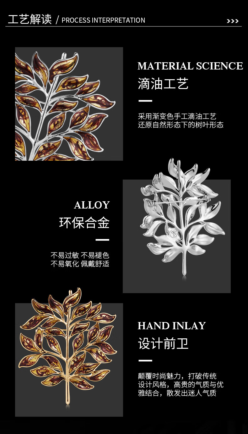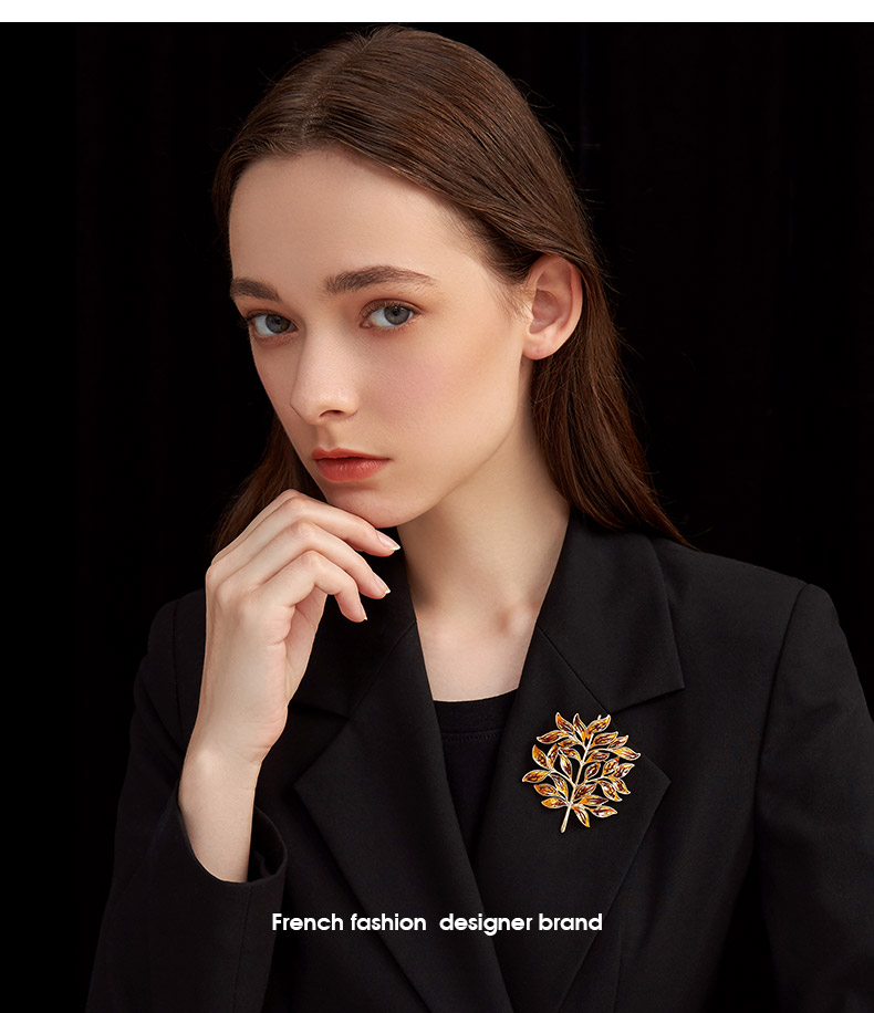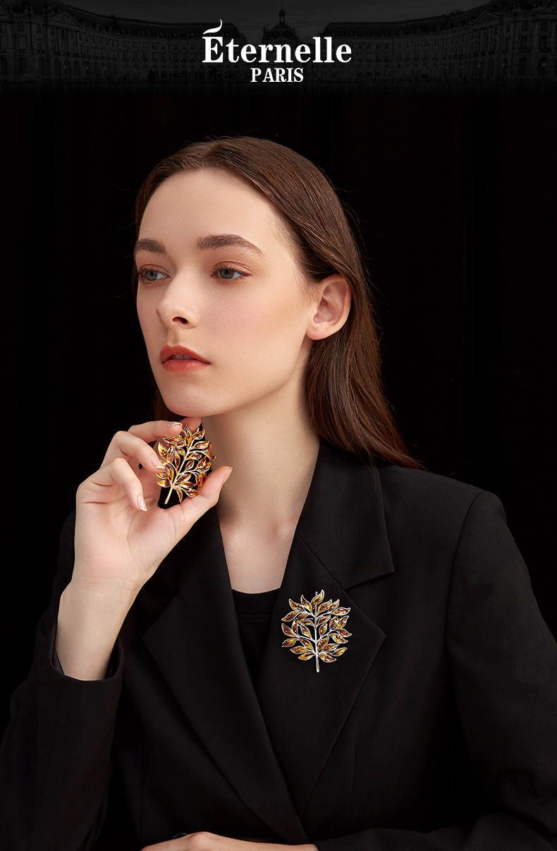 Eternelle French eternal original design high-end brooch for women leaf shape versatile corsage brooch clothing collar pin bright gold