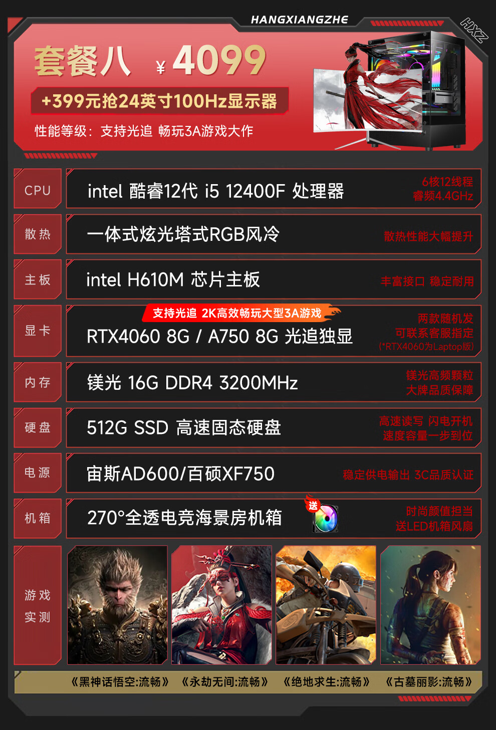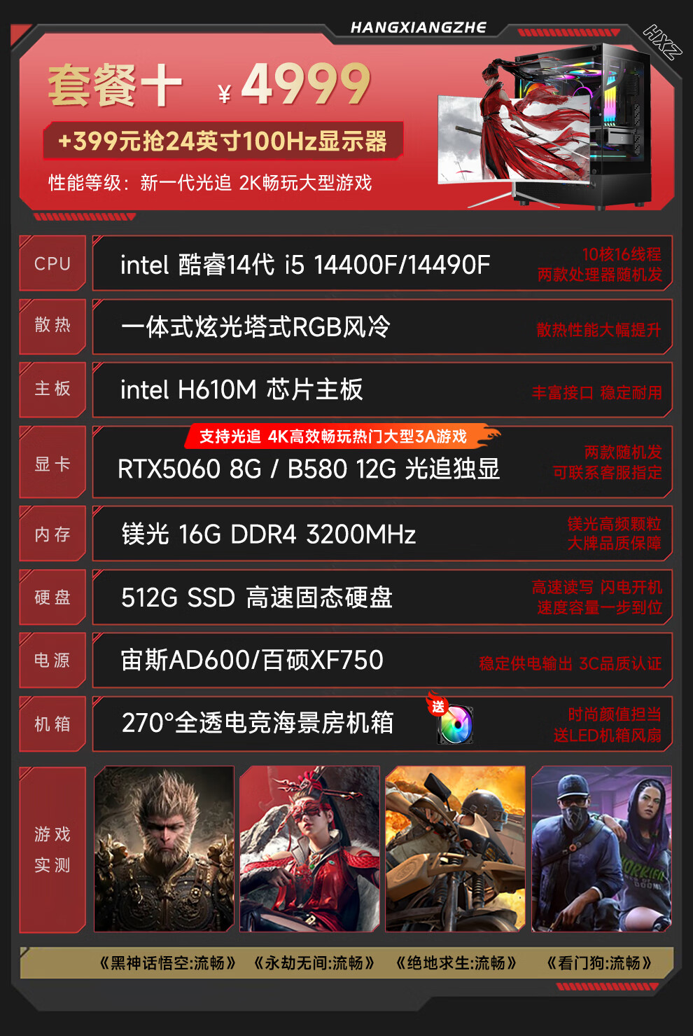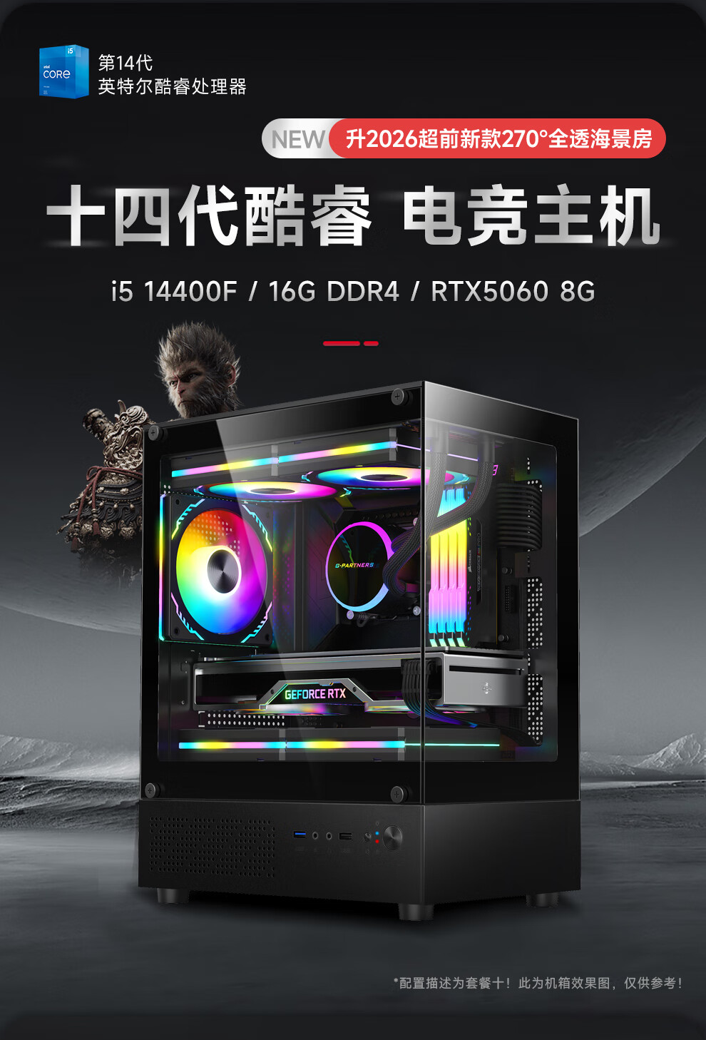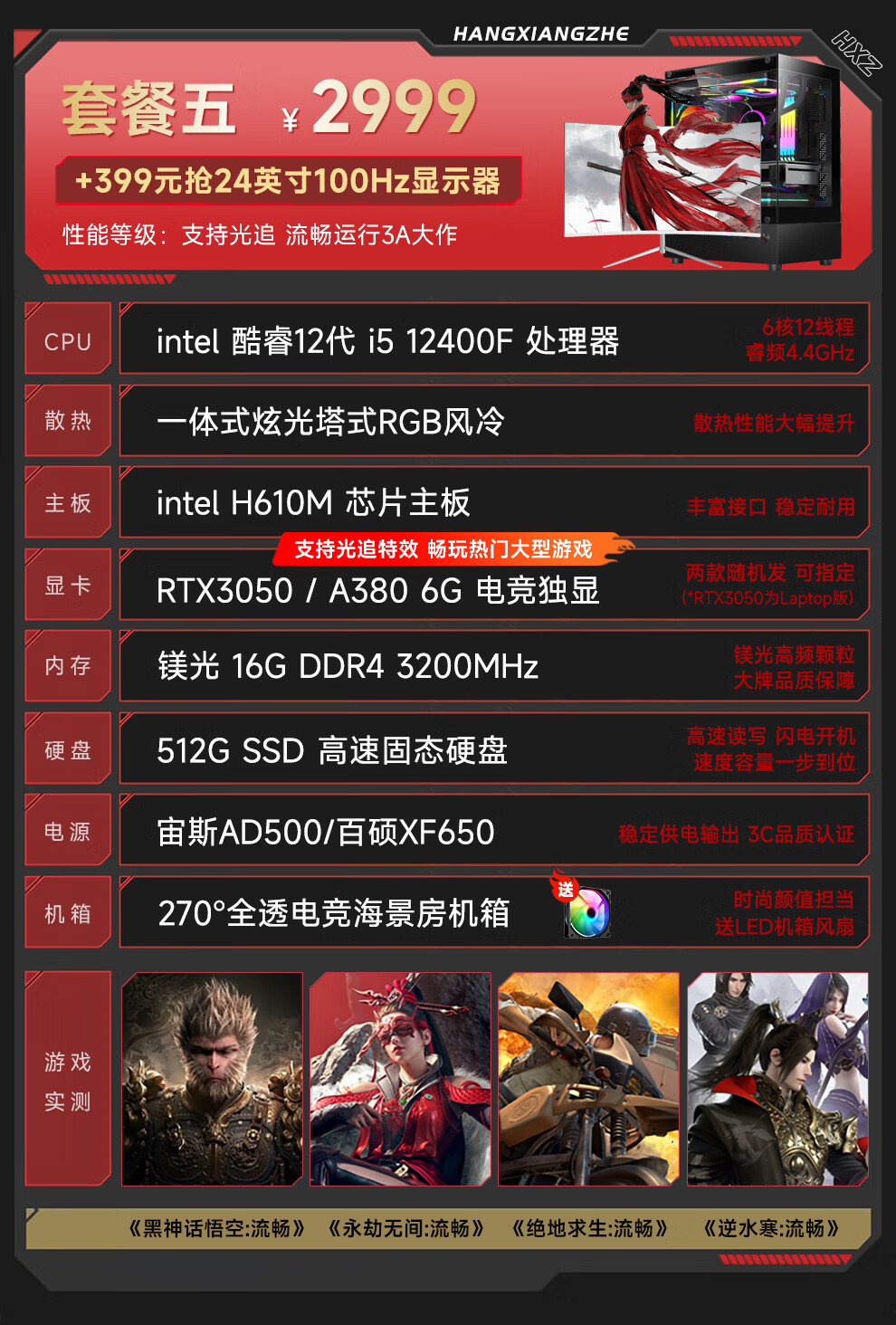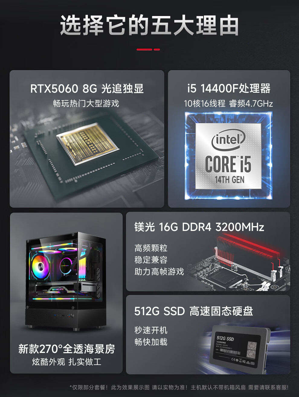 Navigator/Core i5 12400F/14400F/RTX5060/4060 gaming e-sports design desktop computer host DIY assembly computer complete machine installation complete set of chicken office set of five 12400F丨512G丨RTX3050