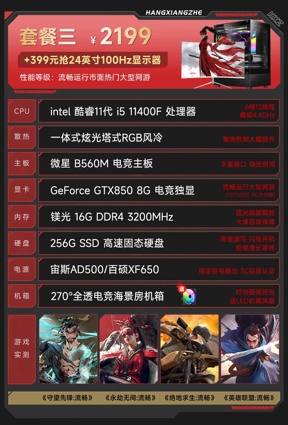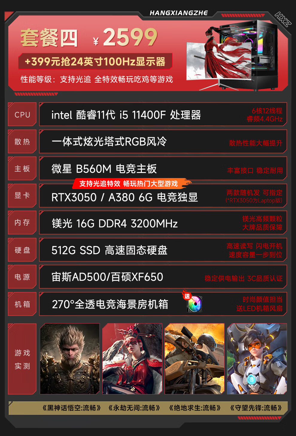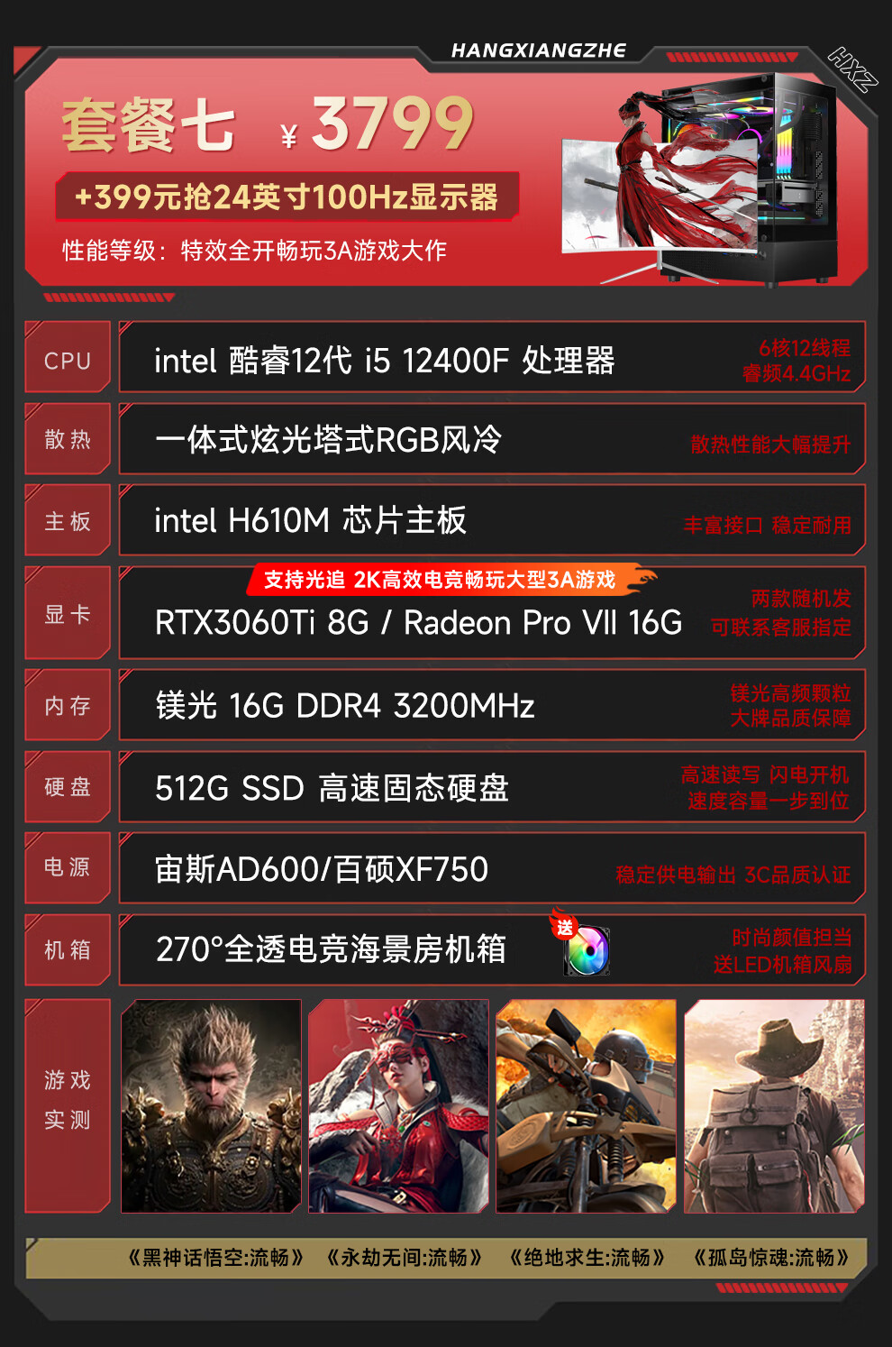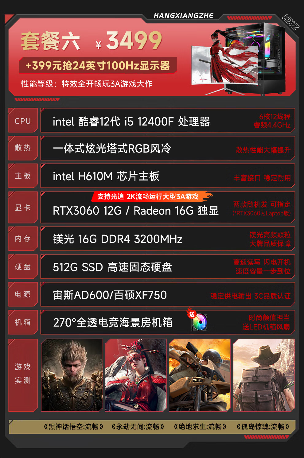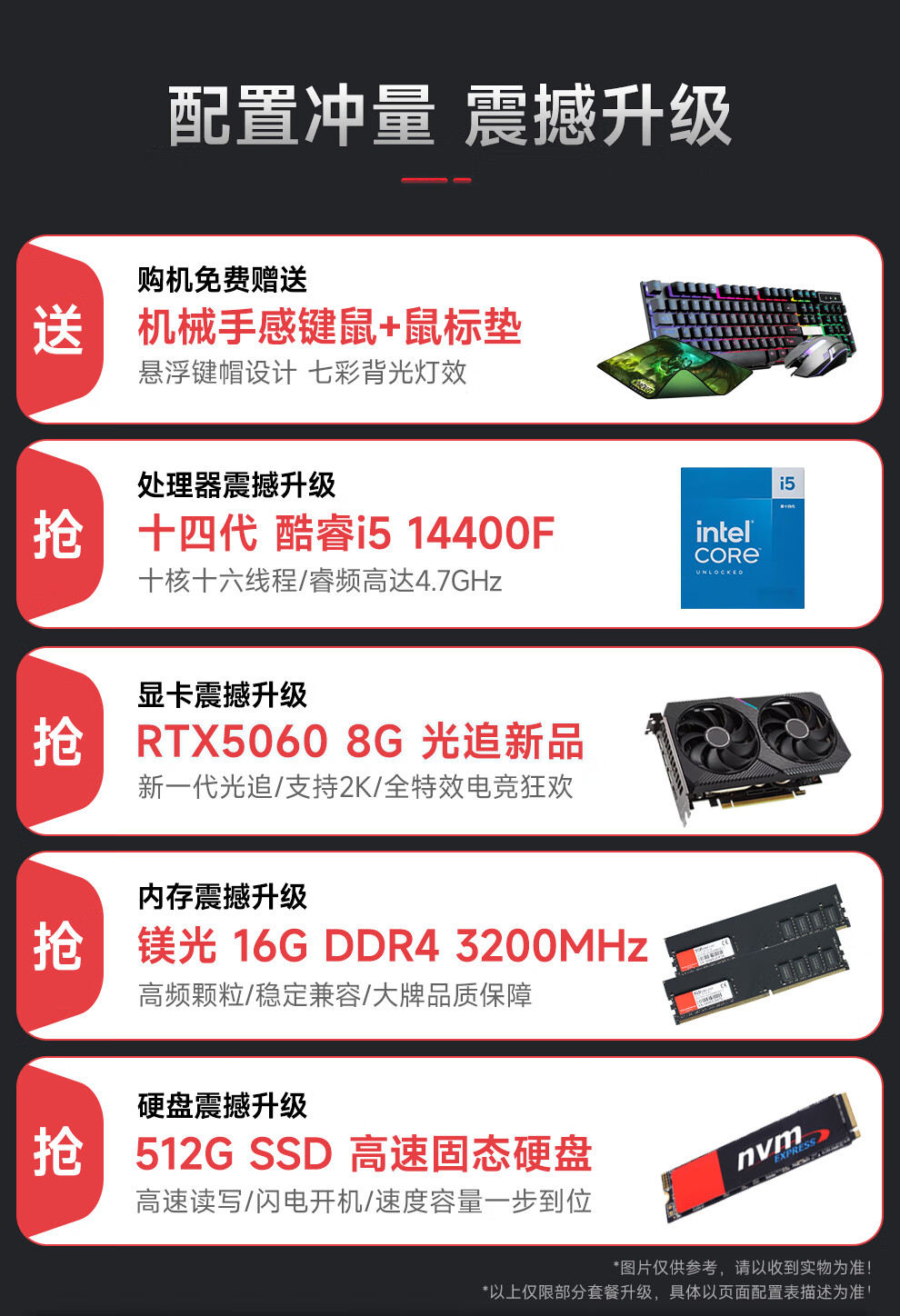 Navigator/Core i5 12400F/14400F/RTX5060/4060 gaming e-sports design desktop computer host DIY assembly computer complete machine installation complete set of chicken office set of five 12400F丨512G丨RTX3050
