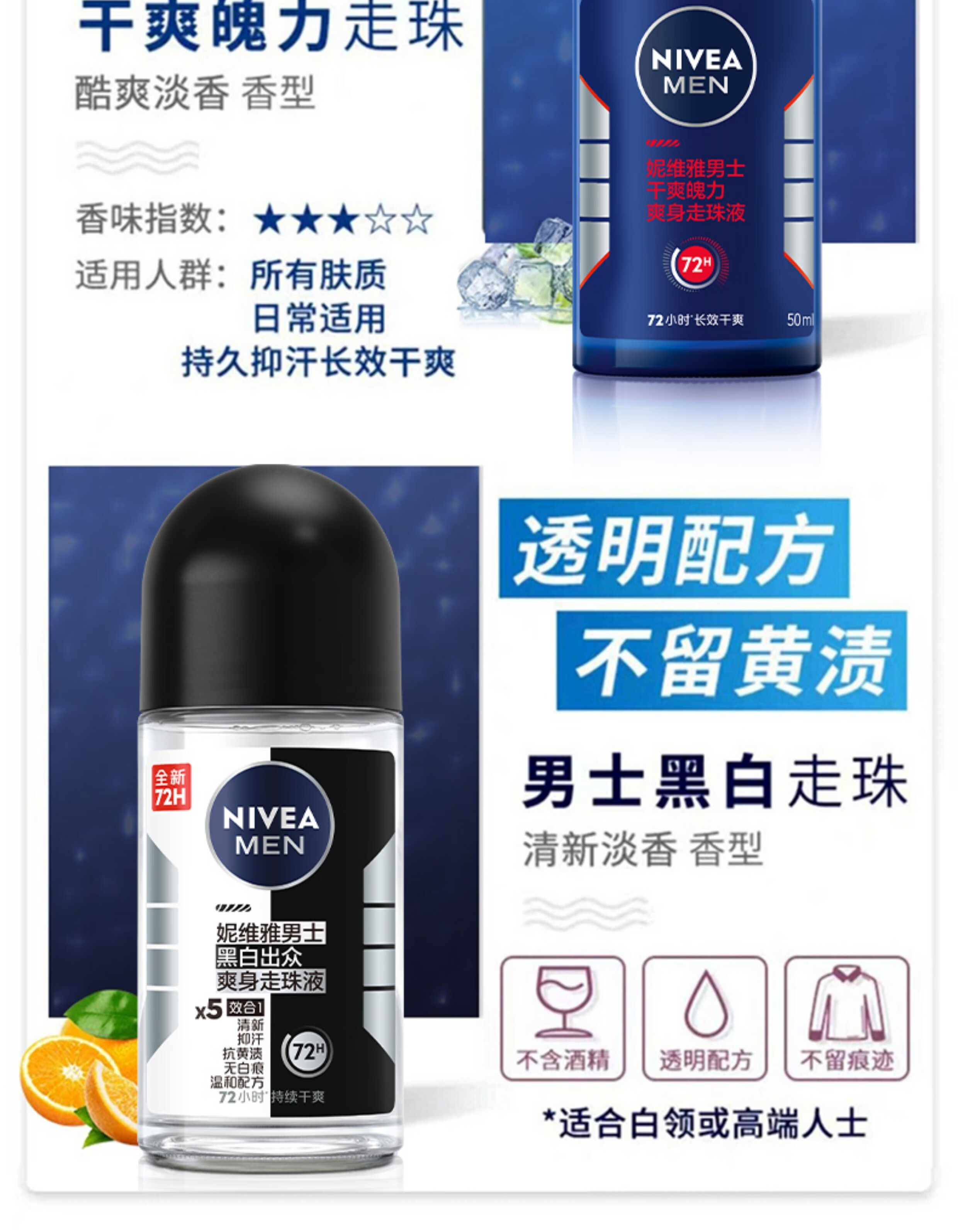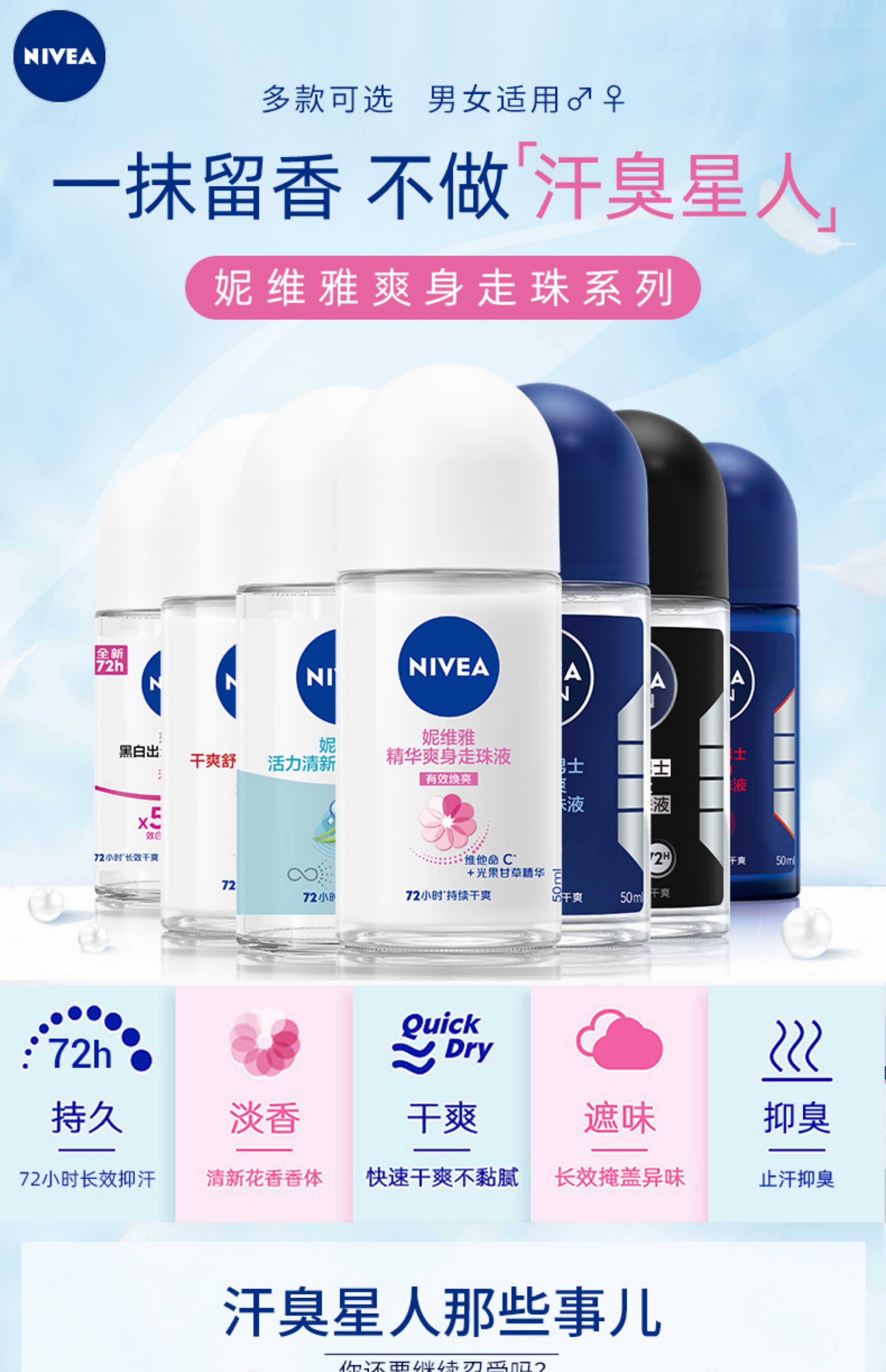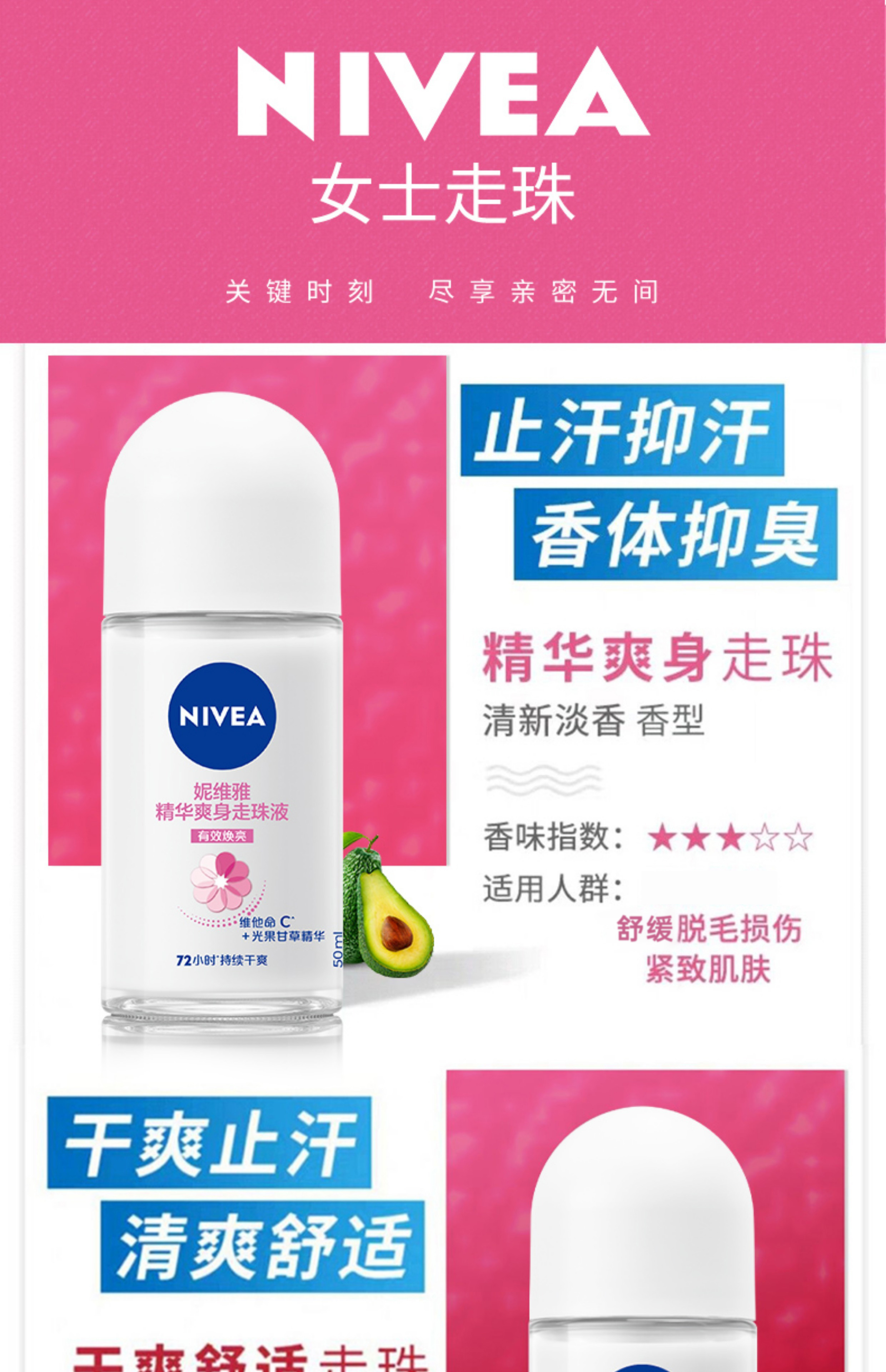 Nivea roll-on antiperspirant underarm odor antiperspirant men's roll-on deodorant can be used as perfume for women dry (women) refreshing lemon fragrance 50ml