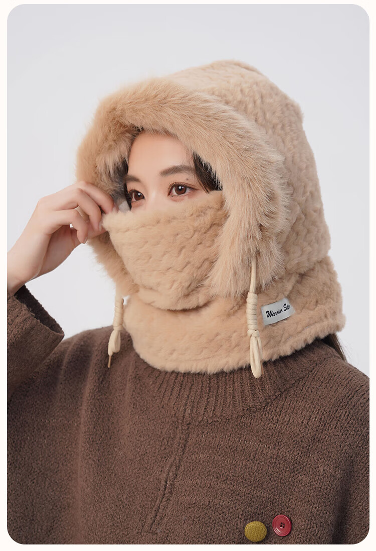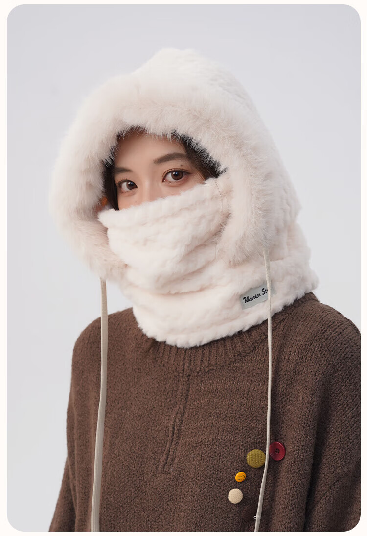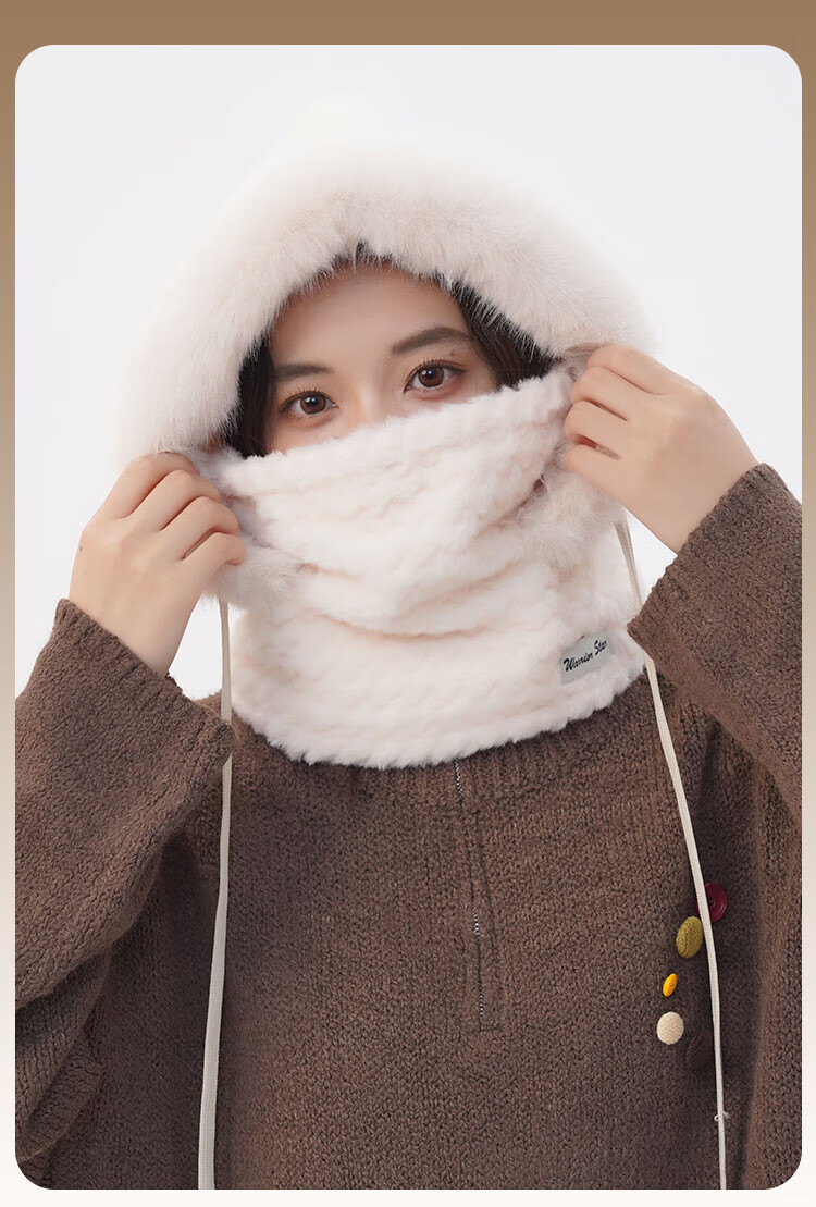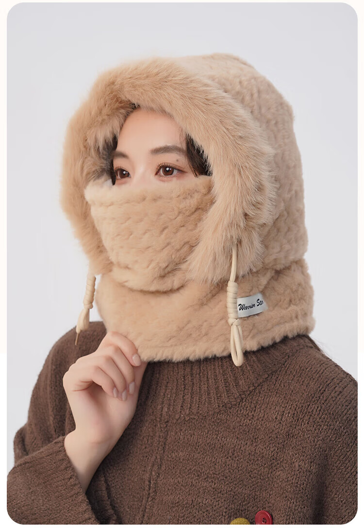 Pull back hat women's winter cold-proof and windproof hat plush ear protection windproof hat neck scarf one-piece headgear warm pullover hat