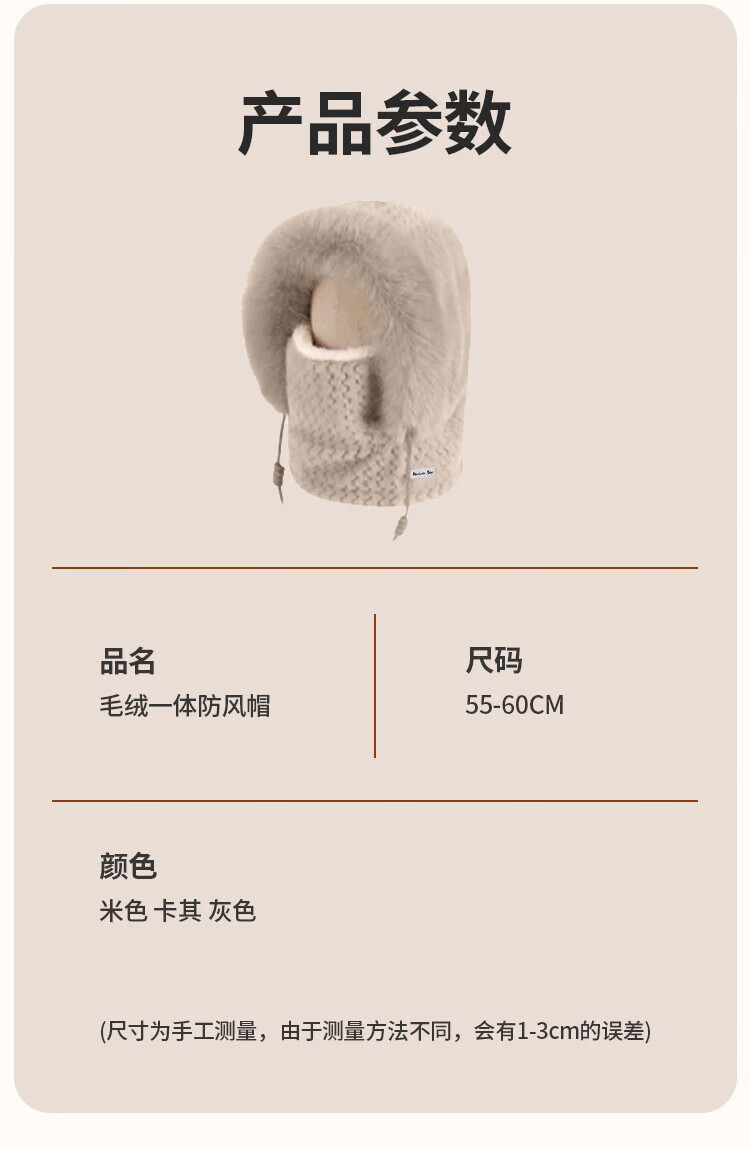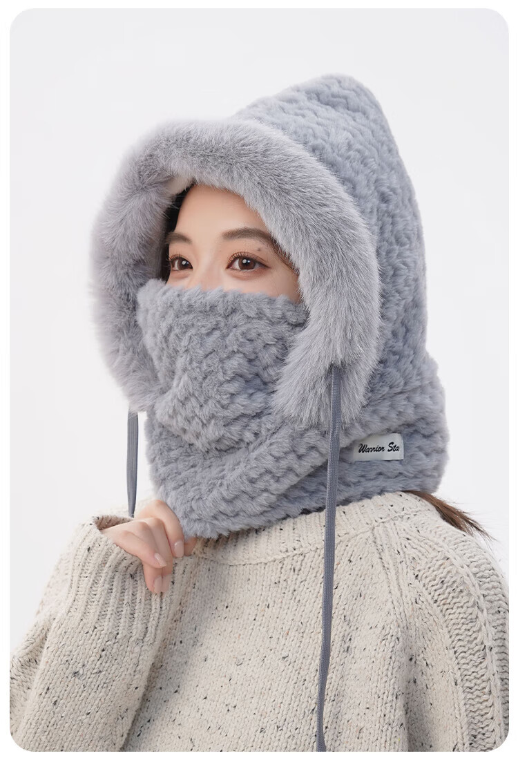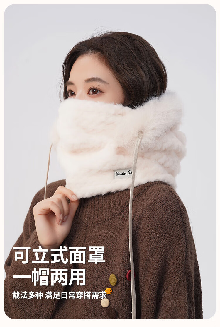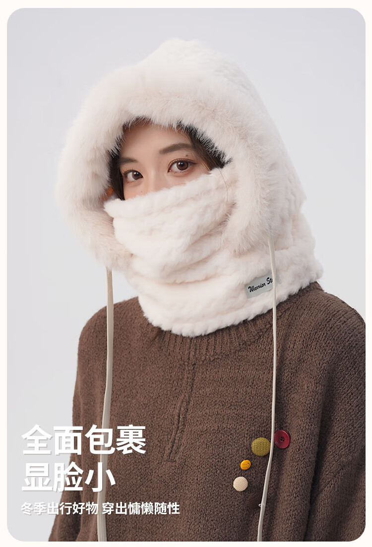Pull back hat women's winter cold-proof and windproof hat plush ear protection windproof hat neck scarf one-piece headgear warm pullover hat