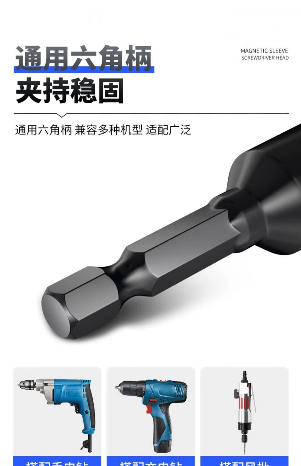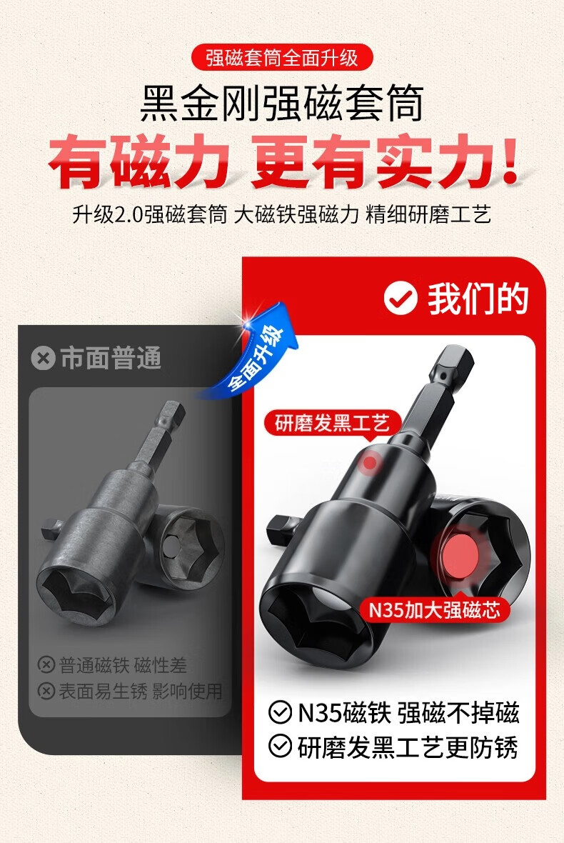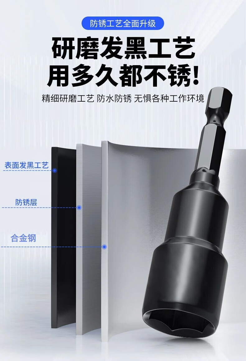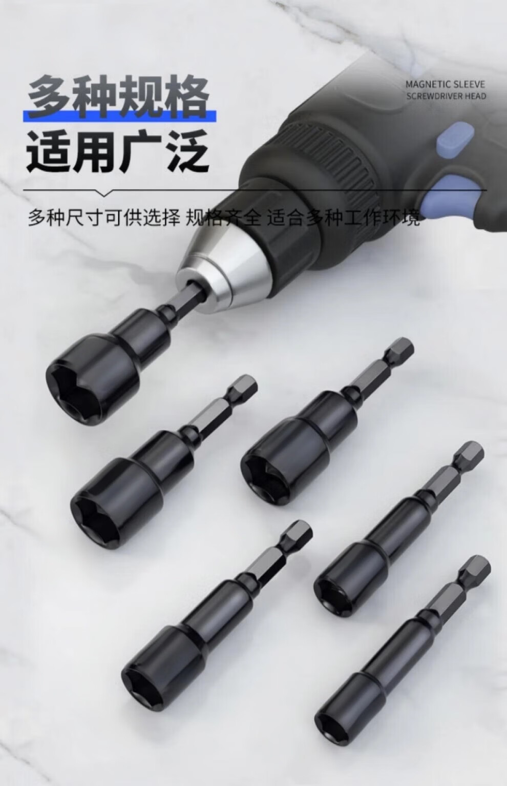 Honggong electric wrench socket head deepening socket bit head strong magnetic tapping hand electric drill hexagonal extended wind bit set 6 pieces