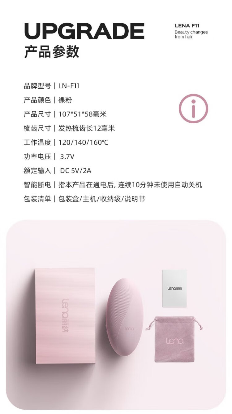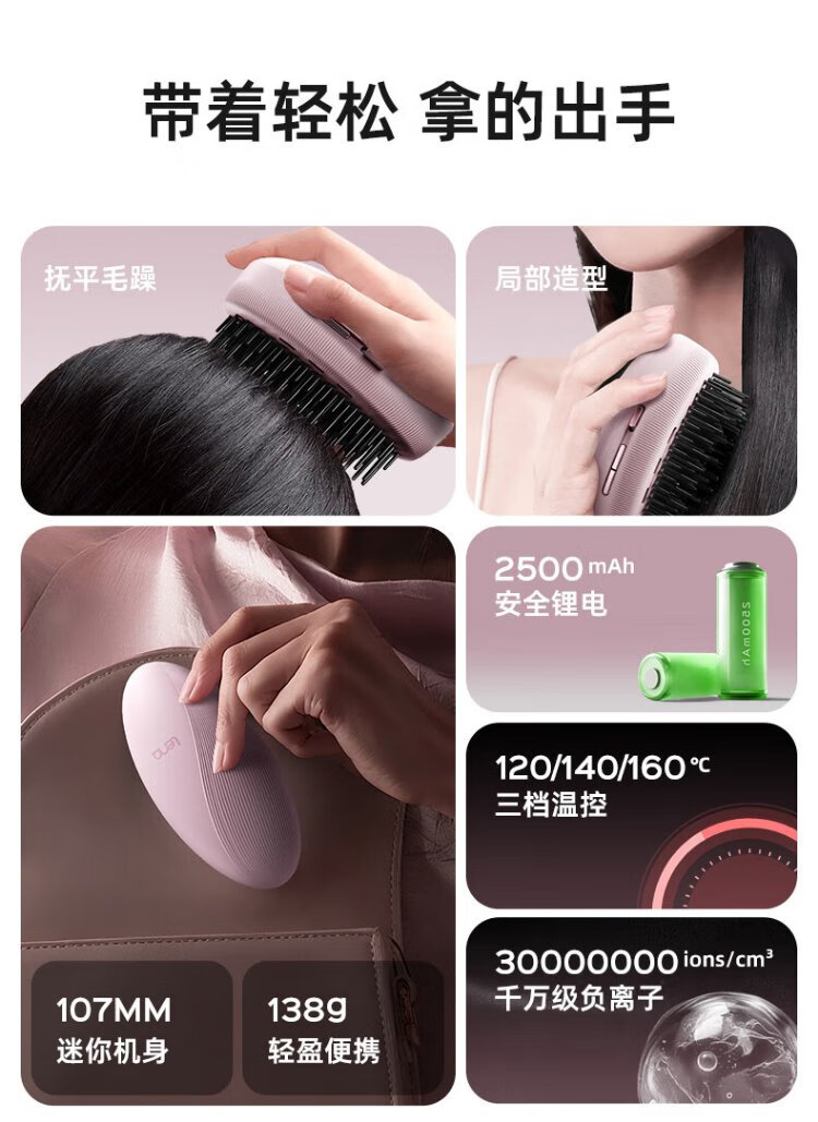 Lena wireless hair straightening comb, palm comb, mini portable fluffy comb, negative ions do not damage hair, bangs high skull artifact straightening inner buckle hair care comb, birthday gift LN-F11