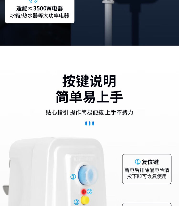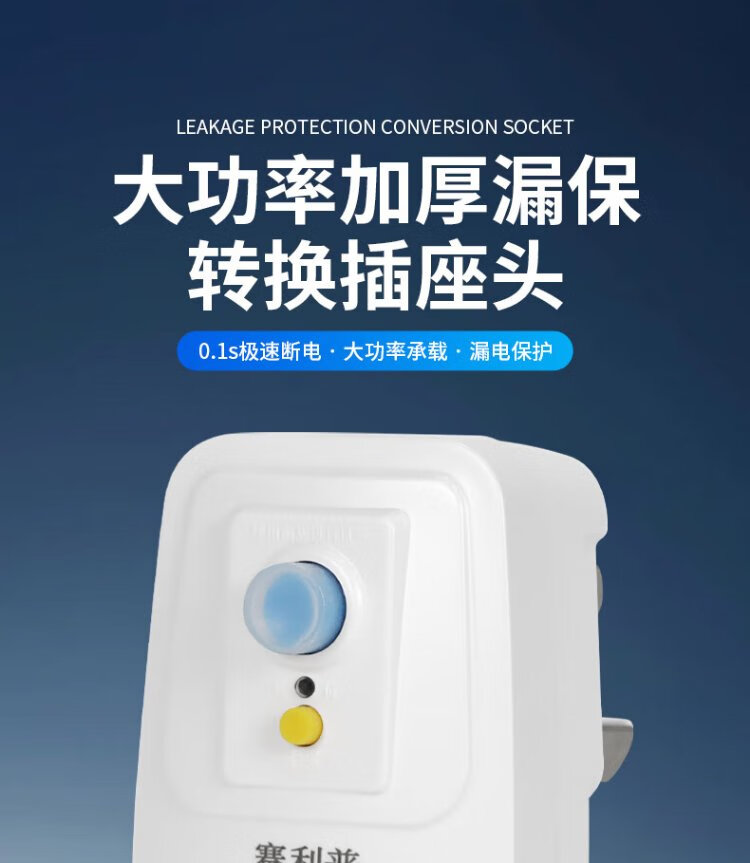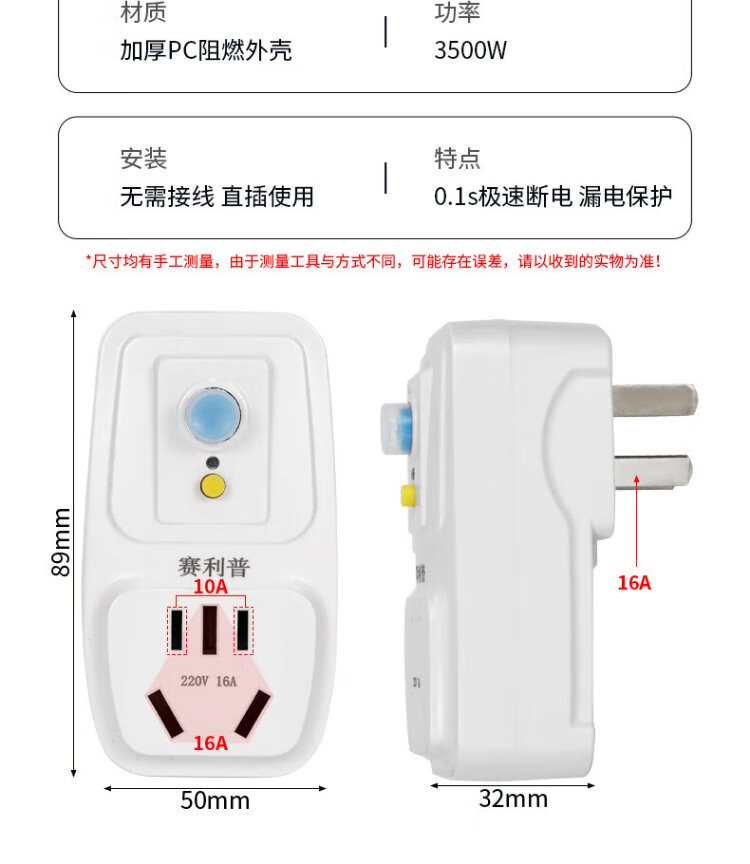 SAILiPU leakage protection plug, electric water heater anti-shock protector, conversion anti-leakage conversion socket thickened plug, 16A direct plug, power 3500W