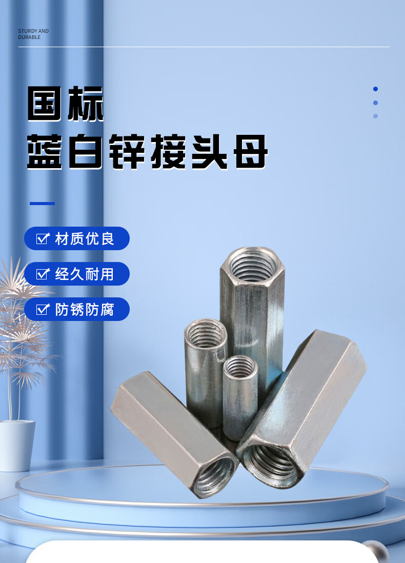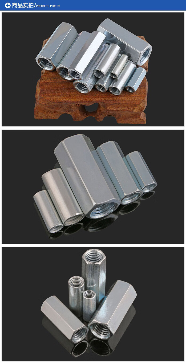 Steel products National standard blue and white zinc connector female extended hexagonal nut screw wire butt connection nut Jingcang M8*50 (price 25)