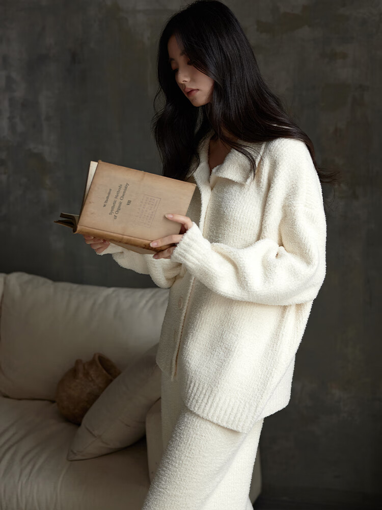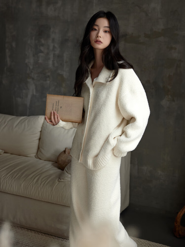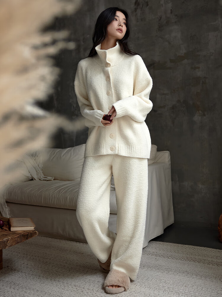 Ancient and modern (GUJIN) half-velvet stand-up collar wind-resistant pajamas women's home clothes autumn and winter sweater pajamas large size can be worn outside coral velvet suit