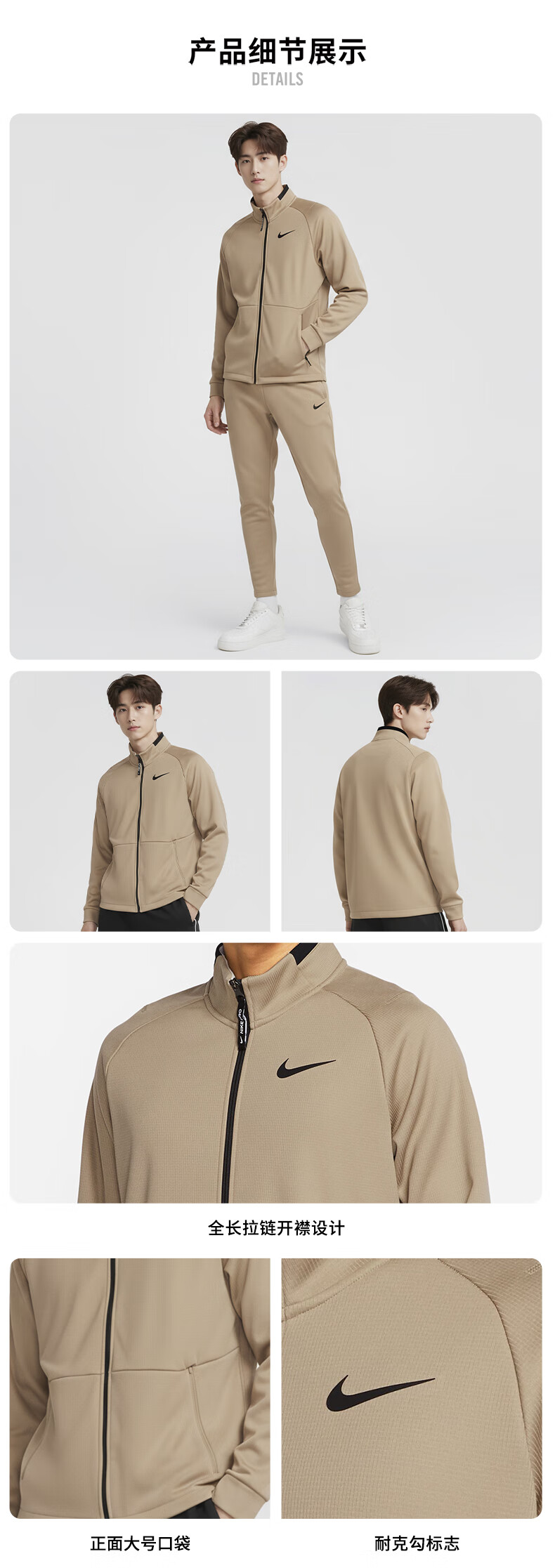 Nike NIKE Men's Stand Collar Jacket Sports Training Knitted Jacket DM5941-247 Khaki L