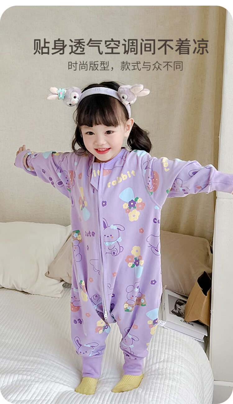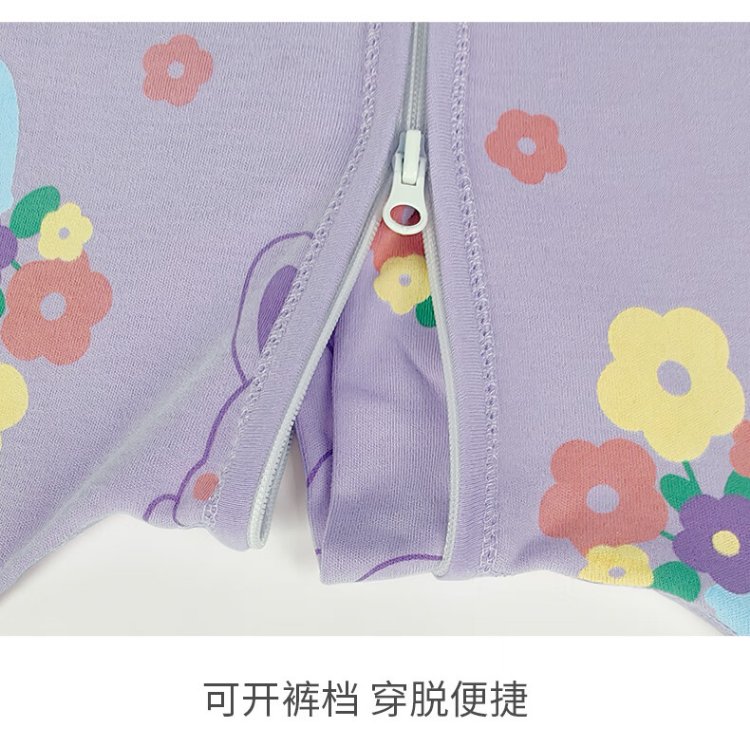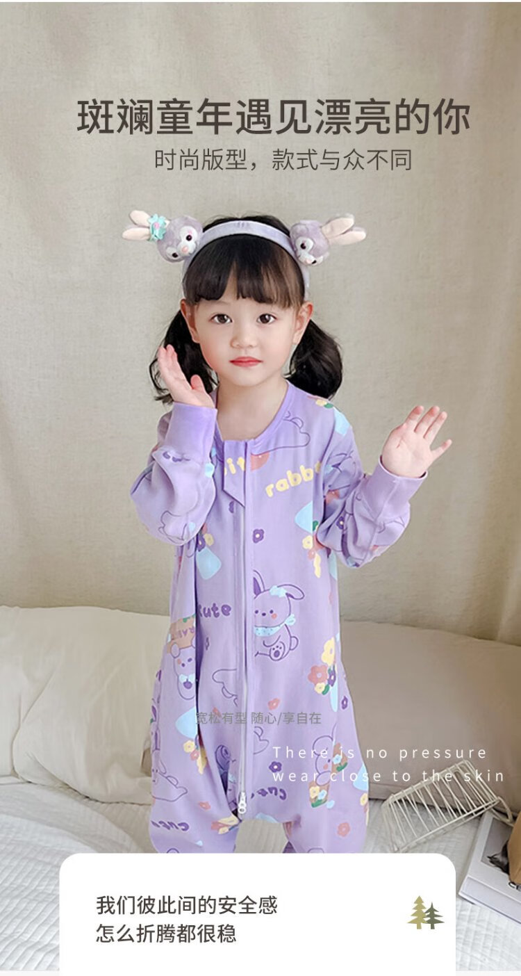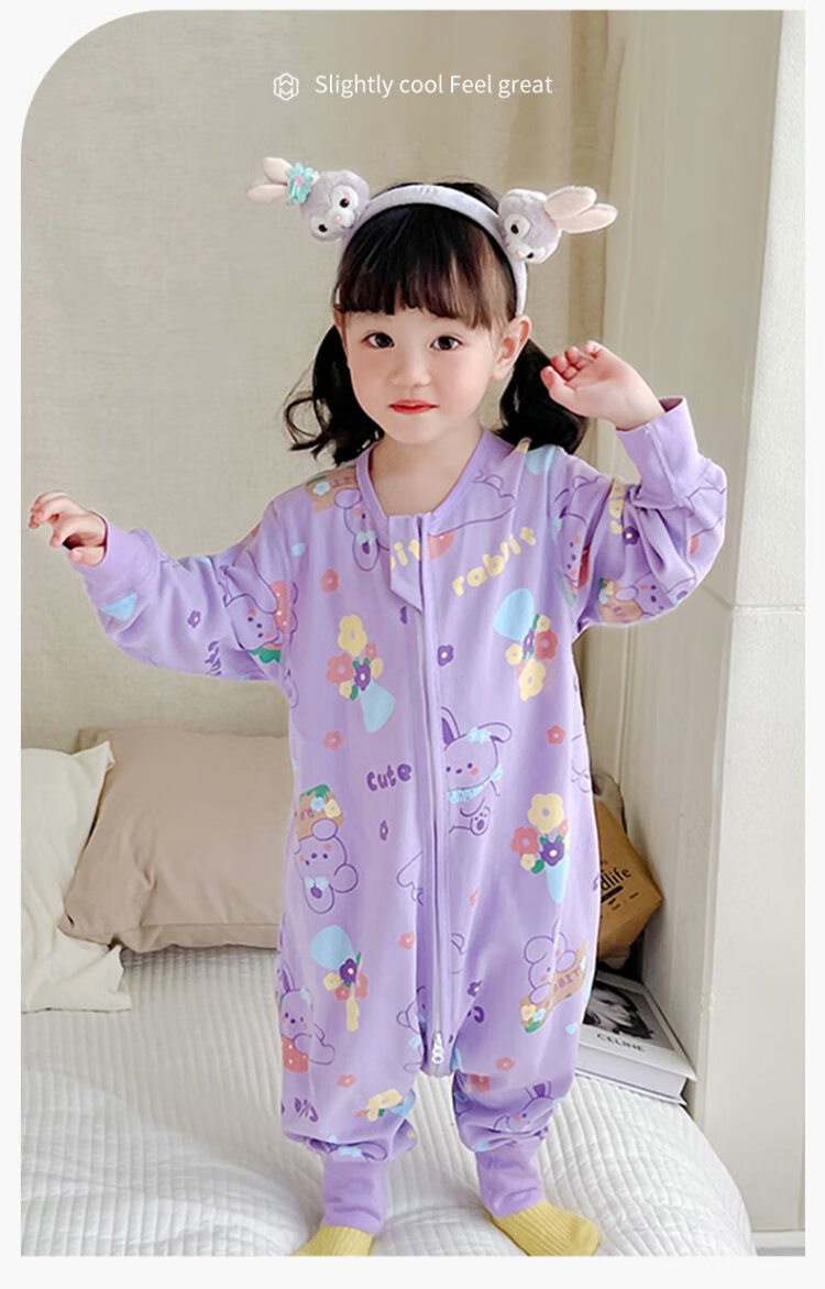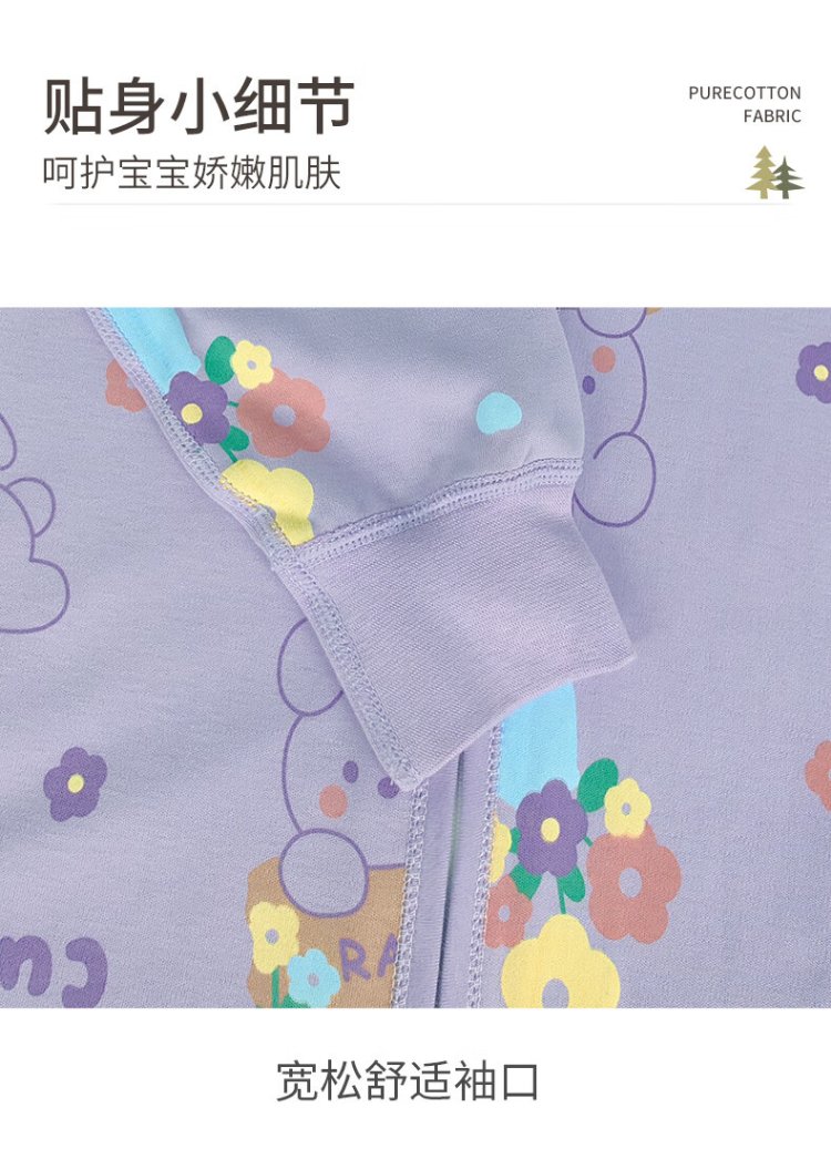 Purple flower language 100% cotton children's one-piece pajamas spring and autumn baby boys and girls anti-kicking sleeping bag purple 130
