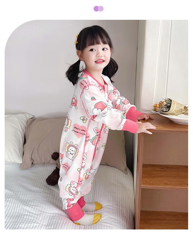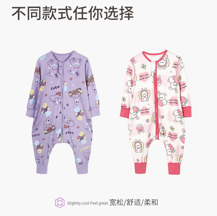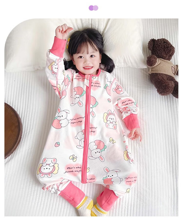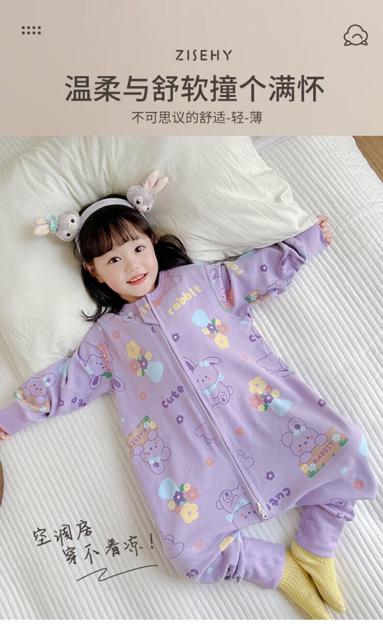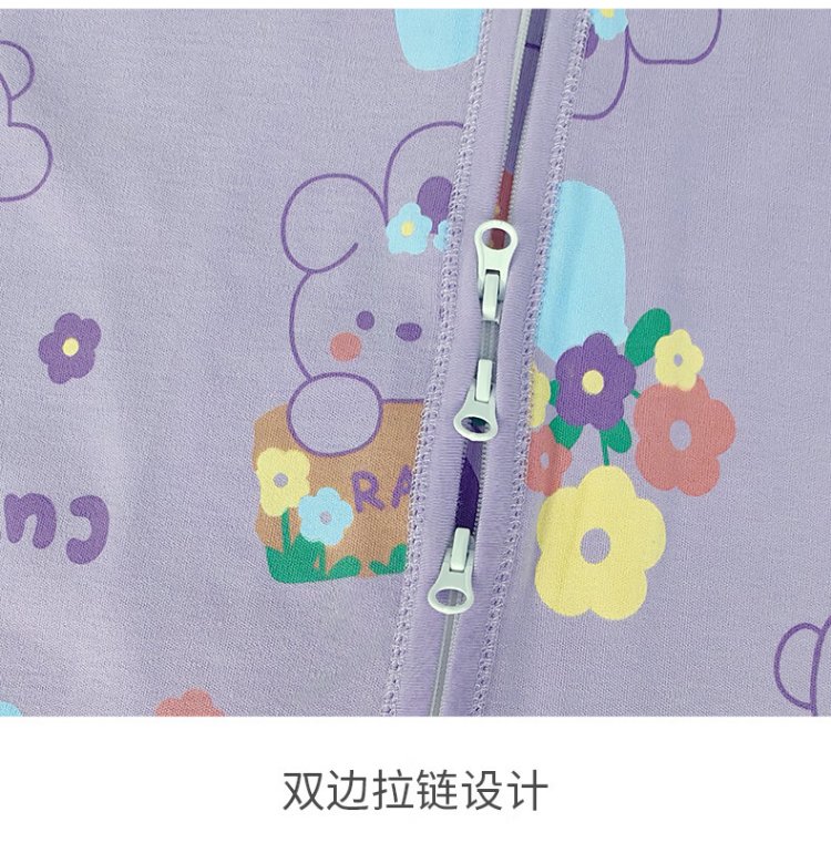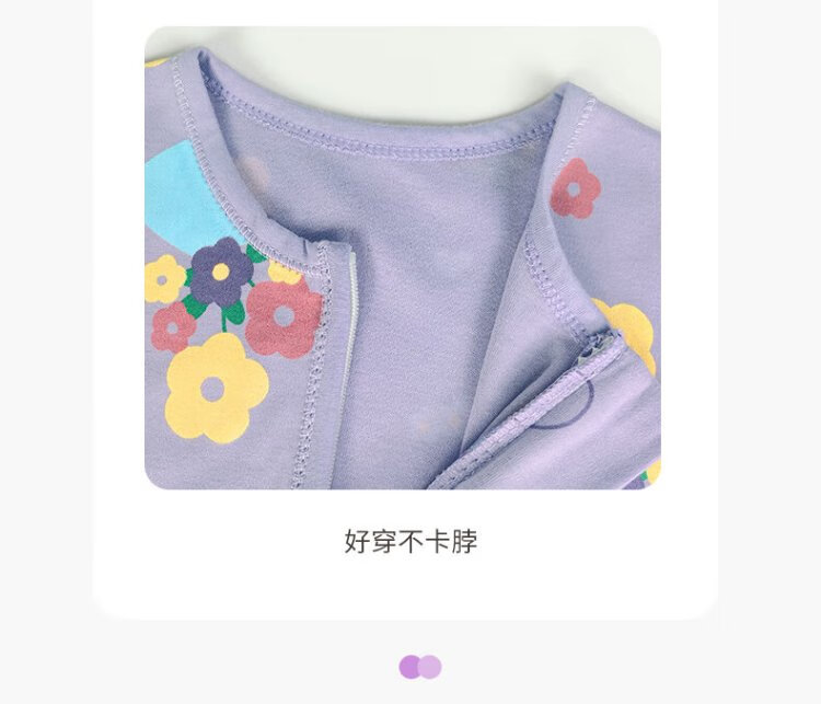 Purple flower language 100% cotton children's one-piece pajamas spring and autumn baby boys and girls anti-kicking sleeping bag purple 130
