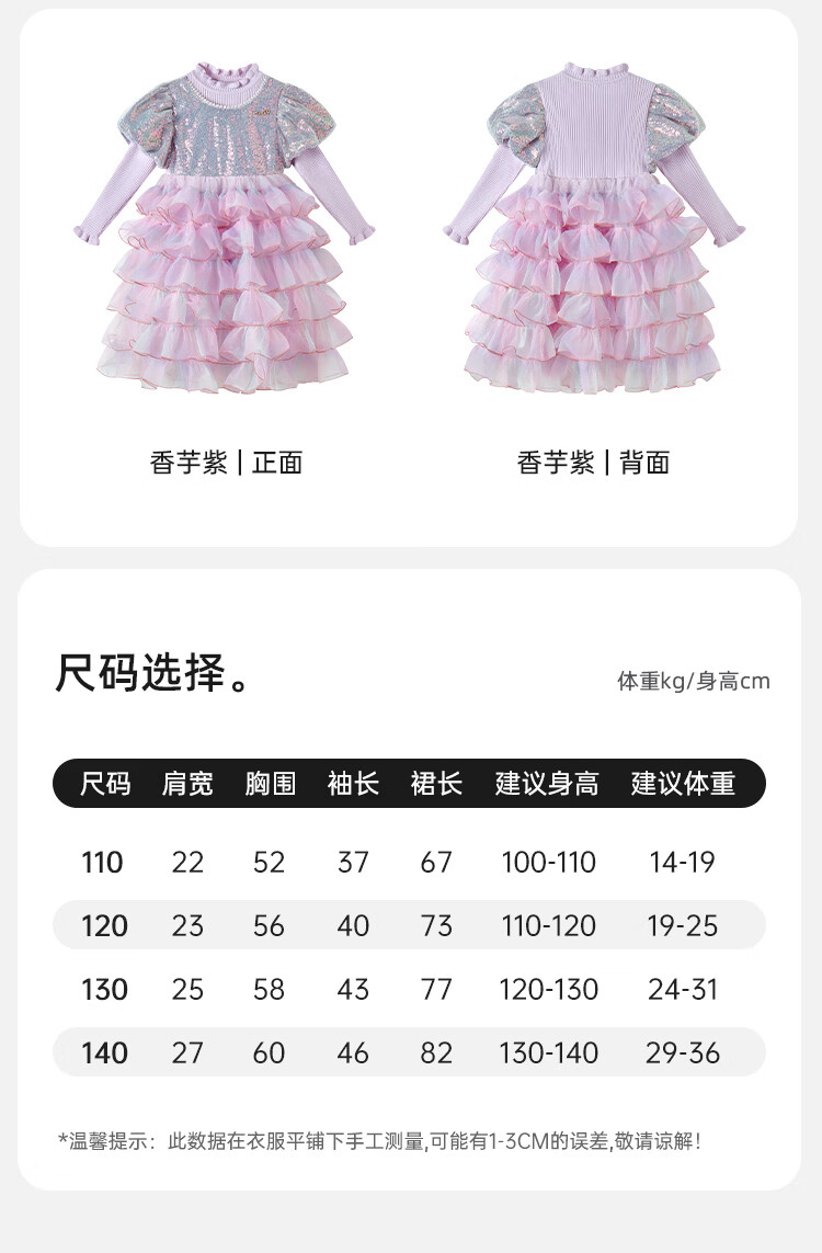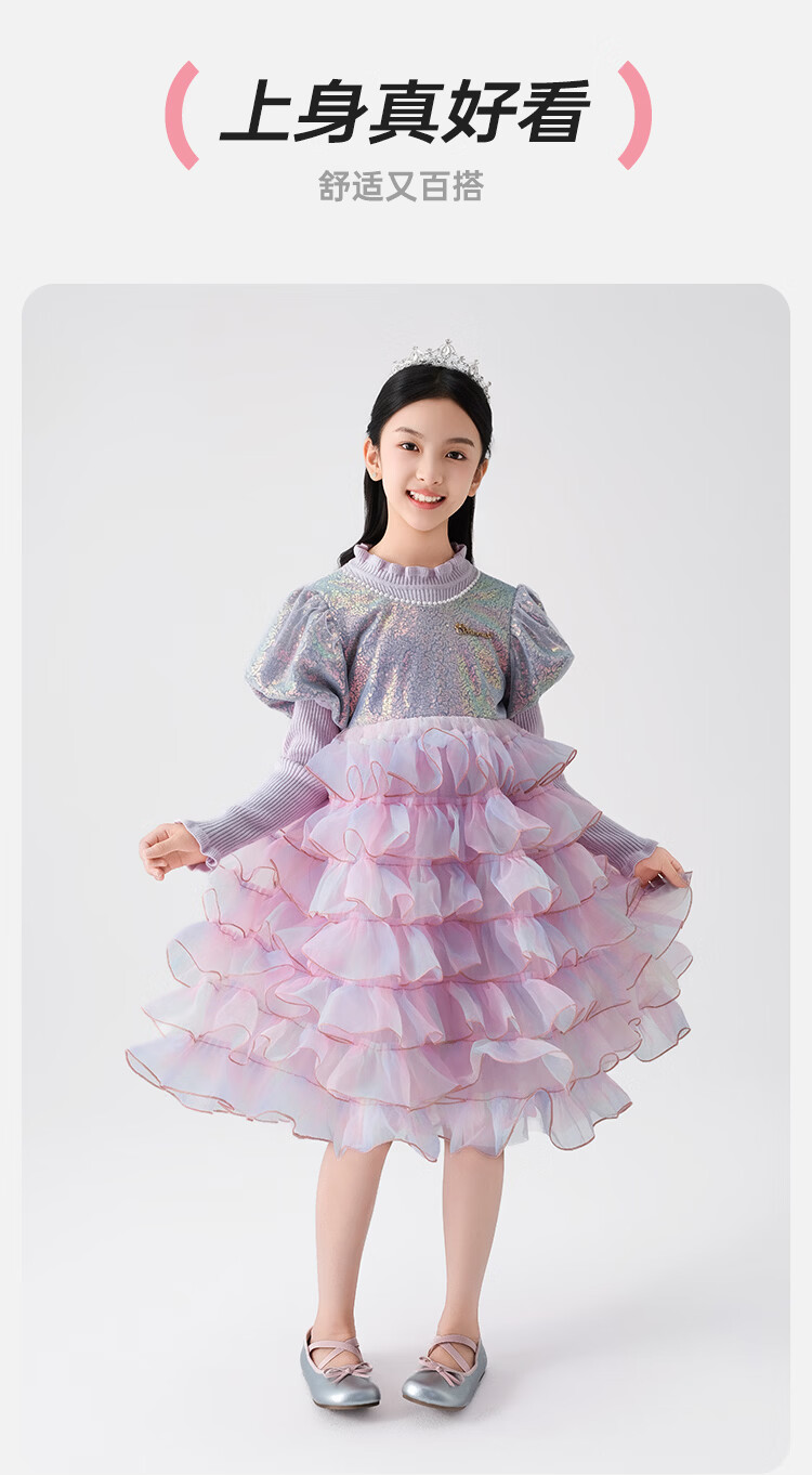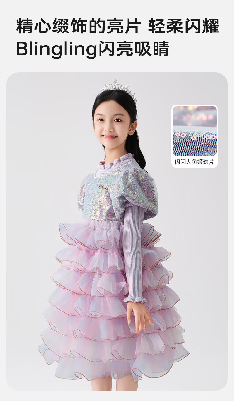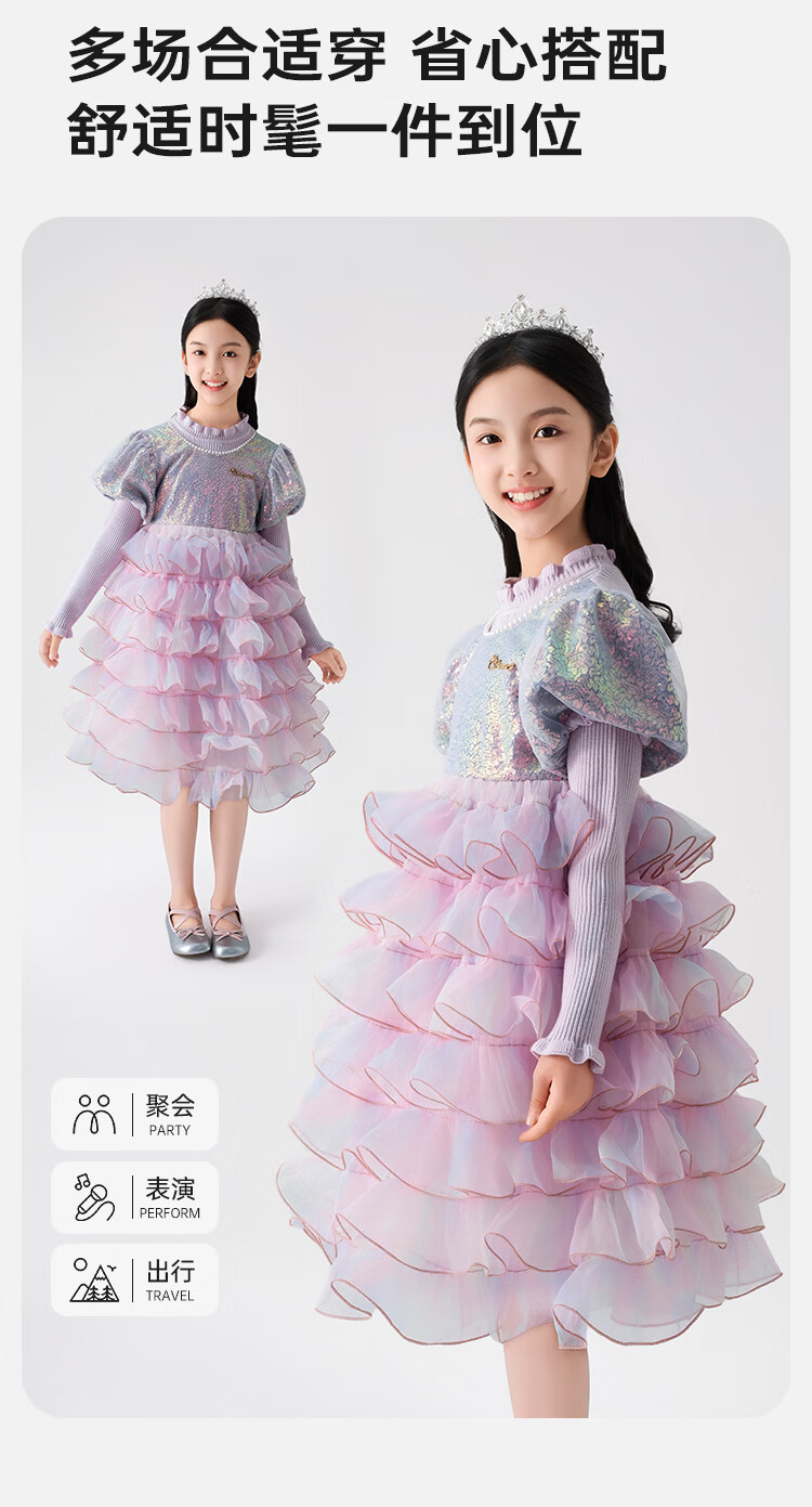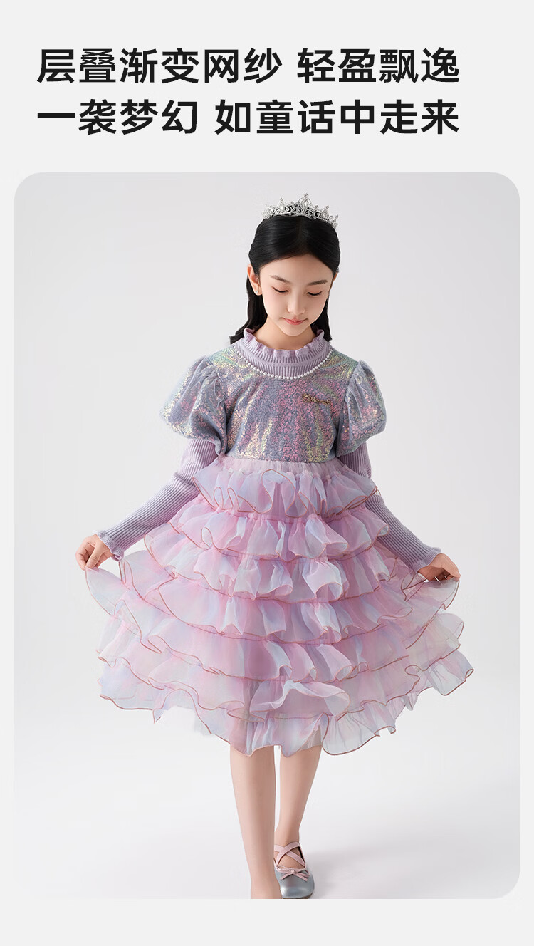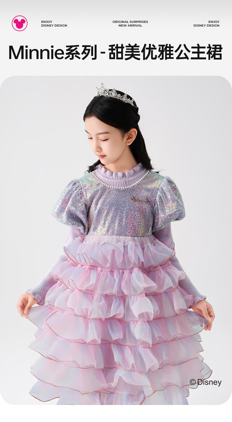 Disney (Disney) children's clothing girls skirt high-end princess skirt autumn and winter cake skirt spliced ​​fairy skirt TD3EQ003