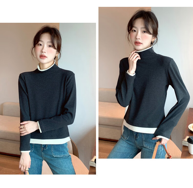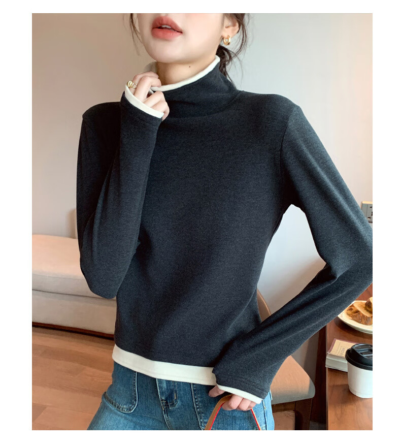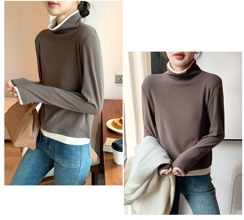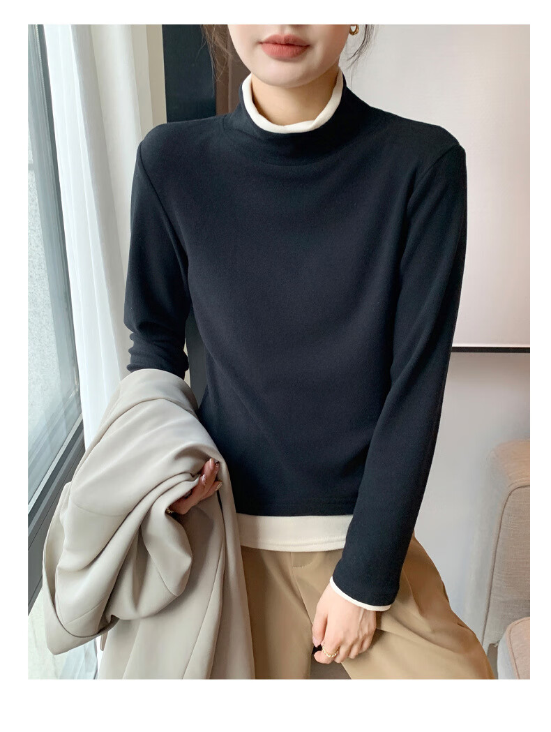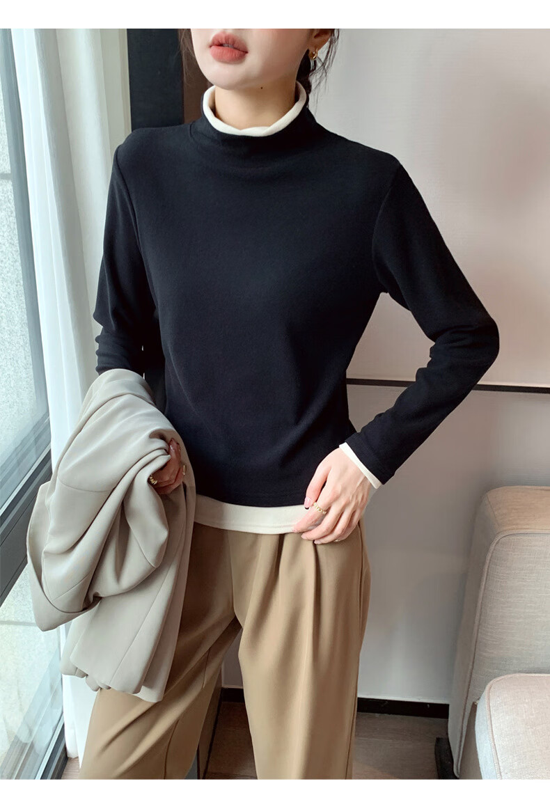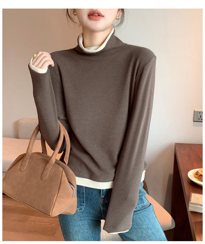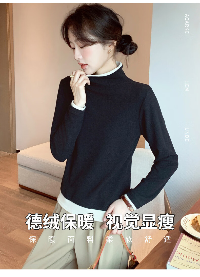 Langsha fake two-piece bottoming shirt for women in winter 2025 new German velvet warm and slim fit inner high-neck long-sleeved top