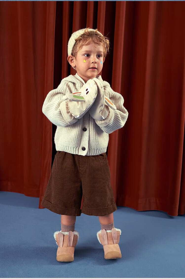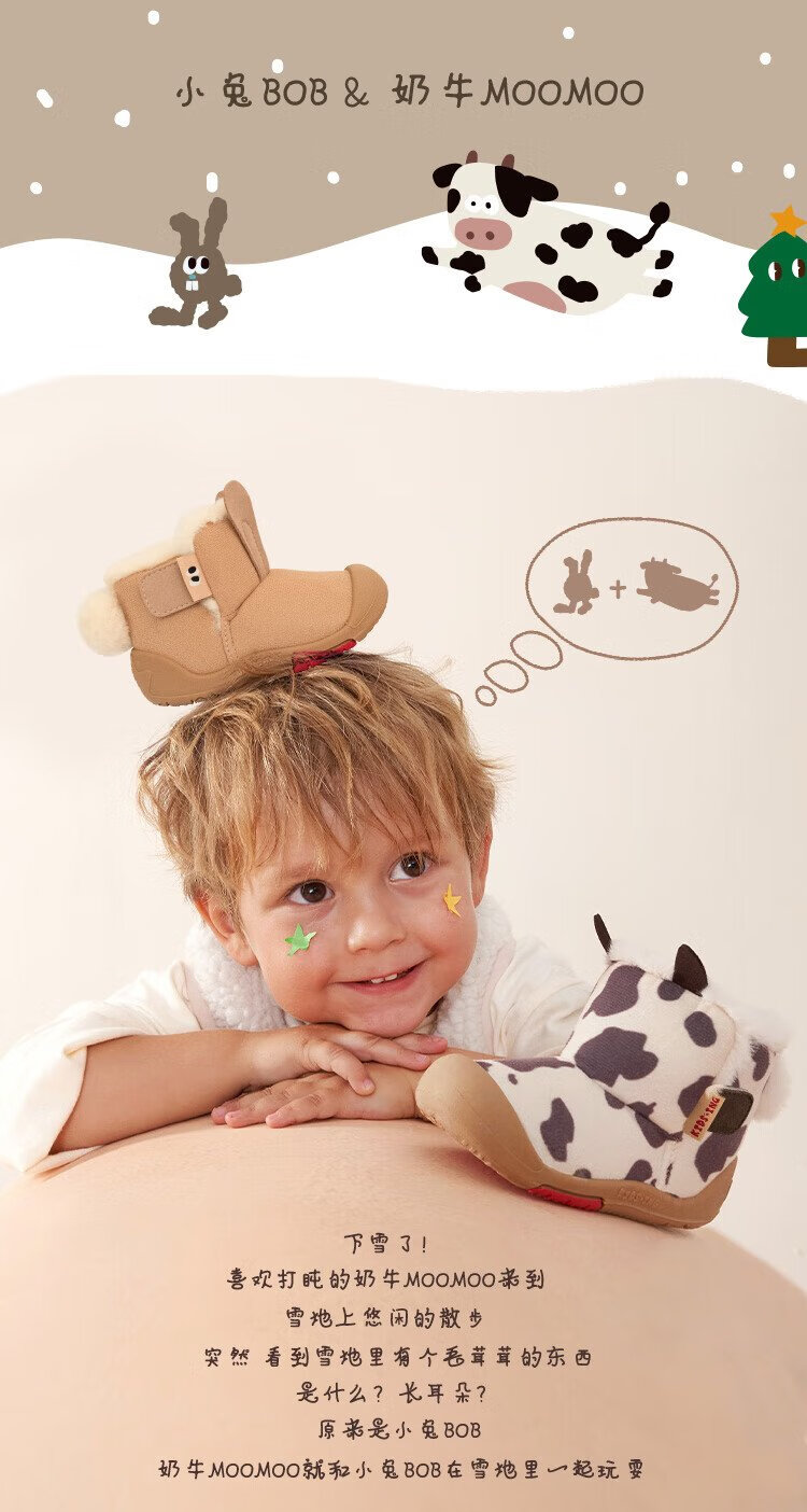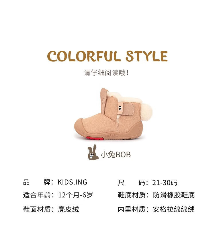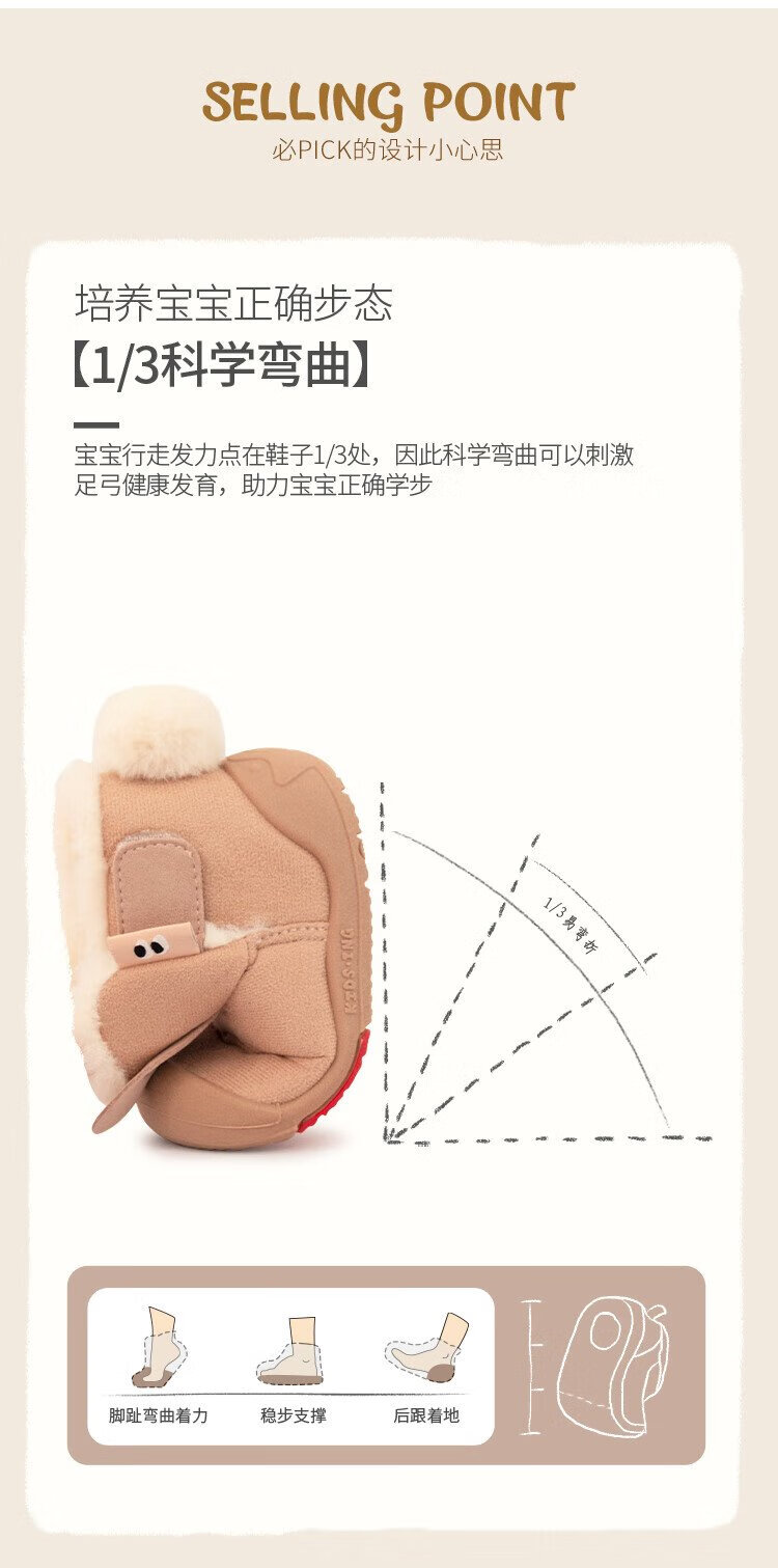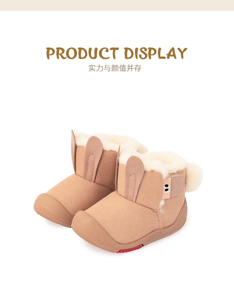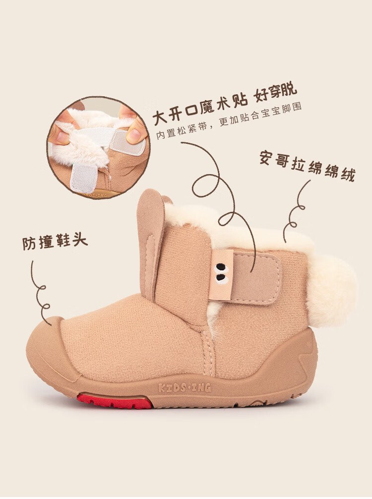 Kids.ing Kedi Star Baby Cotton Shoes Winter Boys and Girls Thickened Toddler Shoes Kindergarten Cotton Boots Khaki 24