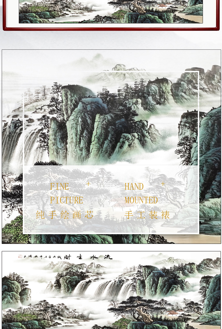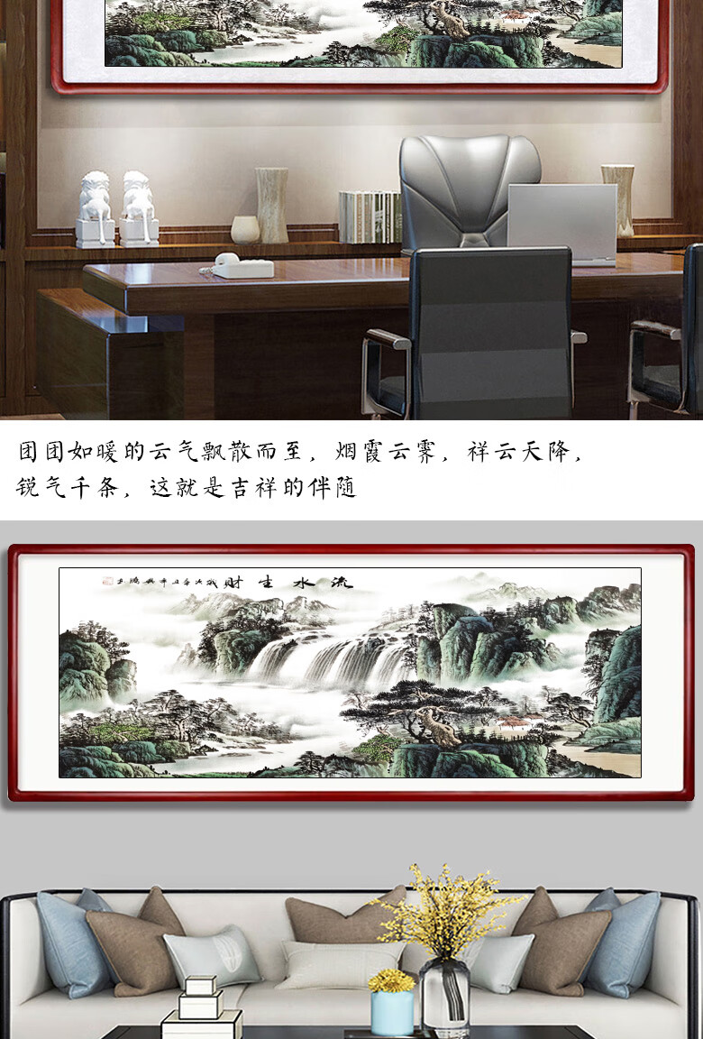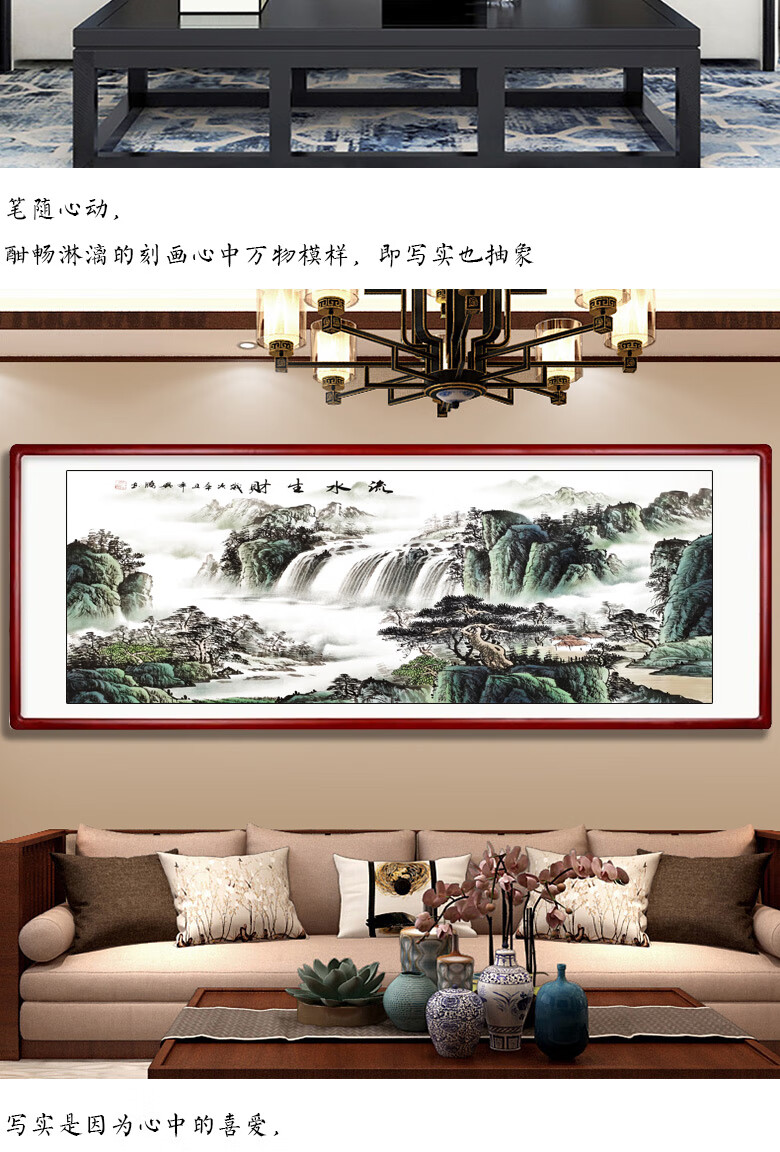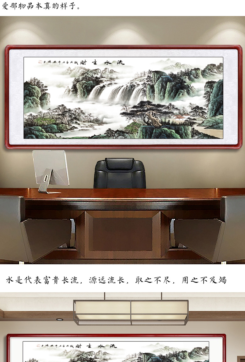 Sheng Zhen's flowing water brings wealth, landscape painting, traditional Chinese painting, hand-painted authentic office hanging painting, living room decoration painting, ink Chinese style, making money, flowing water makes money, Xiaoba 277*122cm (solid wood frame + organic film)