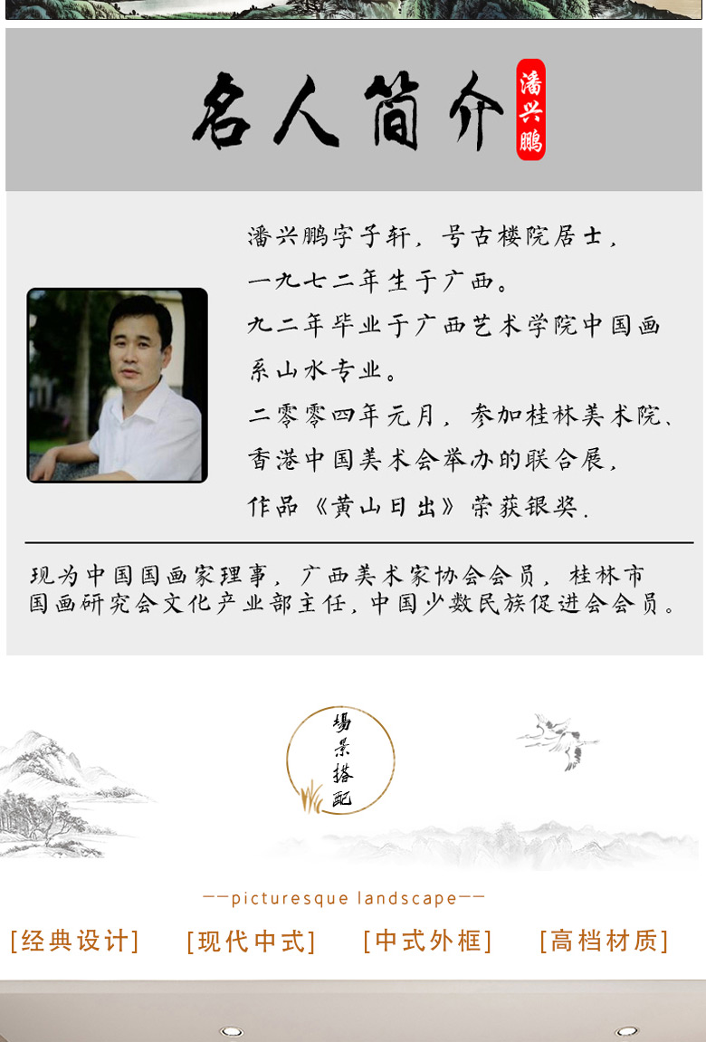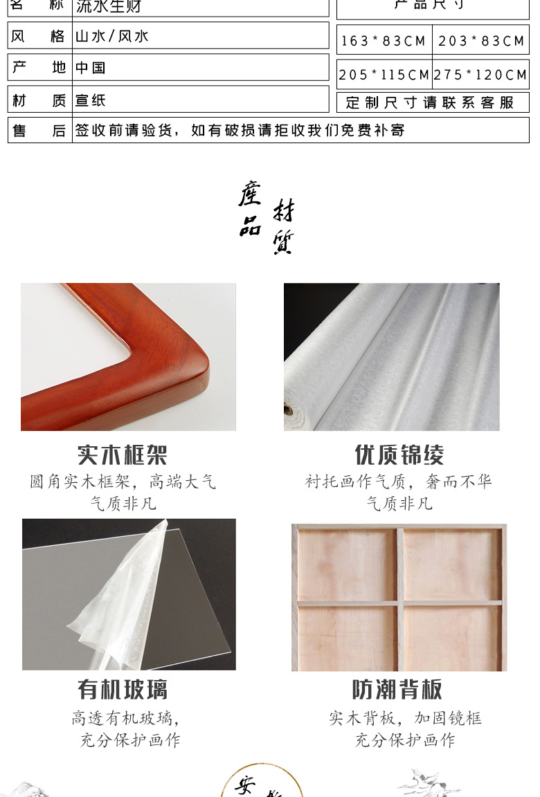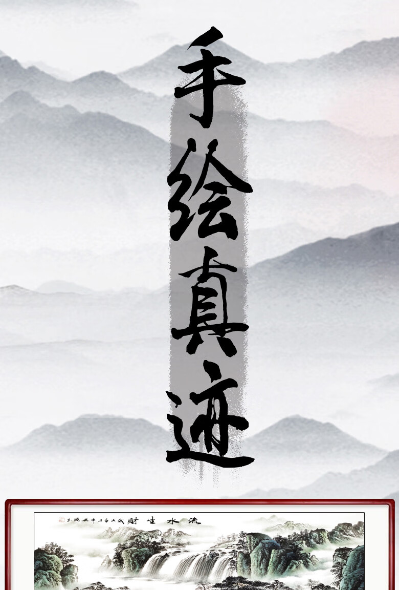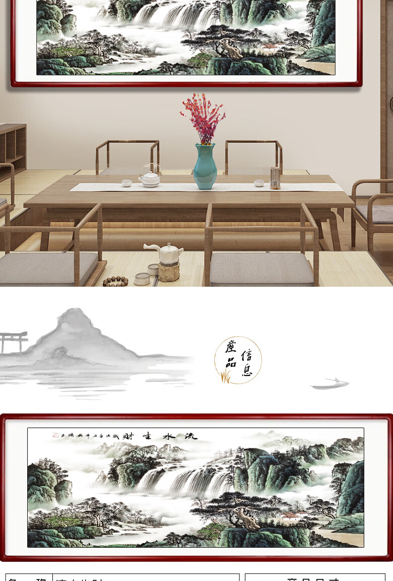Sheng Zhen's flowing water brings wealth, landscape painting, traditional Chinese painting, hand-painted authentic office hanging painting, living room decoration painting, ink Chinese style, making money, flowing water makes money, Xiaoba 277*122cm (solid wood frame + organic film)