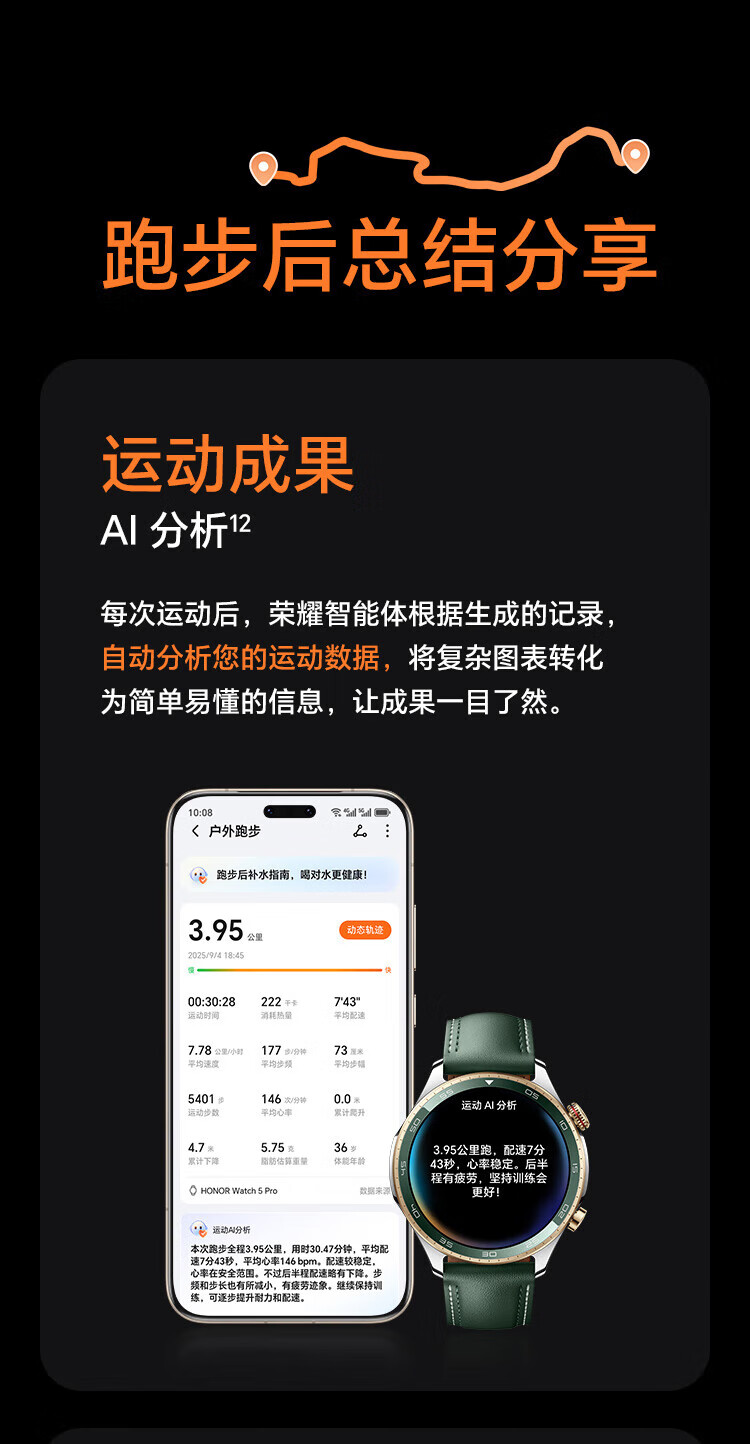 HONOR Watch 5Pro National Subsidy 15% 46mm Black Smart Sports Watch Non-sensory Blood Pressure Heart Health Monitoring Professional Running Men and Women