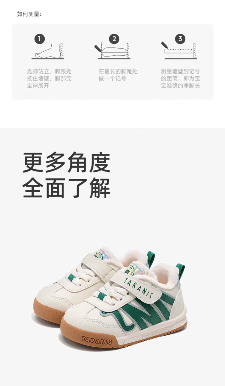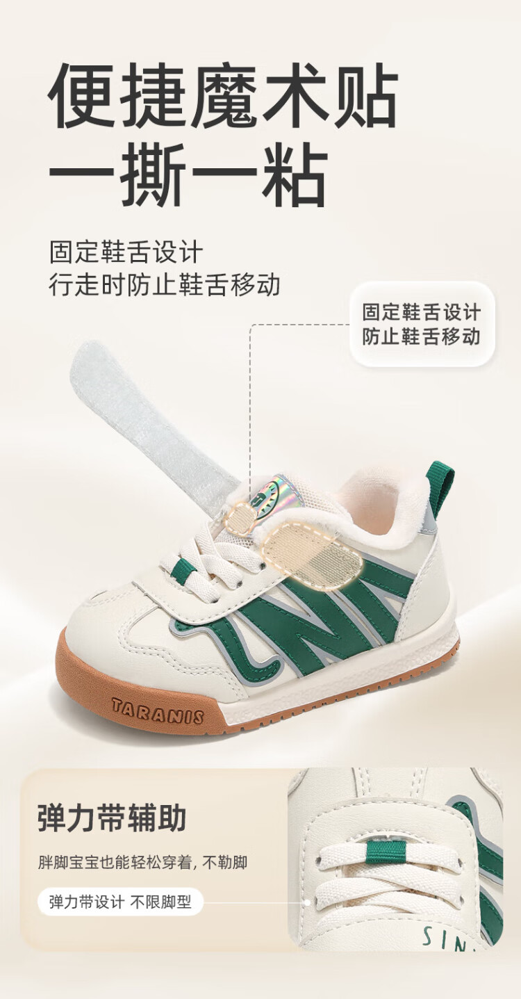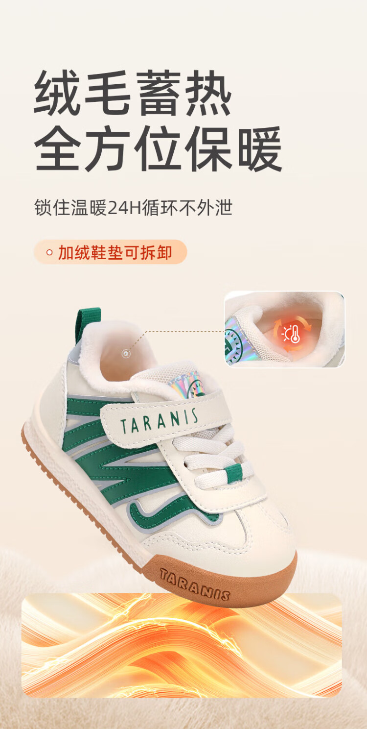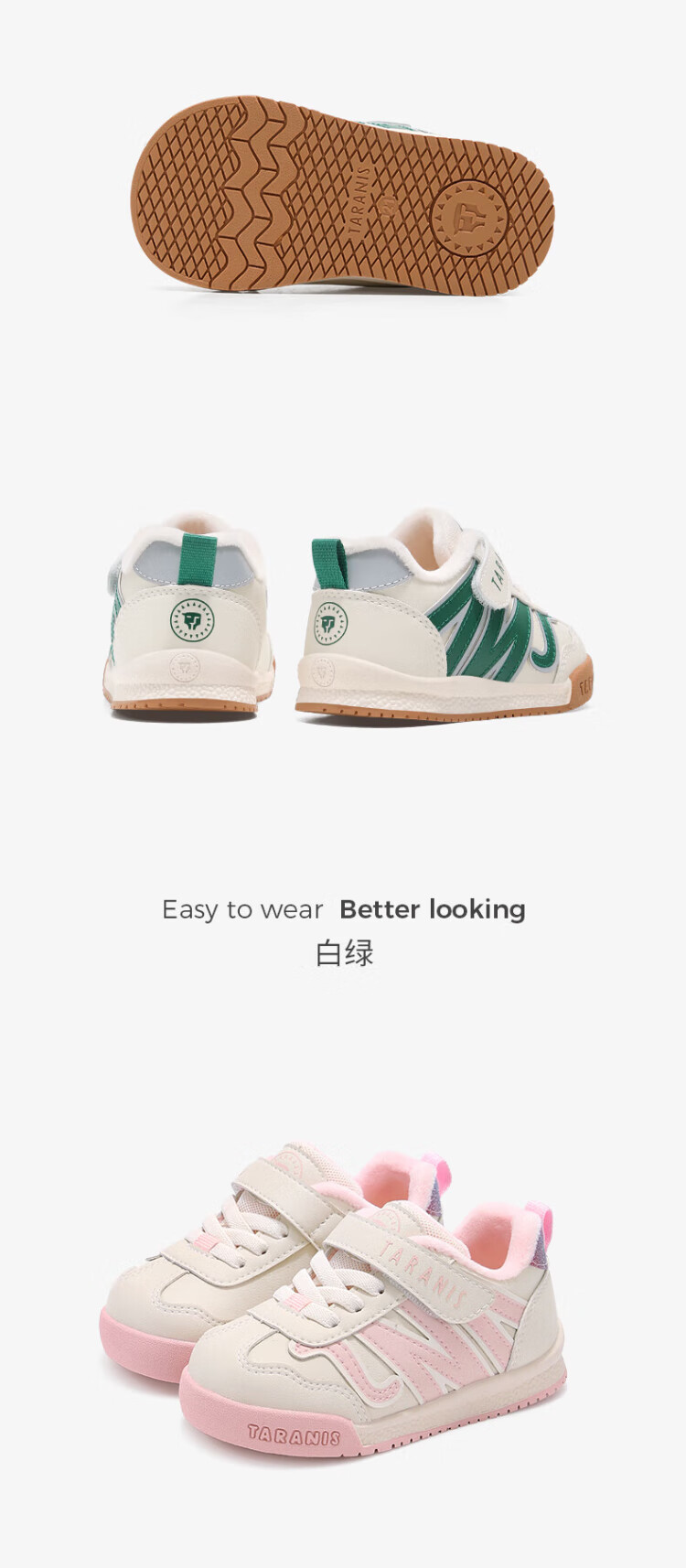 Terranis toddler shoes children's shoes winter baby bread shoes cotton shoes plus velvet warm baby shoes girls functional shoes white/green 24