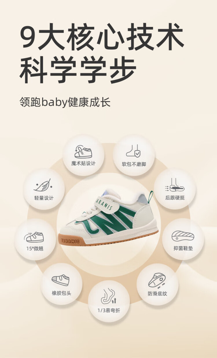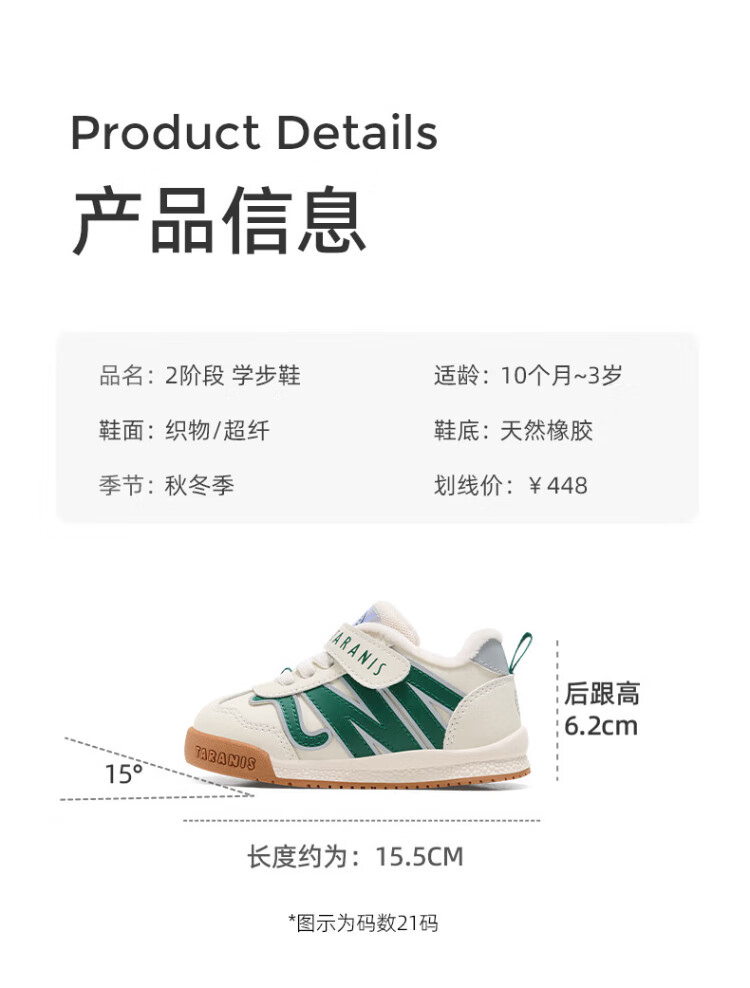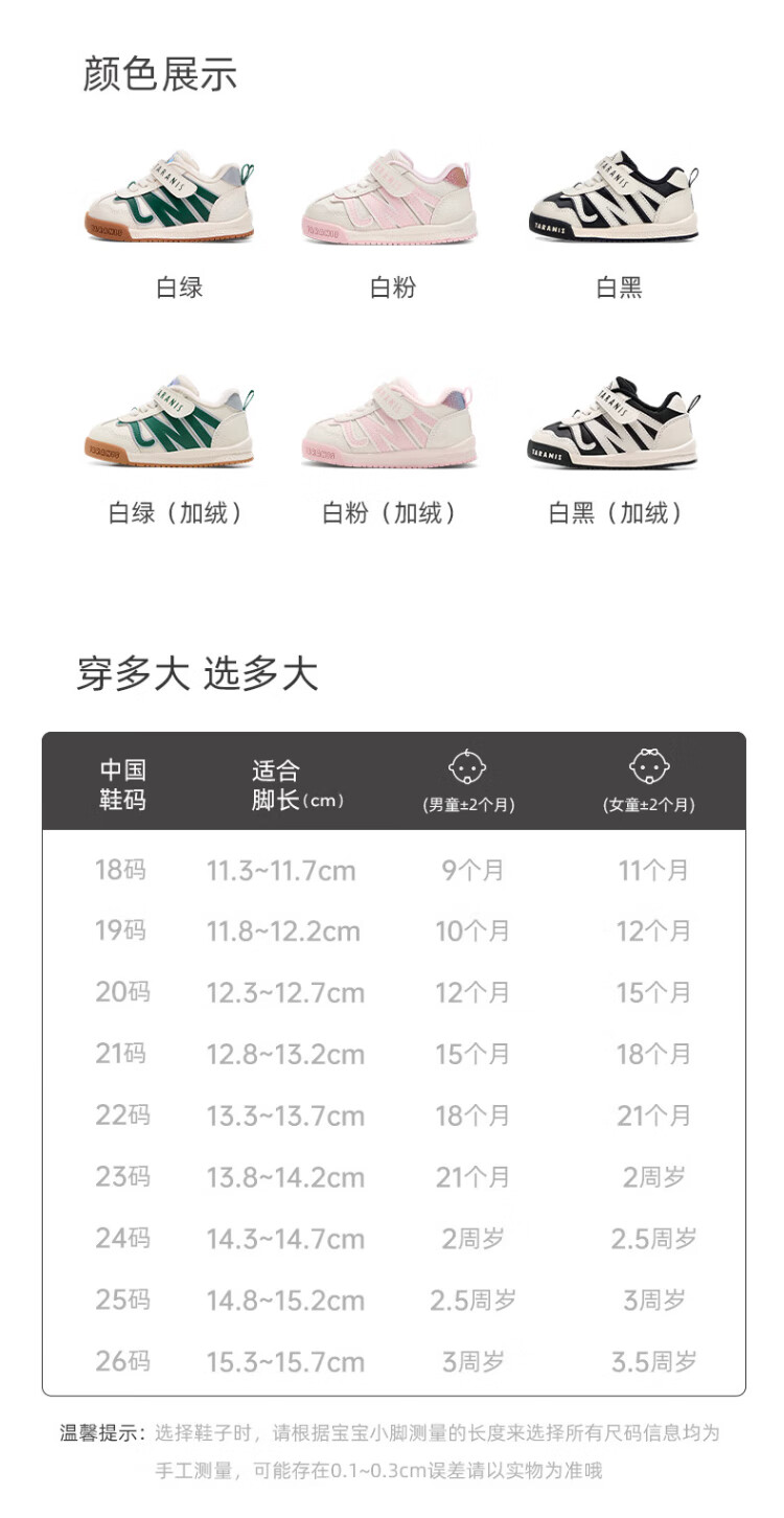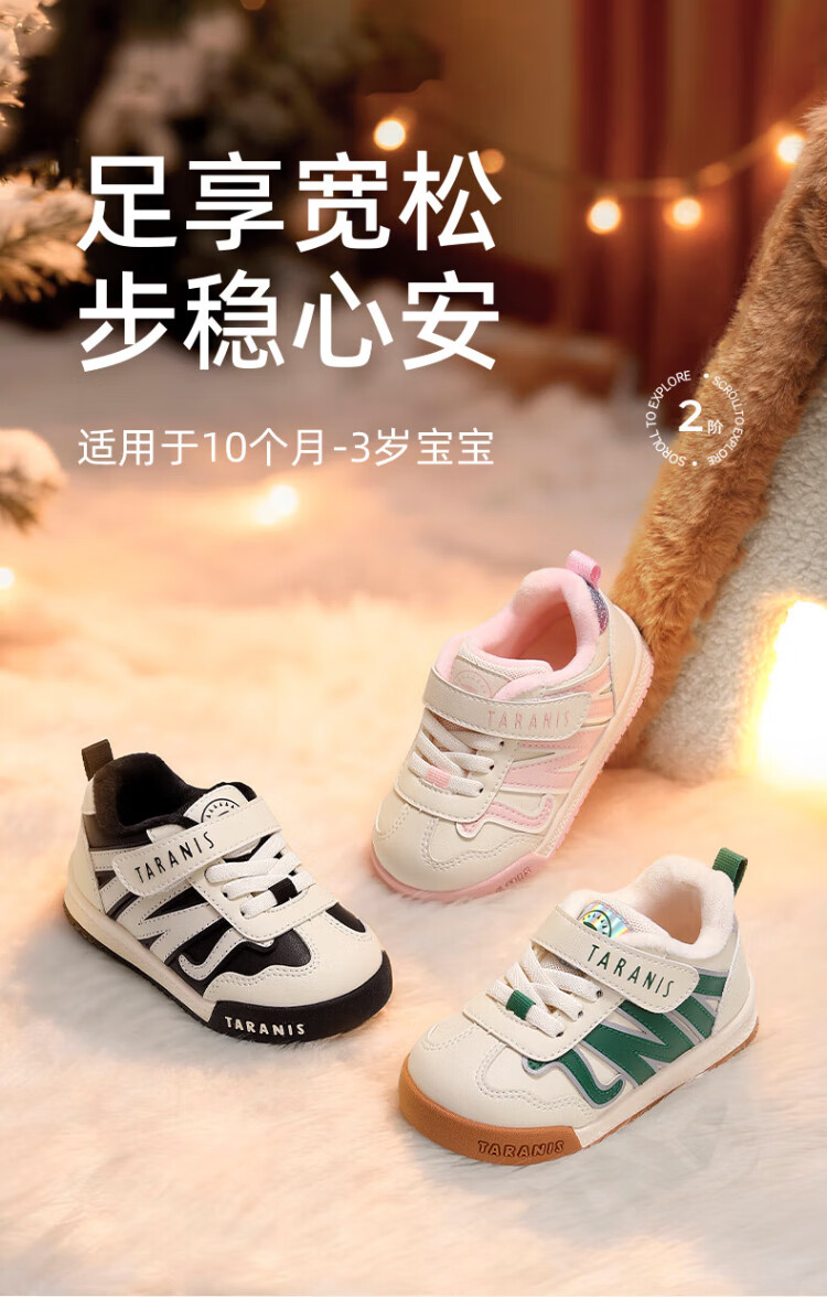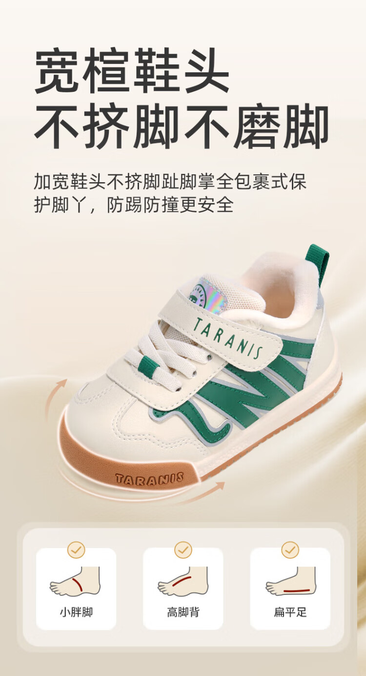 Terranis toddler shoes children's shoes winter baby bread shoes cotton shoes plus velvet warm baby shoes girls functional shoes white/green 24