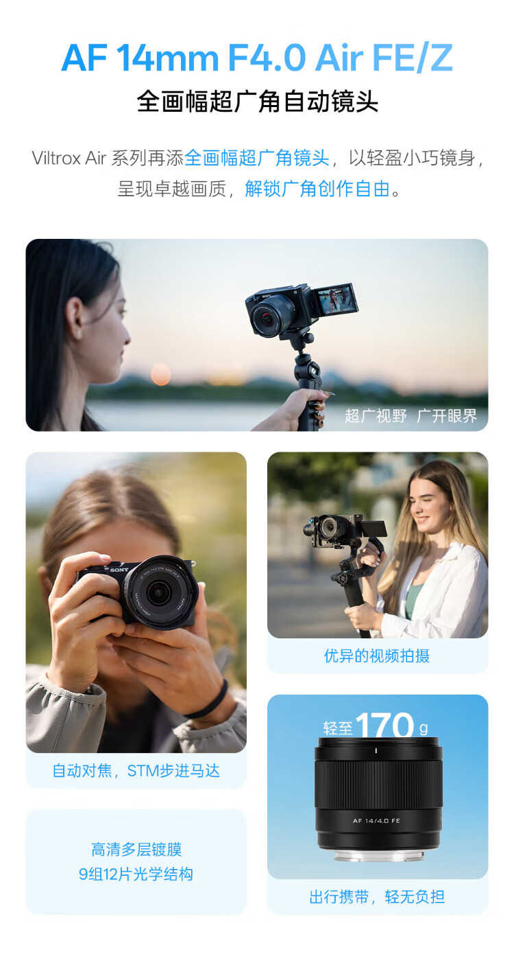 VILTROX AF 14mm F4.0 FE Sony Port UV Special Package Full-frame Autofocus Ultra-Wide Angle Fixed Focus Landscape Photography Lens