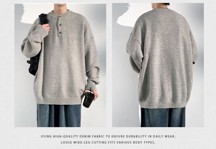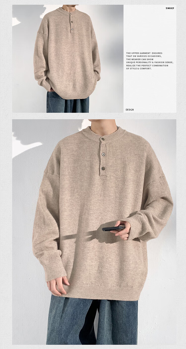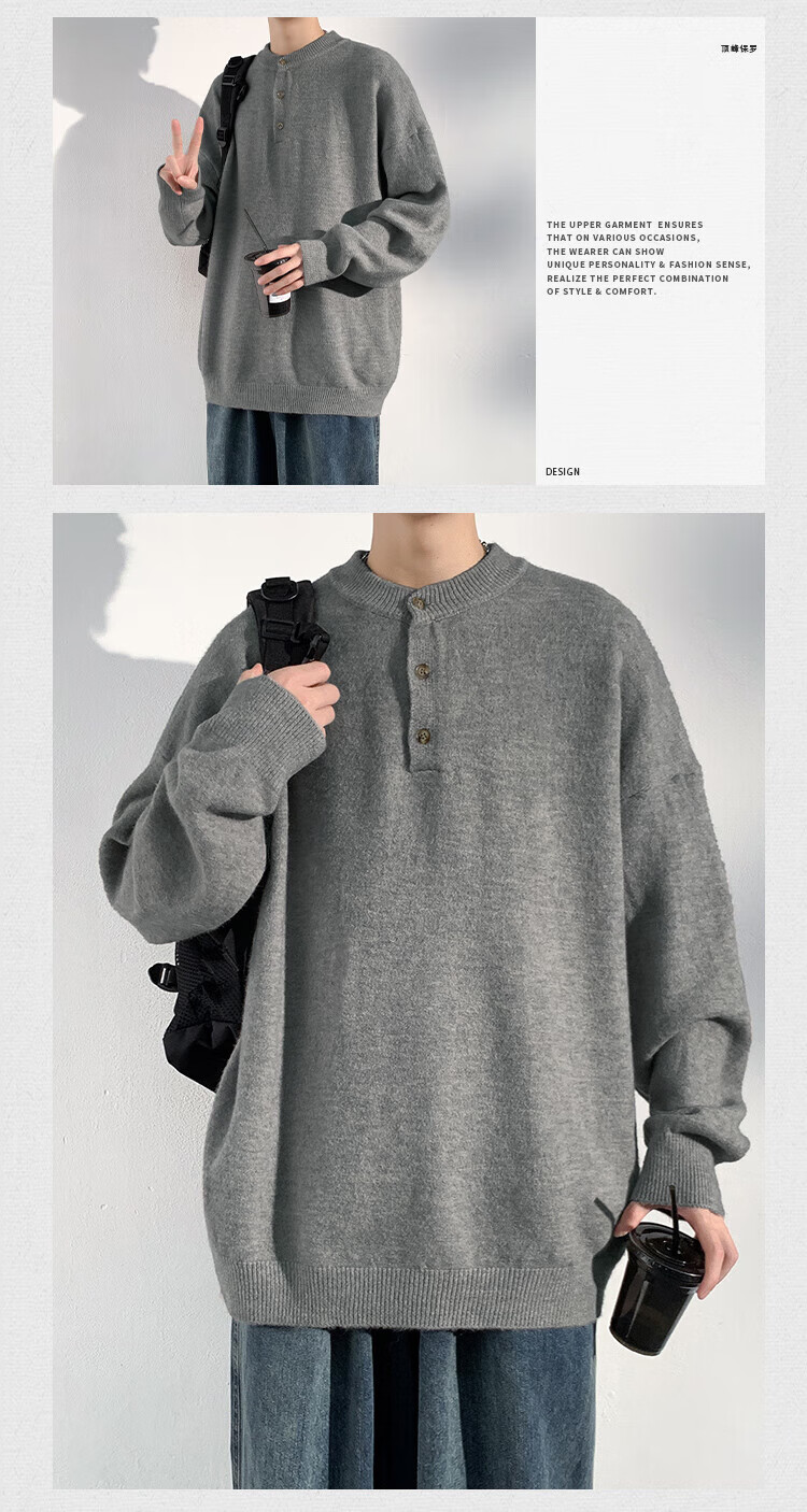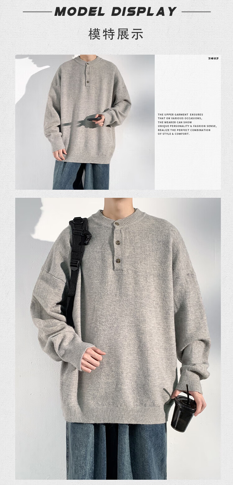 Dingfengbaoluo solid color casual sweater men's autumn retro comfortable versatile pullover sweater JUC09 light gray 4XL