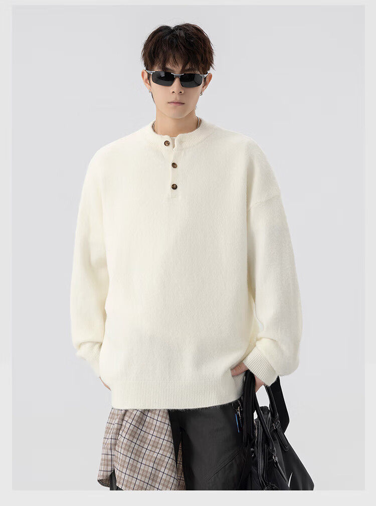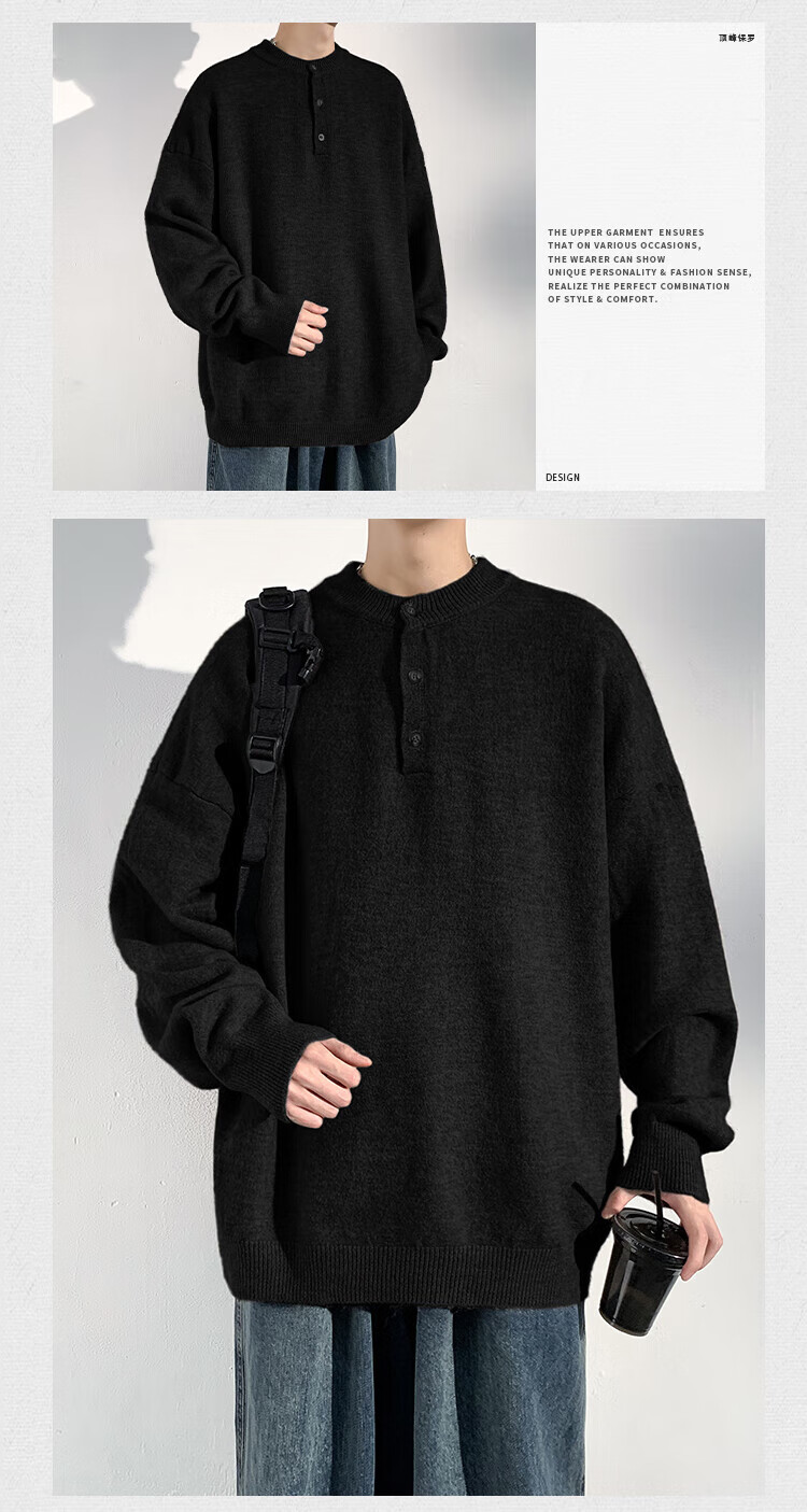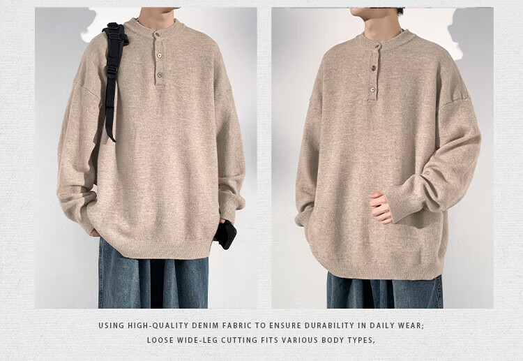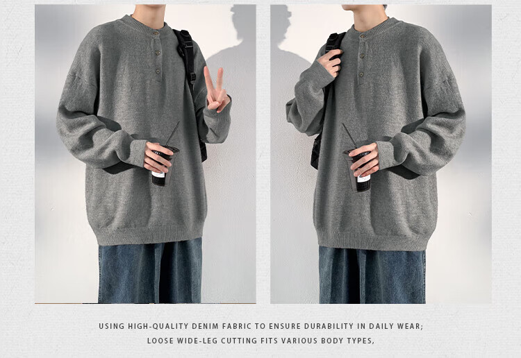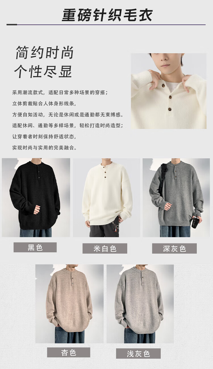Dingfengbaoluo solid color casual sweater men's autumn retro comfortable versatile pullover sweater JUC09 light gray 4XL