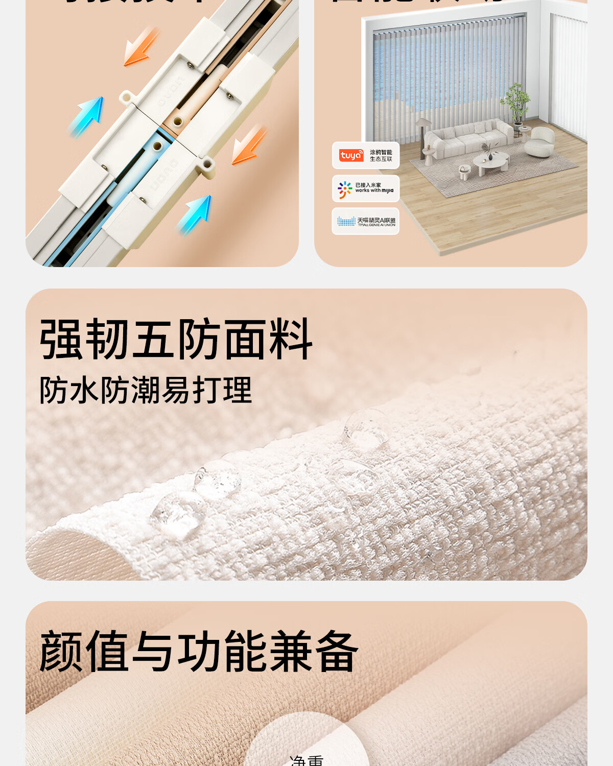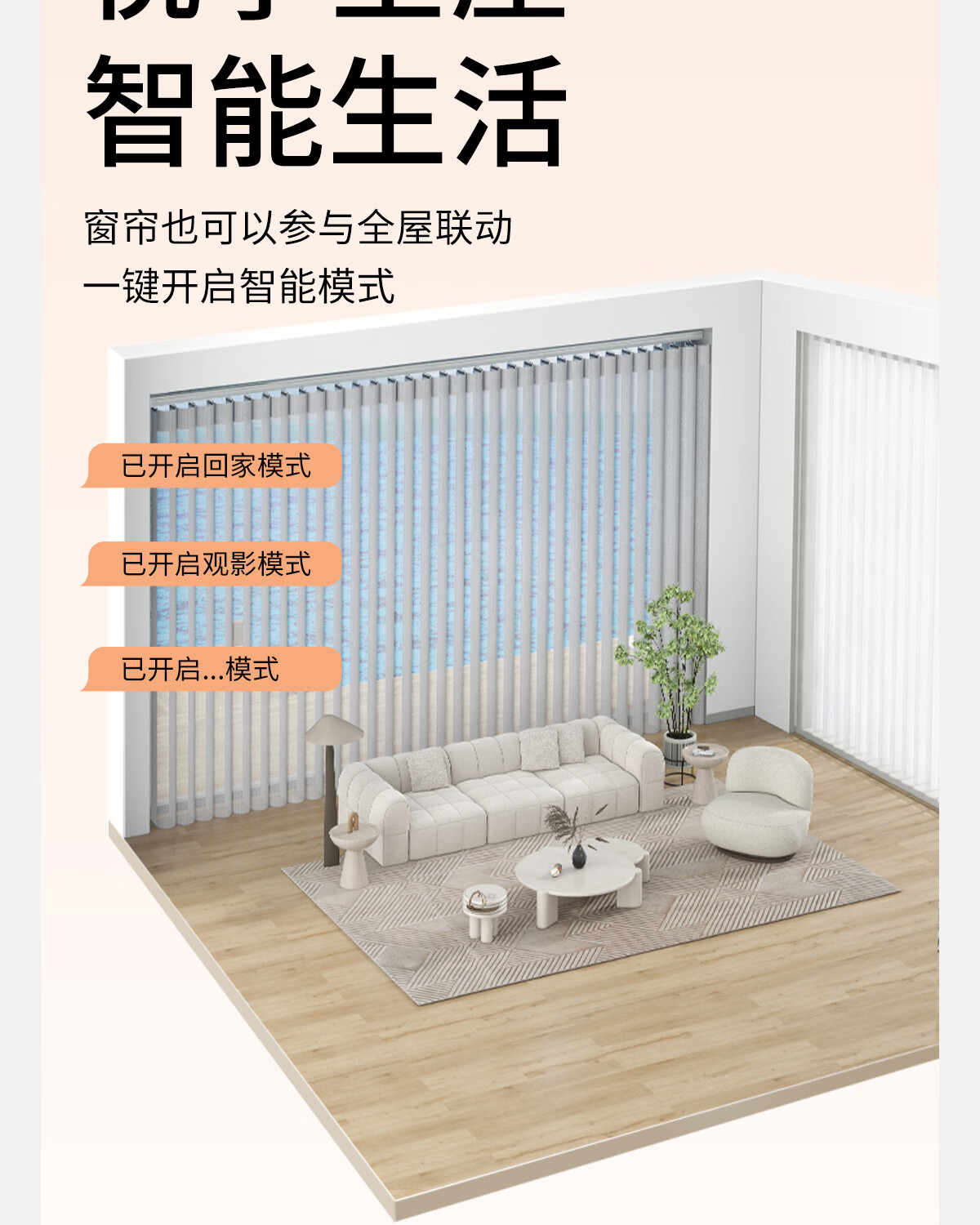 Guipin electric blackout dream curtain vertical blinds intelligent fully automatic living room bedroom balcony office curtain sunshade cream apricot vertical pattern GPMH062B 1m*1m 1 piece