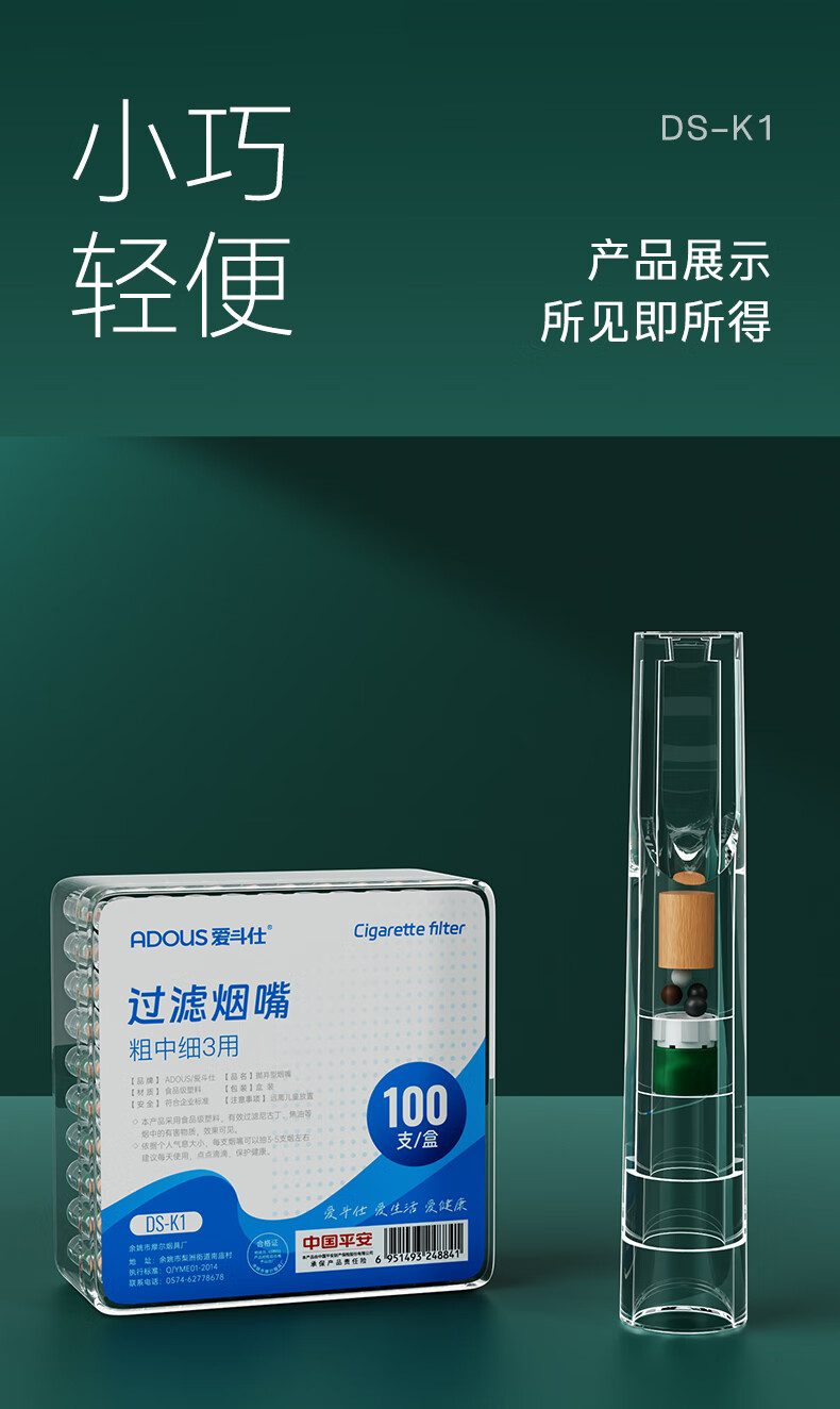 ADOUS disposable cigarette holder filter coarse, medium and fine three-use 15-fold filter cigarette holder cigarette filter 100 pieces