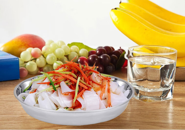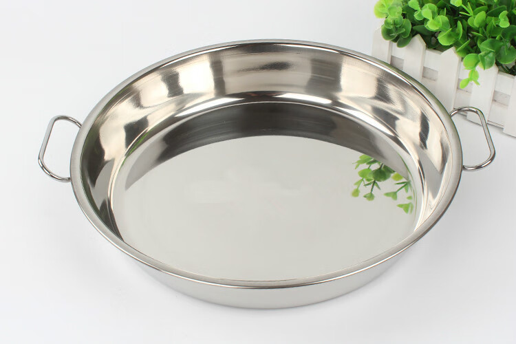 Thick stainless steel round plate tray Liangpi plate large steamed rice cake plate flat bottom flower pot bottom extra thick 24cm cake tray