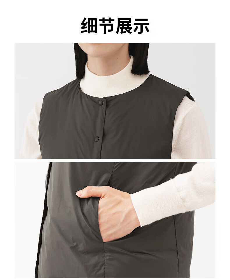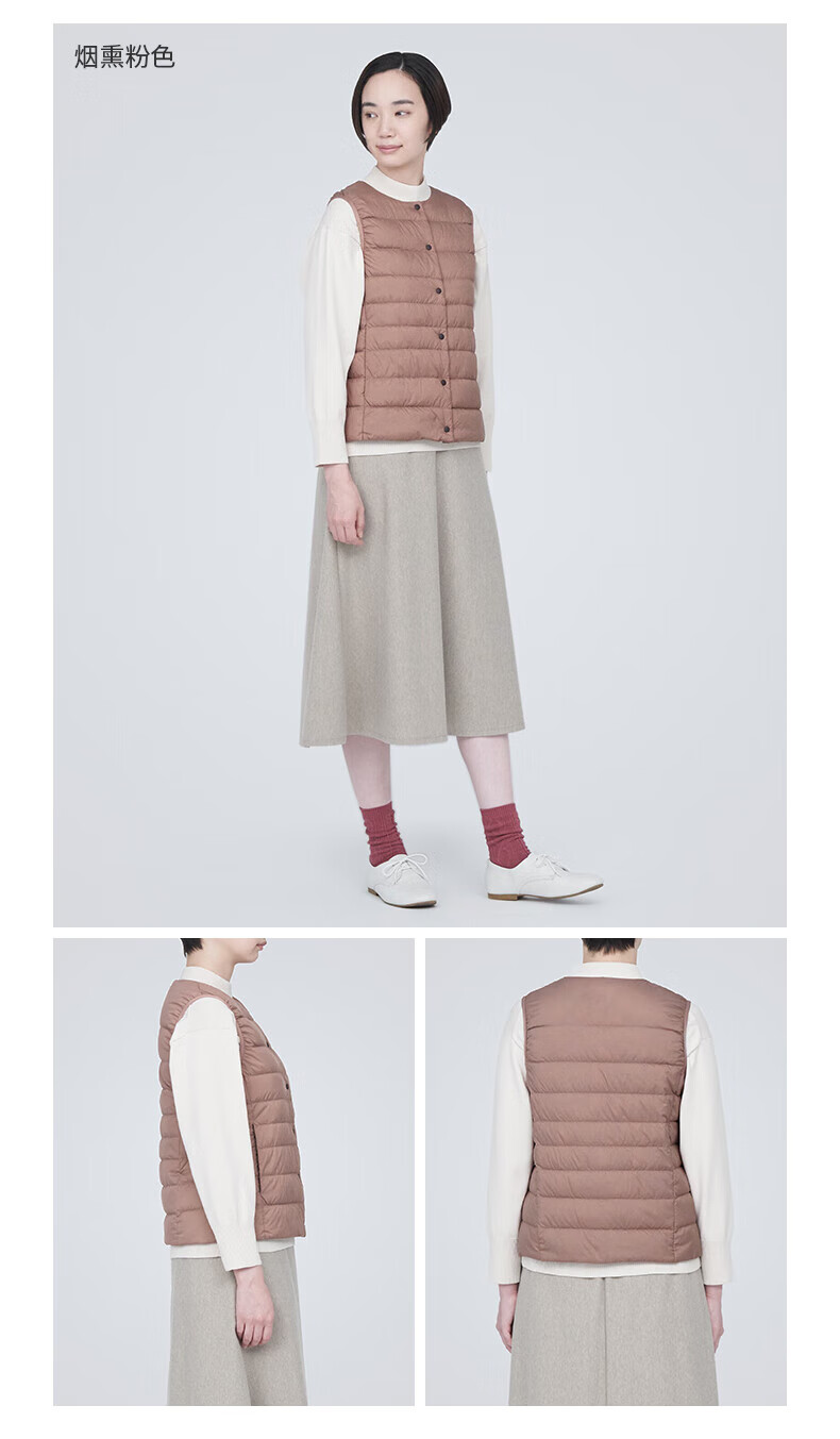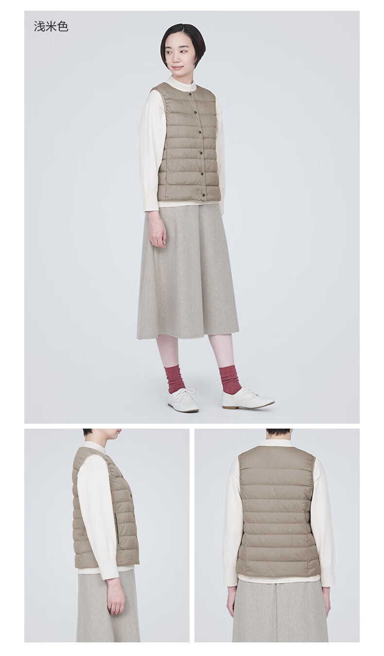 MUJI Women's Lightweight Down Portable Vest Women's Down Jacket Light Beige 5A L