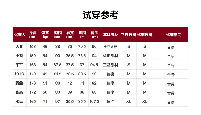 China (cm) 160-165/84-86 165-170 / 88-90 167-172 / 92-96 168-173 / 98-102 170-176 / 106-110