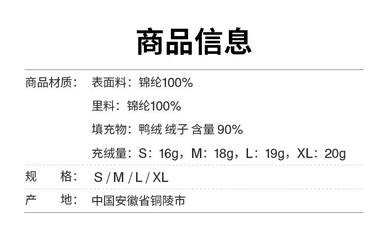 China (cm) 165 / 88-90 170 / 96-98 175 / 108-110 180 / 118-122 185 / 126-130