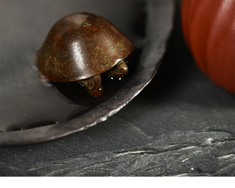KAZUNORI Handmade Retro Turtle Copper Tea Pet Ornaments Creative Boutique Can Raise Solid Cover Zen Tea Play Tea Treasure Turtle Tea Pet