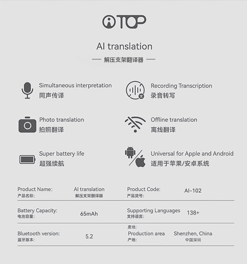 Beifa Zhipin offline AI large model magnetic handheld translator intelligent voice English real-time simultaneous interpretation portable overseas business travel conference recording artifact