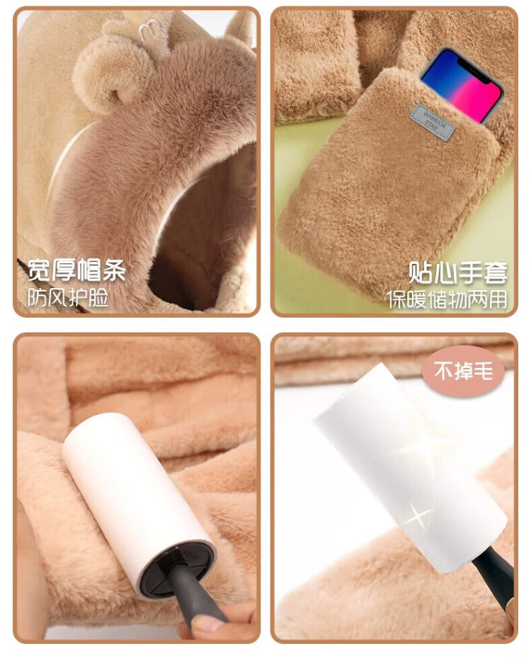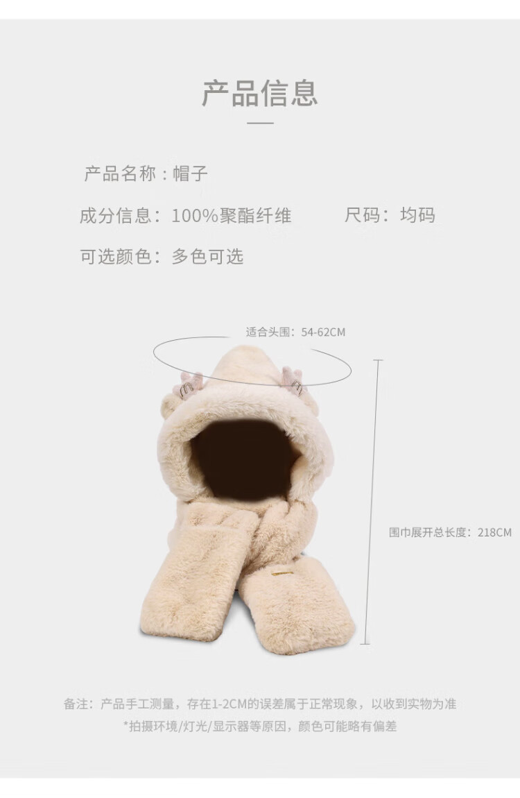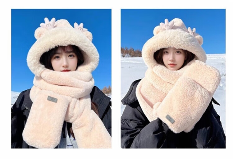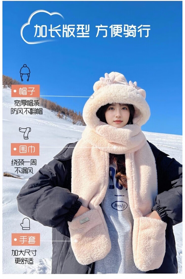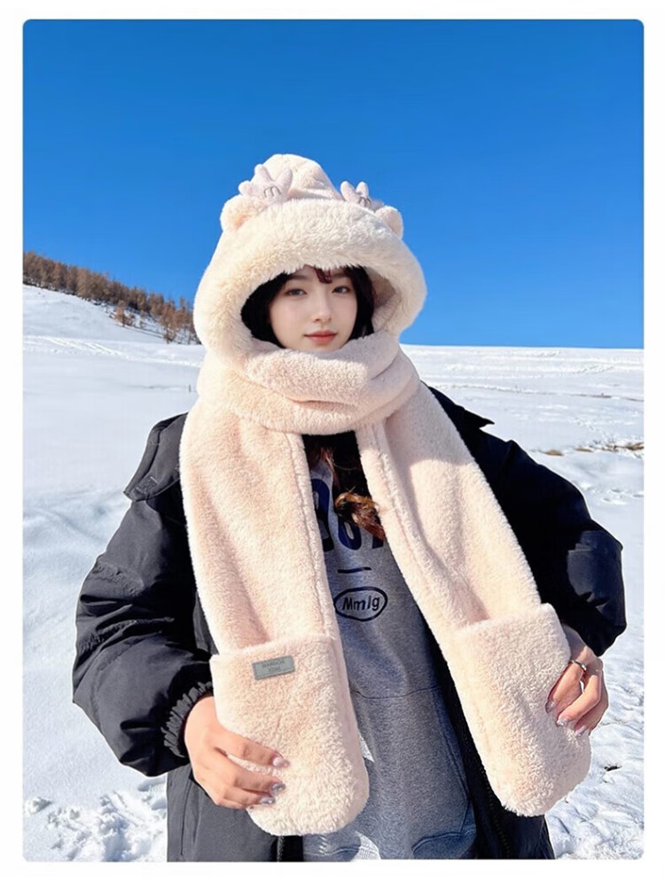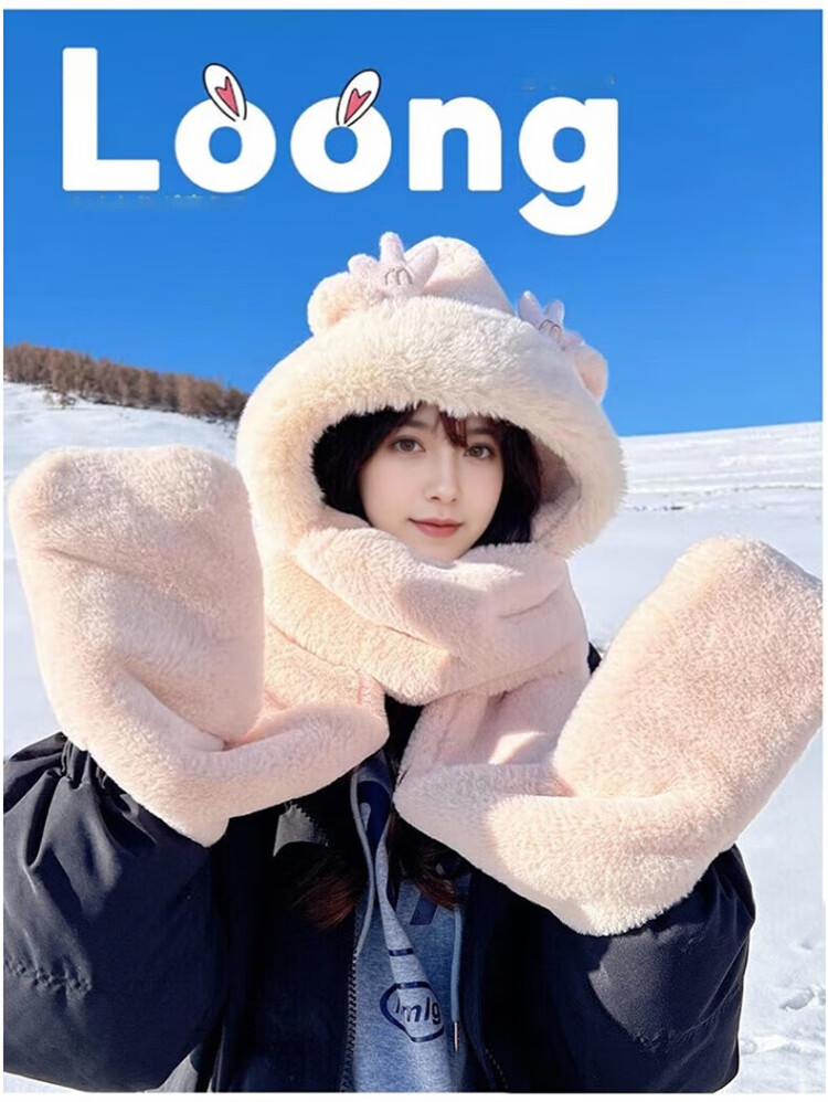 Pull-back hat for women, winter scarf, warm neck scarf, hat and gloves, one-piece gift, cute plush hat, velvet windproof and cold hat