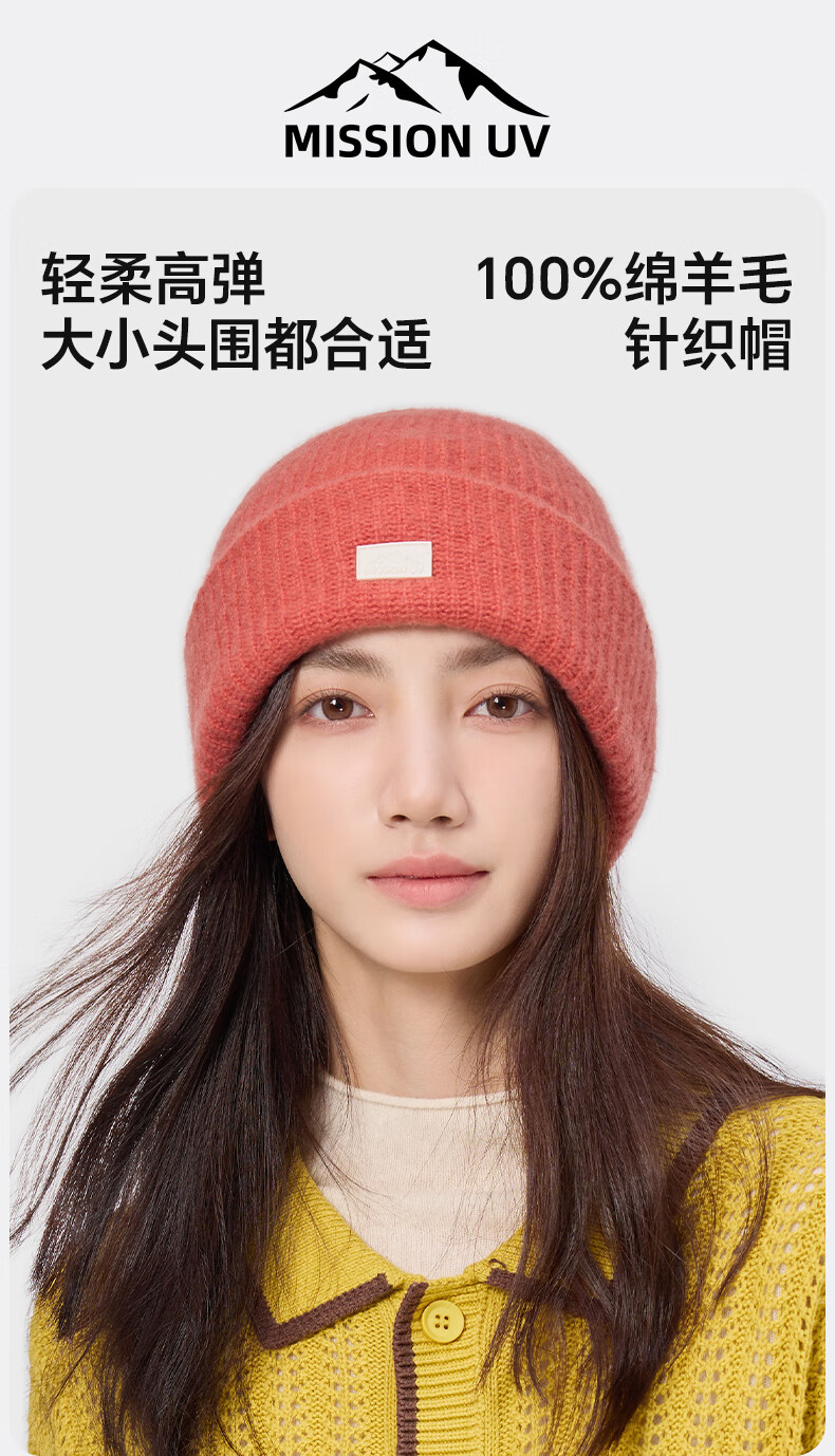 MISSION UV pure wool warm woolen hat autumn and winter thickened knitted hat cold hat winter hat outdoor ear protection cold hat women winter
