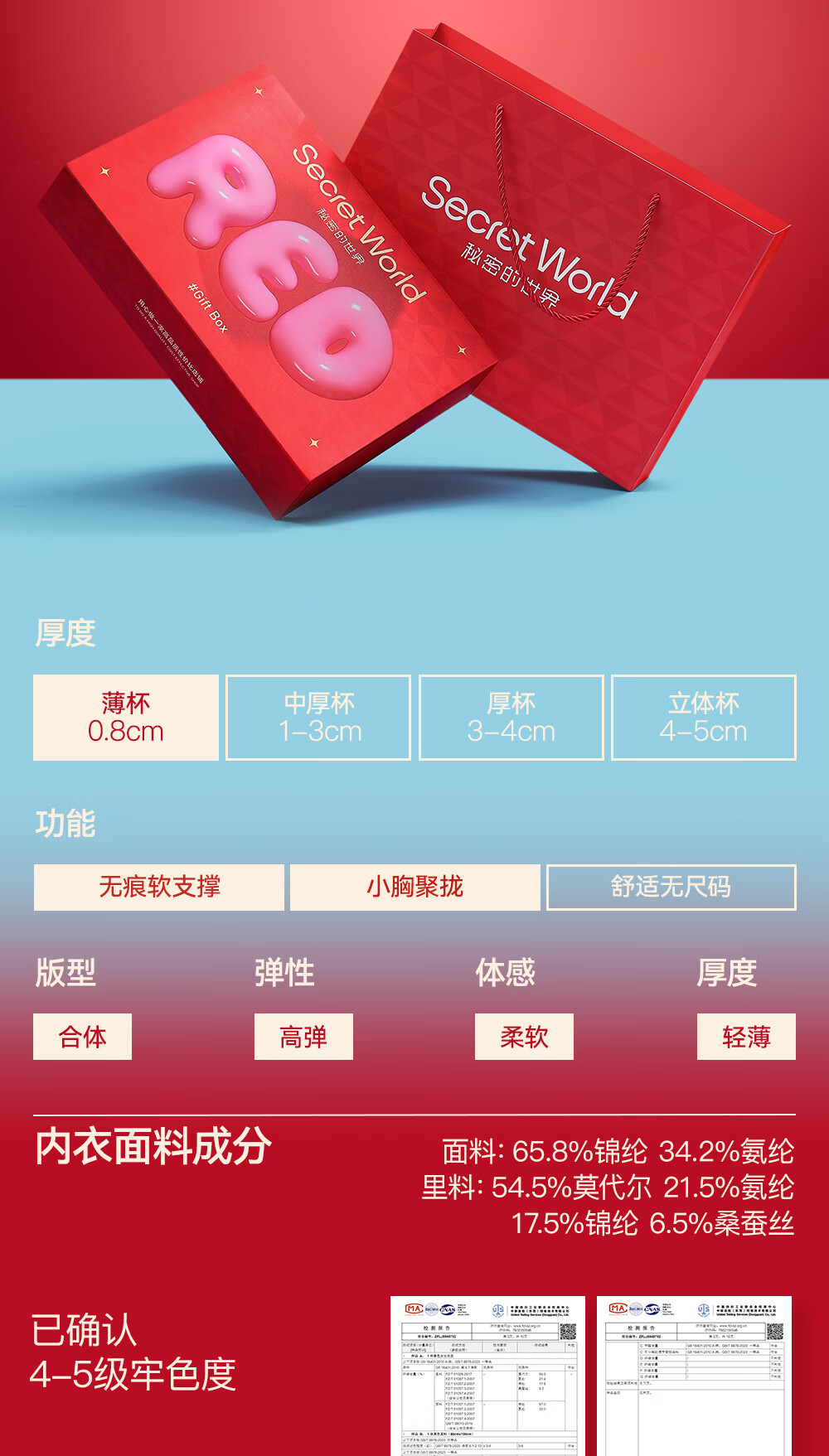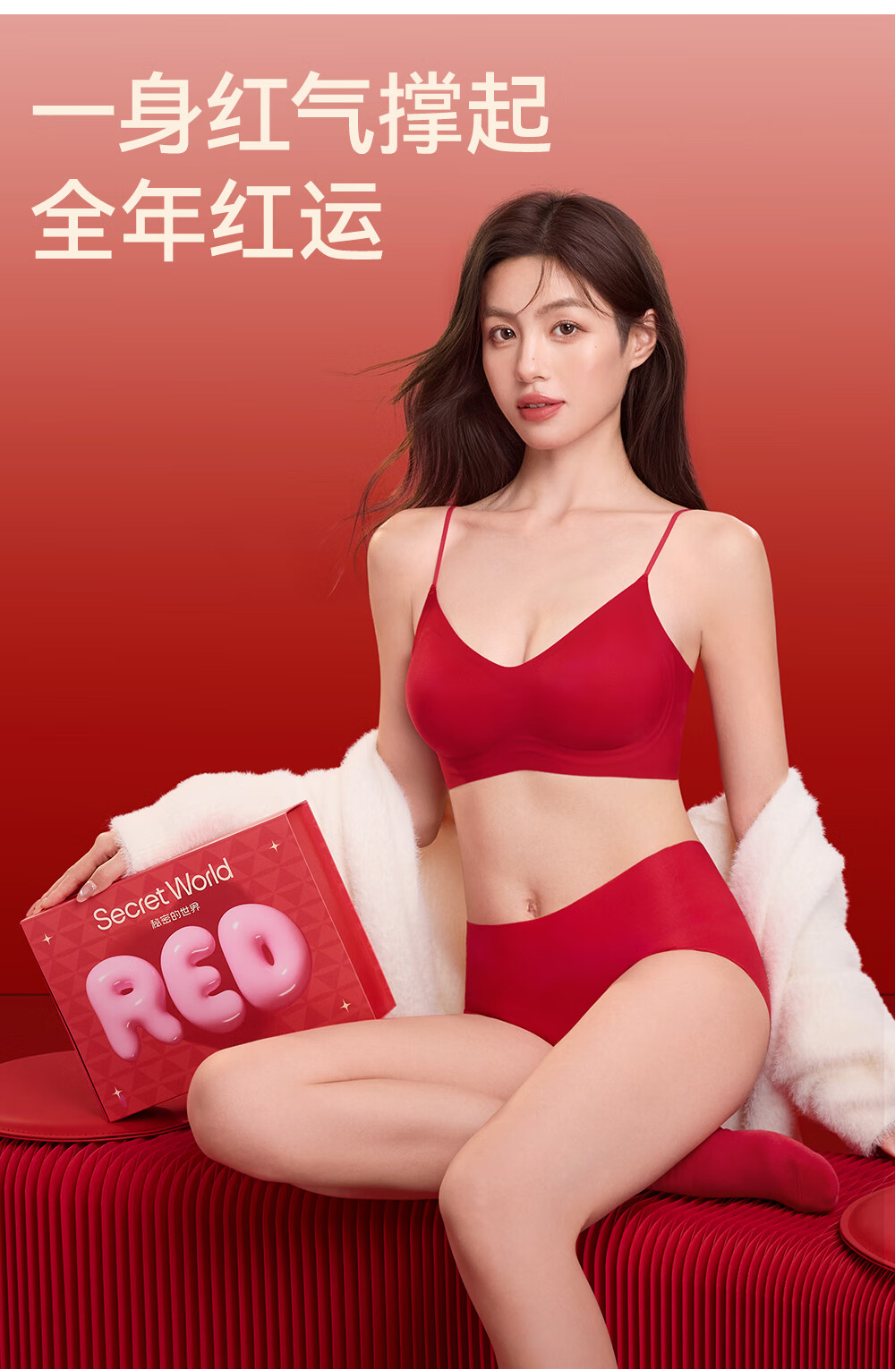 SecretWorld Zhao Jinmai's same style of zodiac year underwear women's bra and panties set gift box wedding bride no steel ring seamless bra